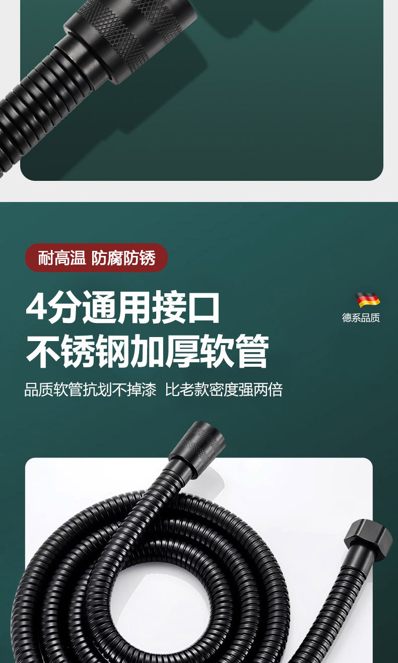 • [건그레이] 부스터 샤워기 - 2m 스테인레스 스틸 호스