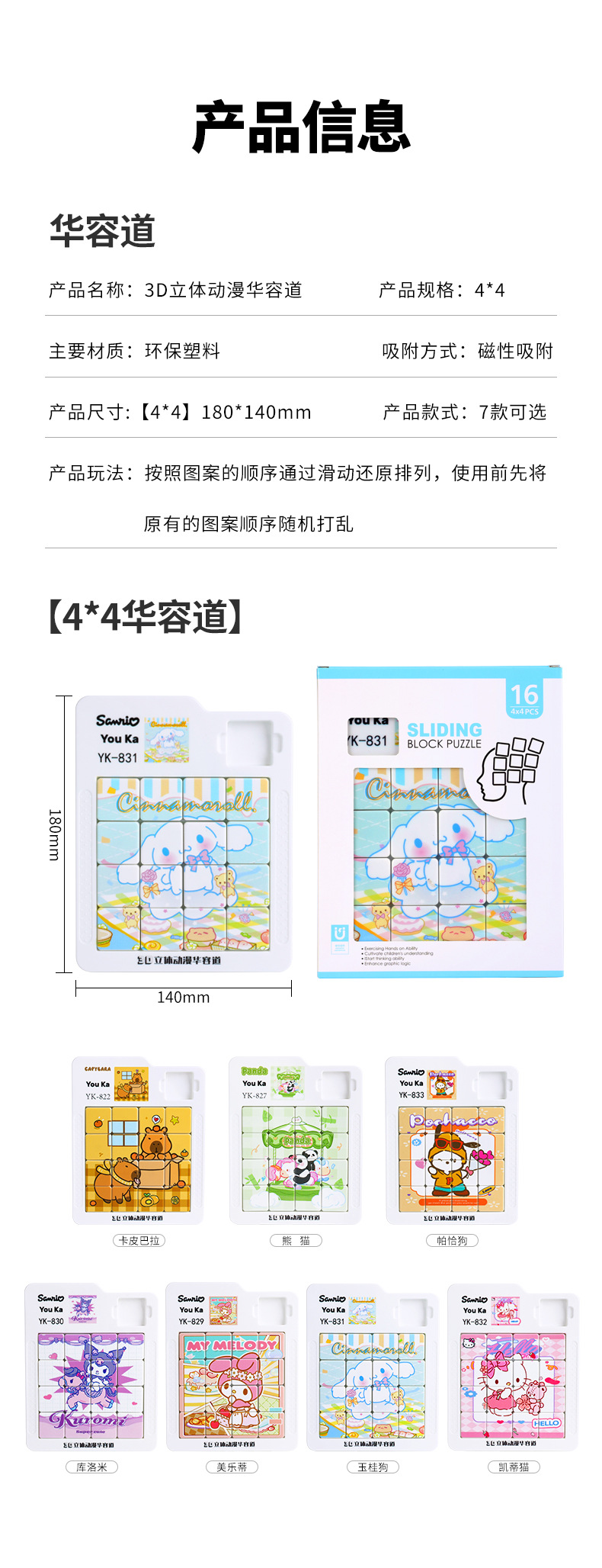 카피 발라 자기 화롱 도로 교육 장난감 어린이 슬라이딩 퍼즐 보드 장난감 만화 이동 광장 퍼즐스토어 가기