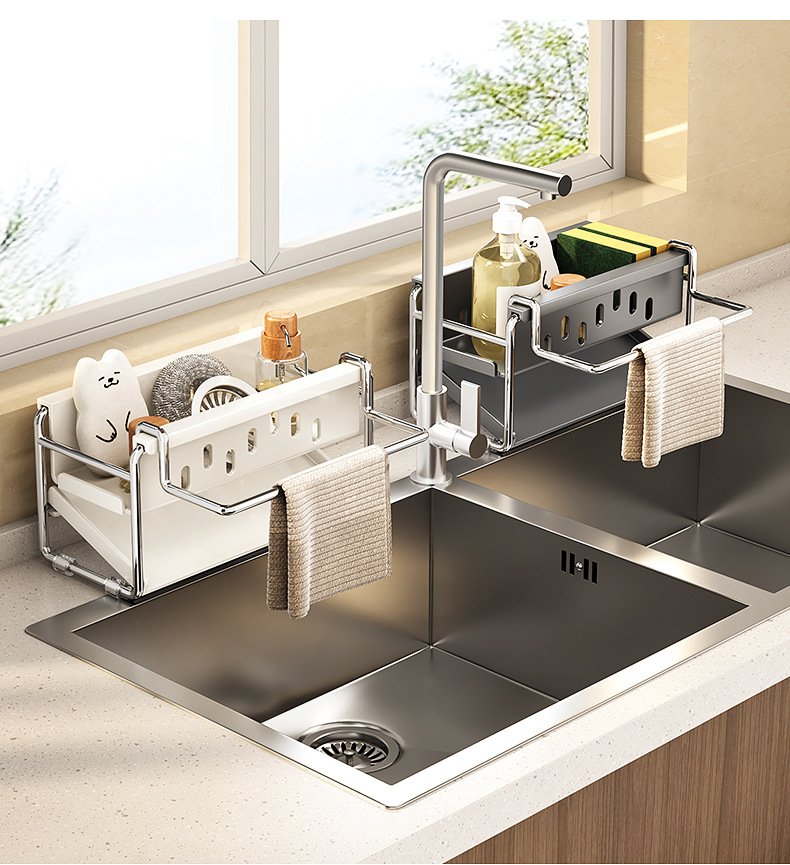싱크대 걸이형 수건걸이 도매 스테인리스 주방 무타공 수납선반 배수 걸이바구니 용품 다용도 카운터탑 욕실용스토어 가기