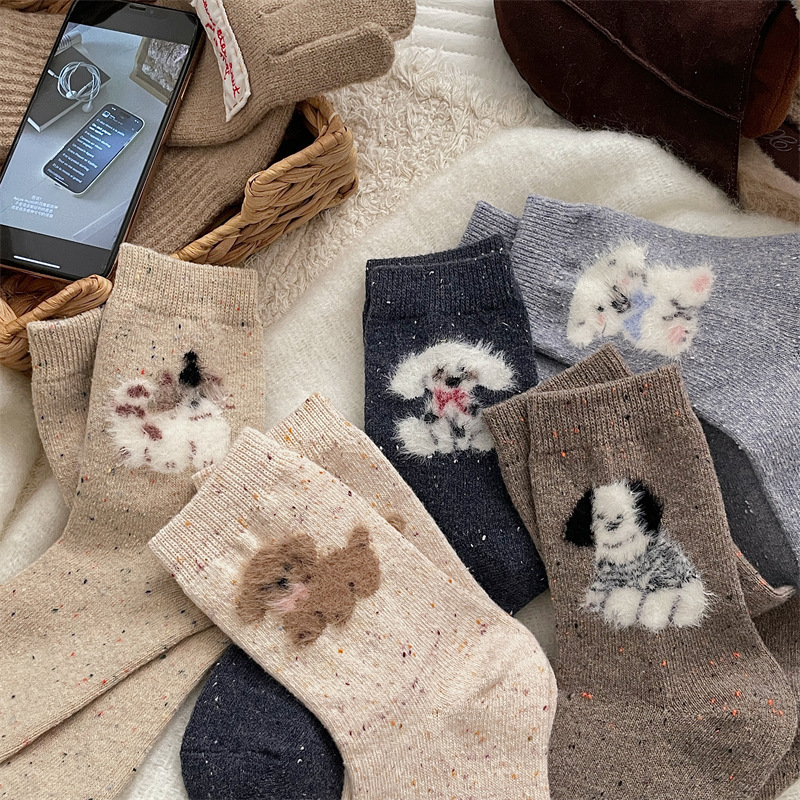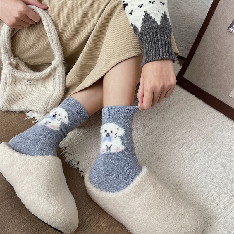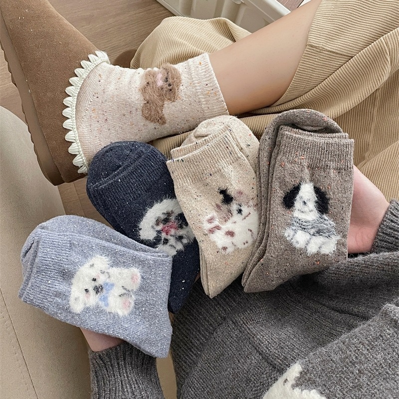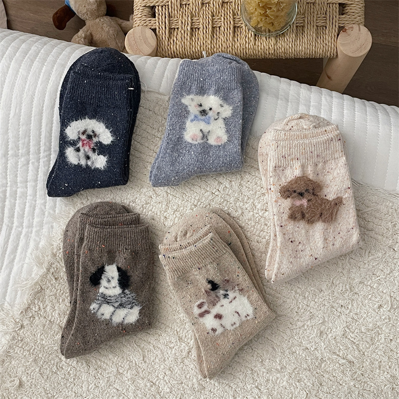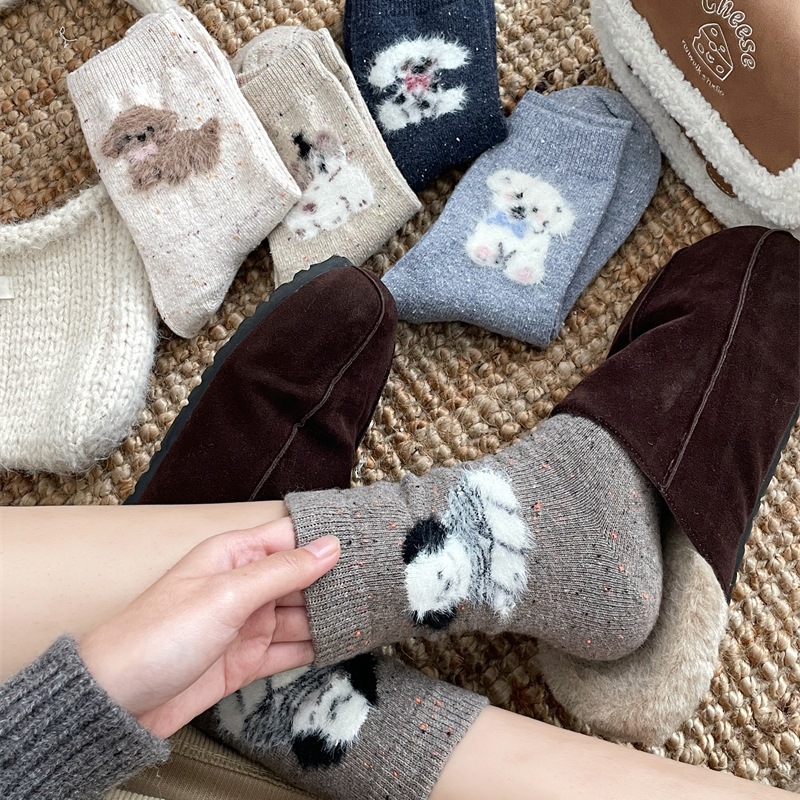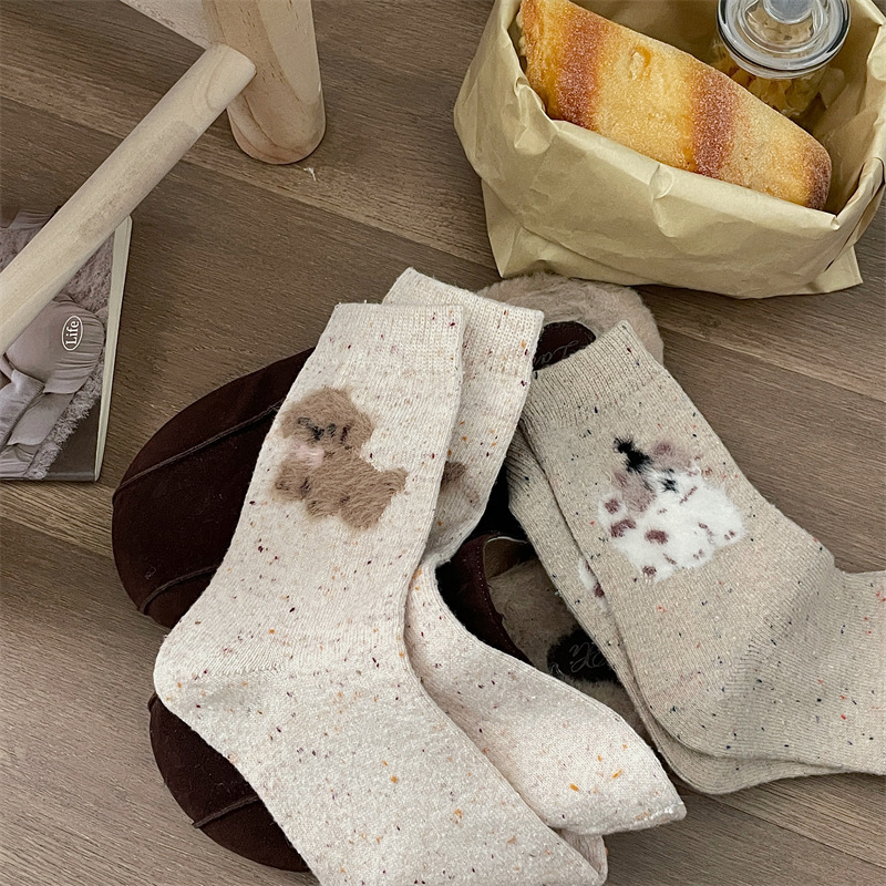 가을/겨울 잠긴 만화 페어랜드 강아지 양모 양말 어린이 한국 점 원사 필링 중간 더미 양말스토어 가기