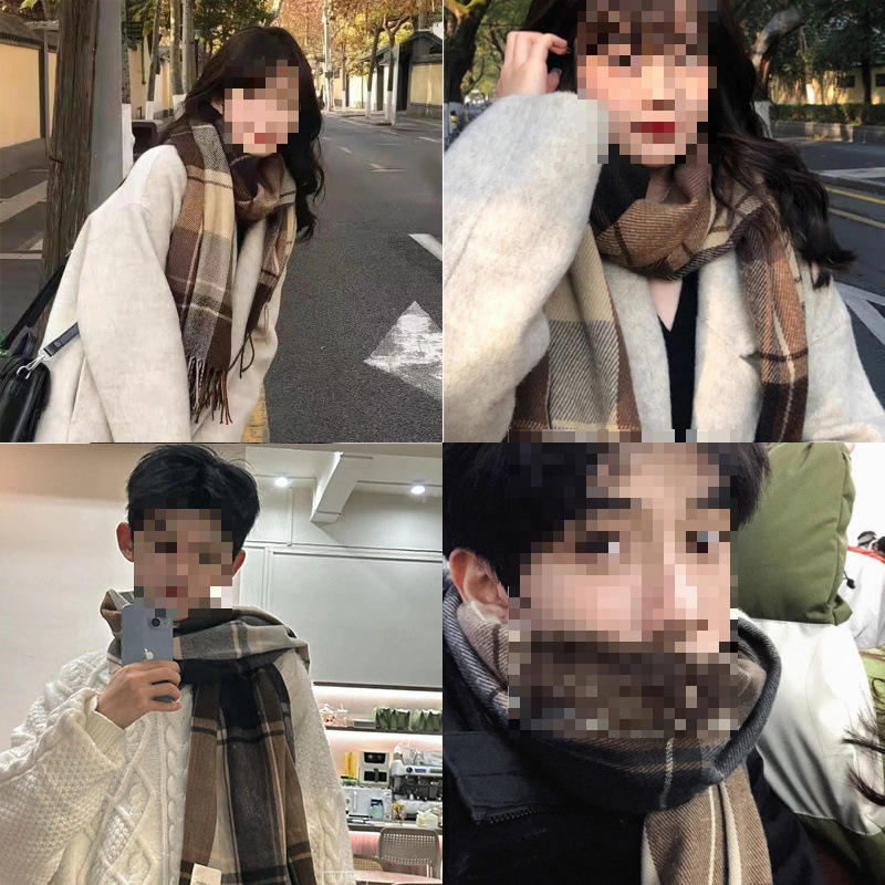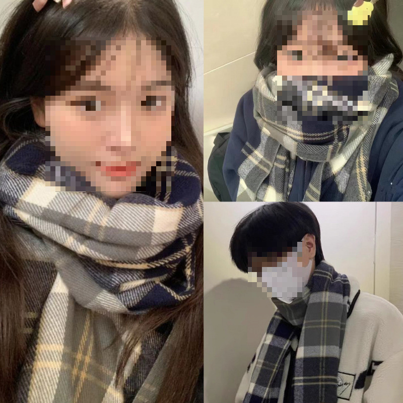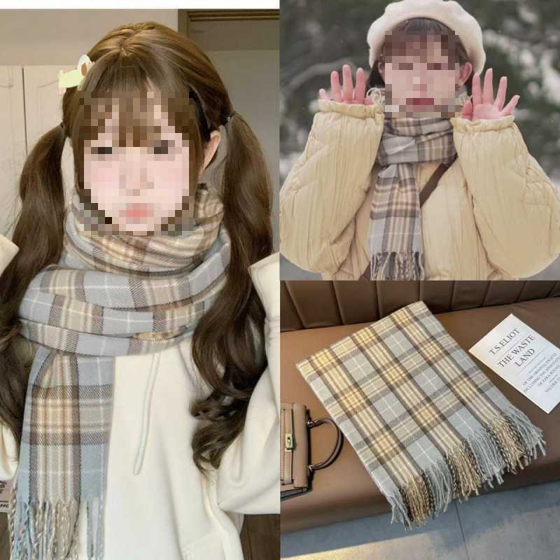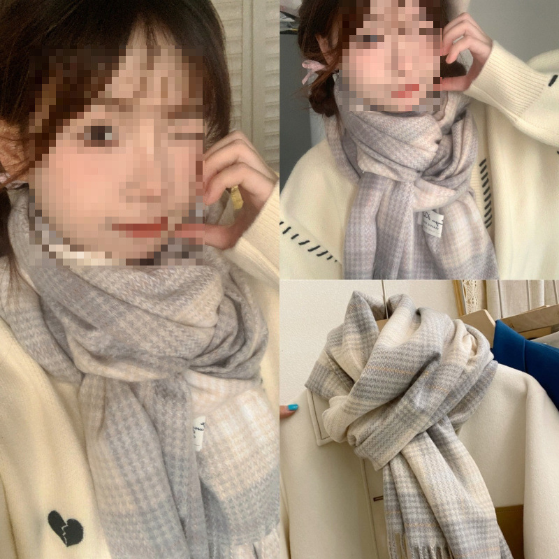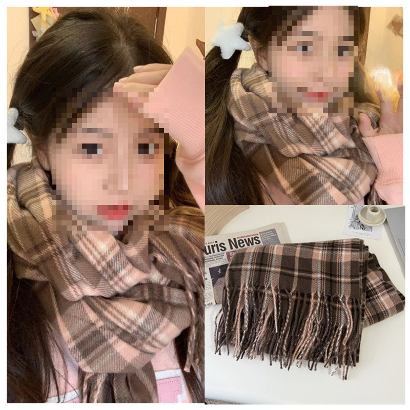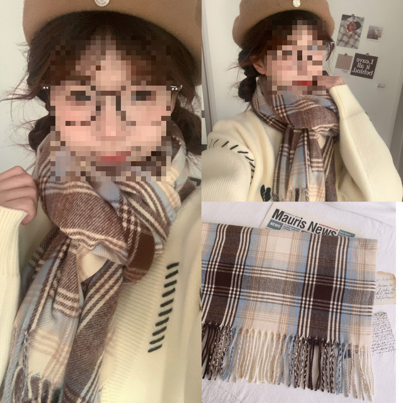 Xingyue 돌고래 뼈 캐시미어 격자 무늬 따뜻한 커플 올 매치 JK 유니폼 한국 내 일본 소녀 스카프 겨울스토어 가기