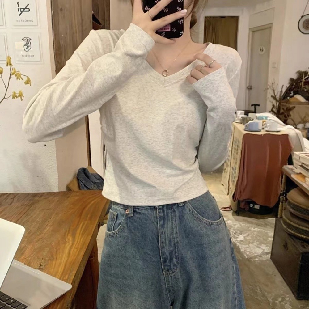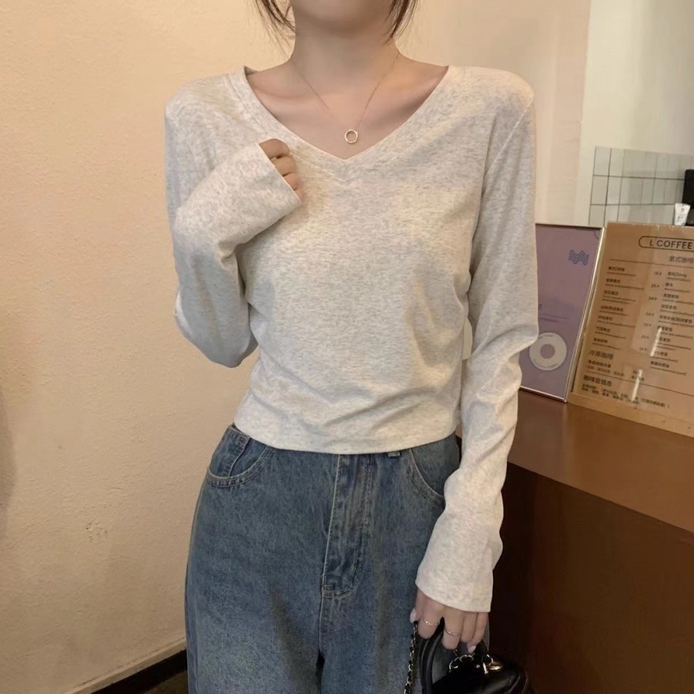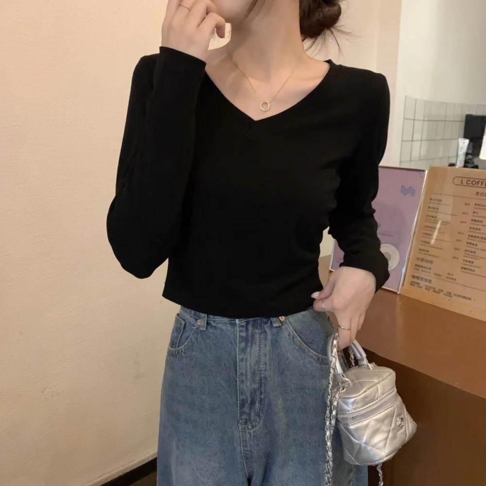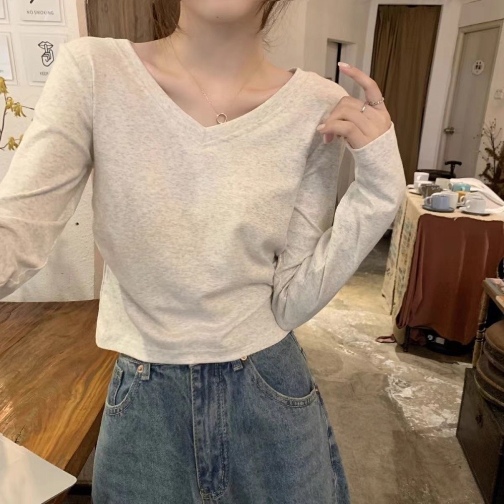 가을 겨울 여성용 솔리드 컬러 브이넥 퓨어 러스티 숄더 밑단 셔츠, 허리 슬리밍, 독일 벨벳 캐주얼 탑, 긴팔 이너 티셔츠스토어 가기