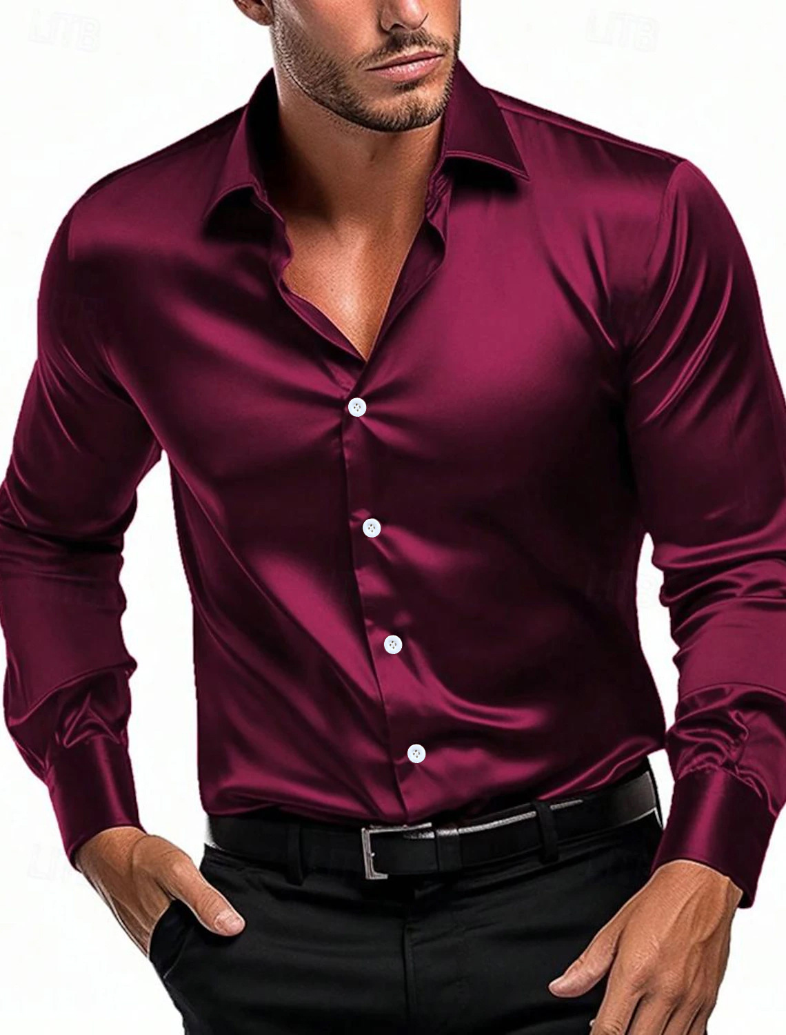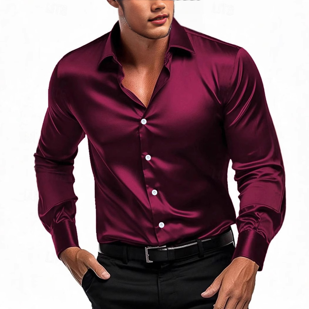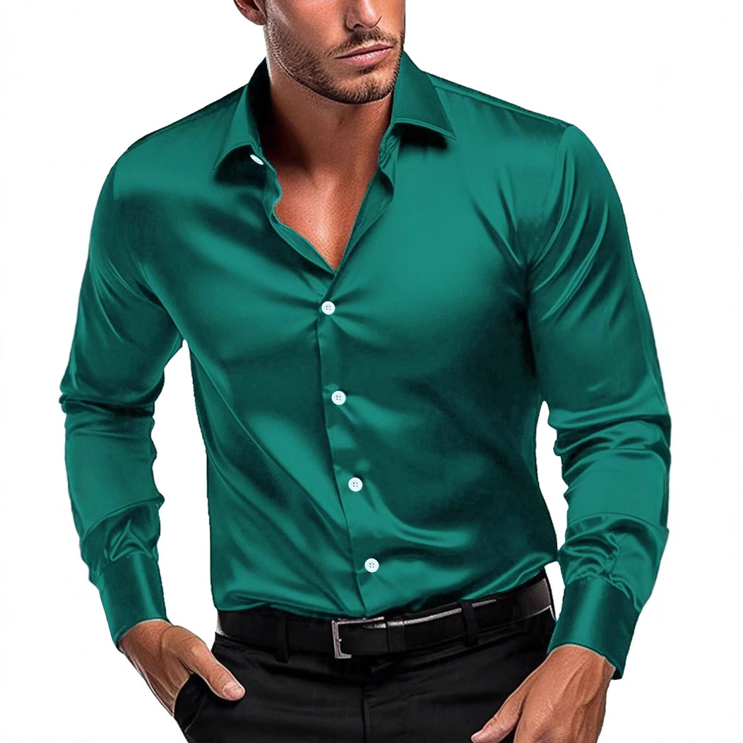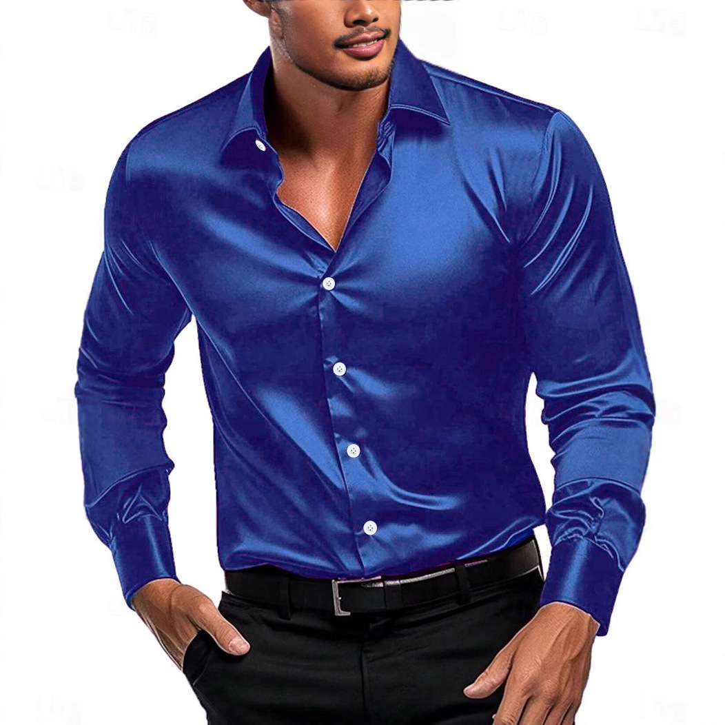 아마존 AliExpress 국경 2024 새로운 남성 단색 새틴 밝은 긴 소매 셔츠