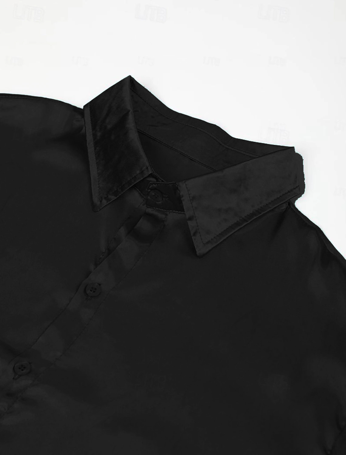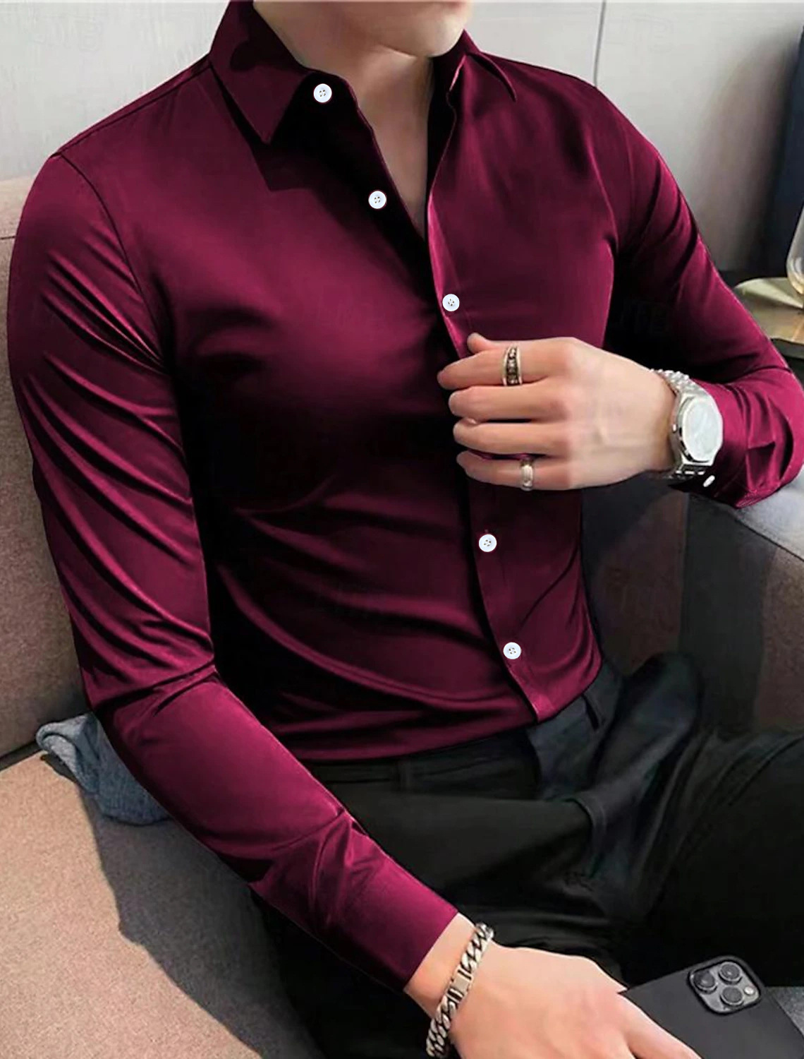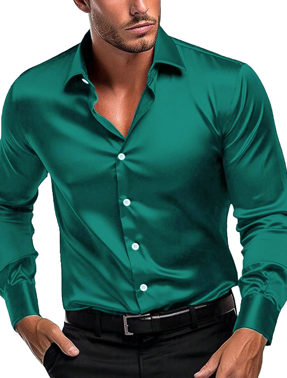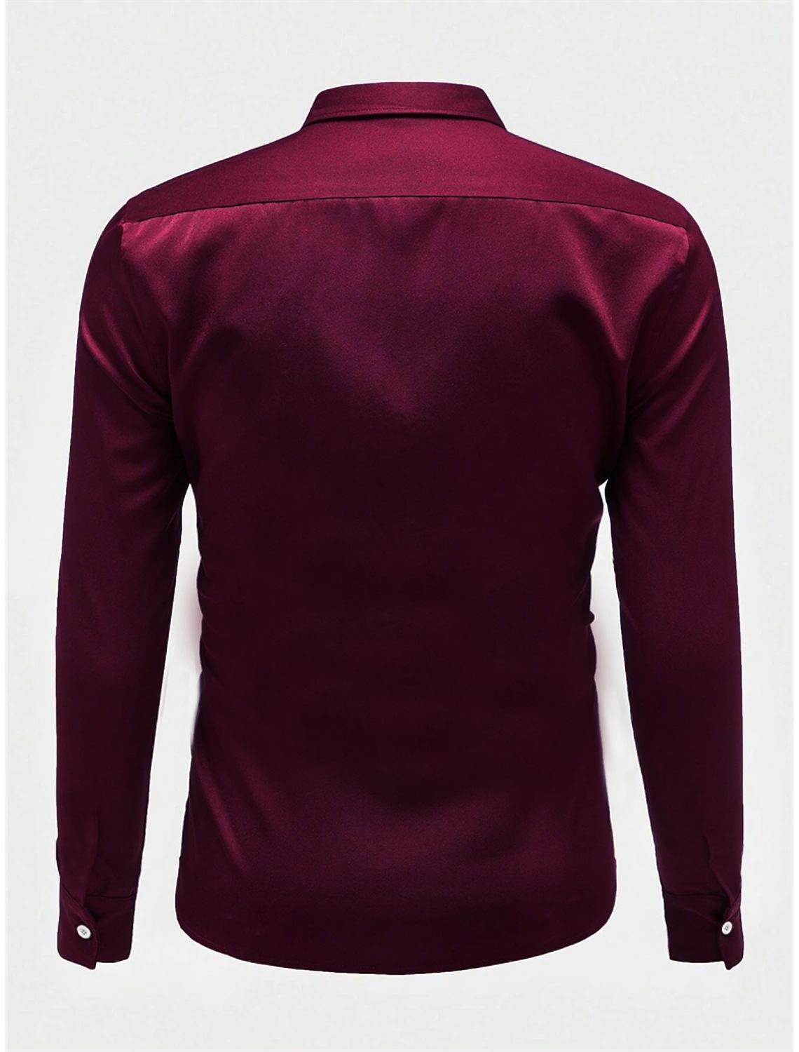 아마존 AliExpress 국경 2024 새로운 남성 단색 새틴 밝은 긴 소매 셔츠