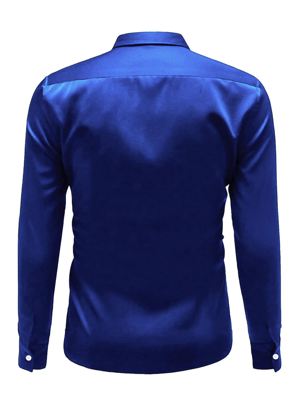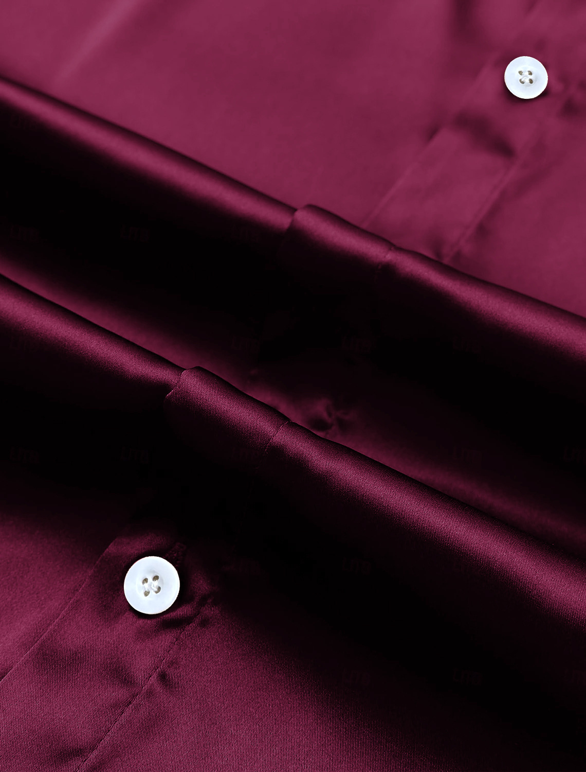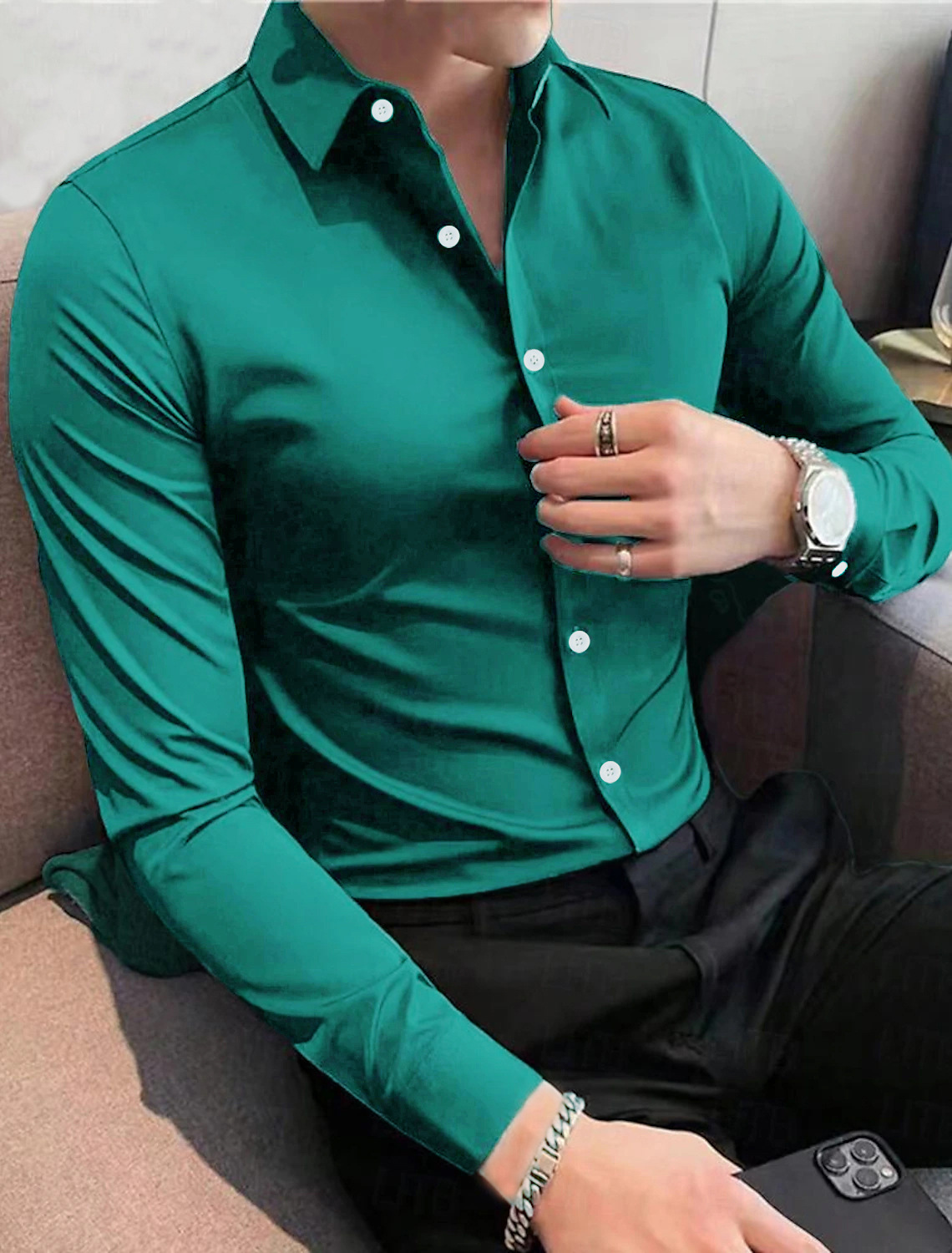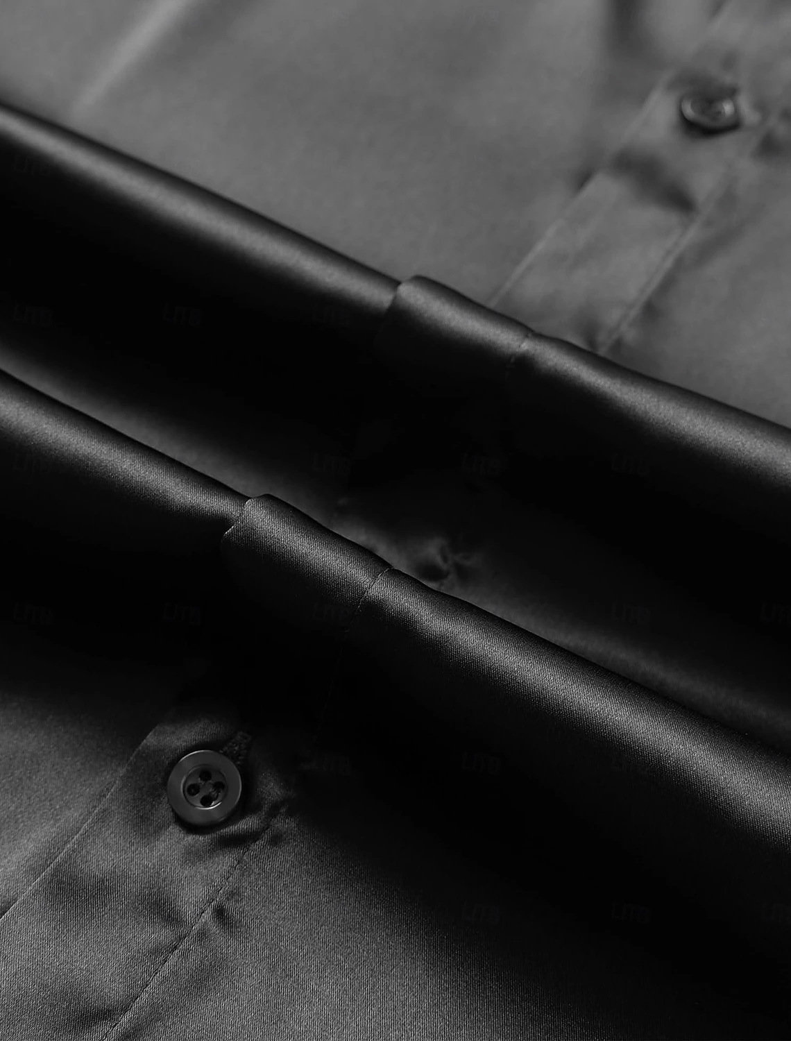 아마존 AliExpress 국경 2024 새로운 남성 단색 새틴 밝은 긴 소매 셔츠