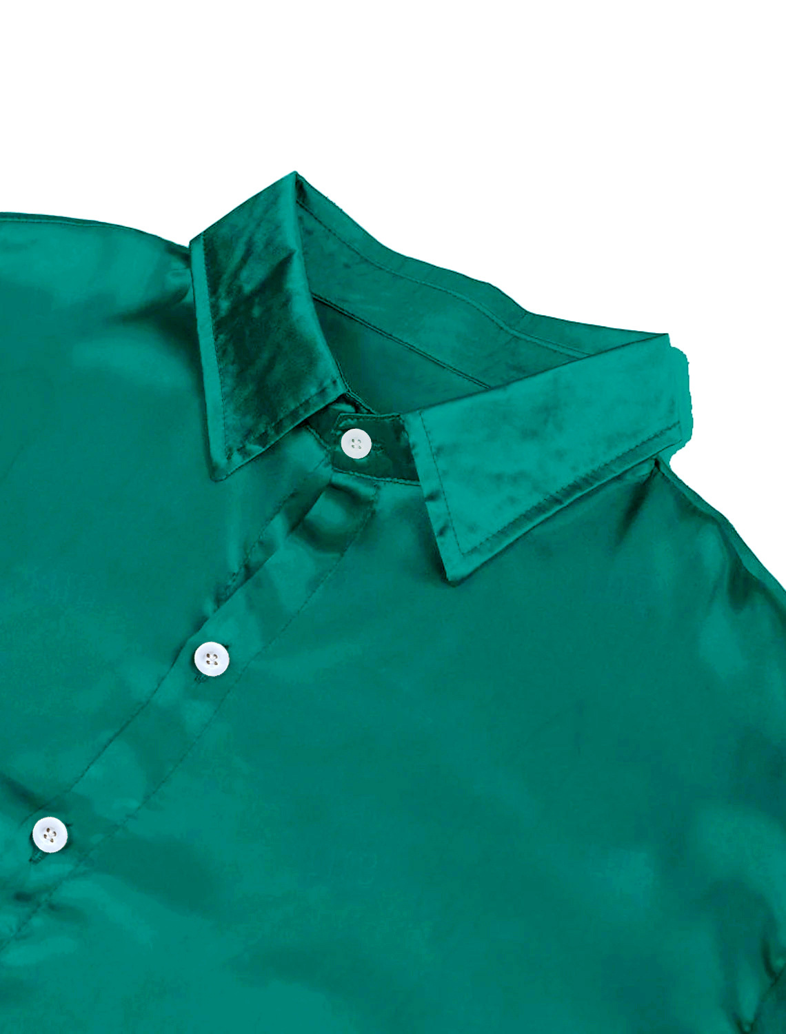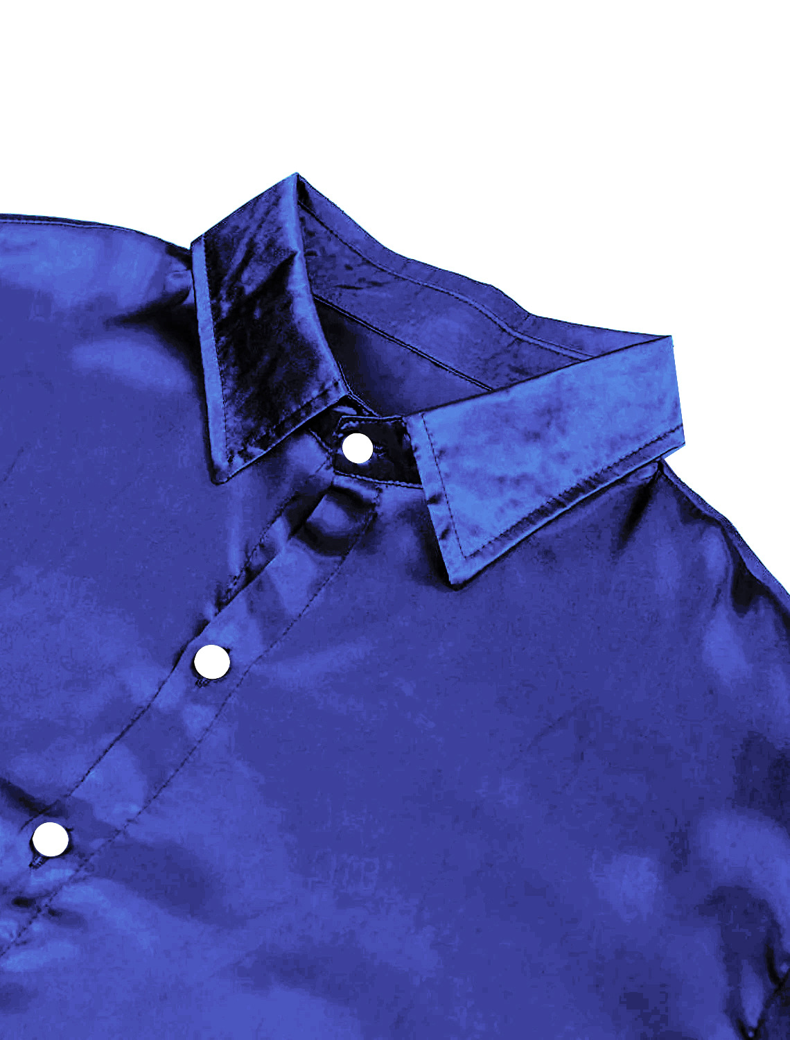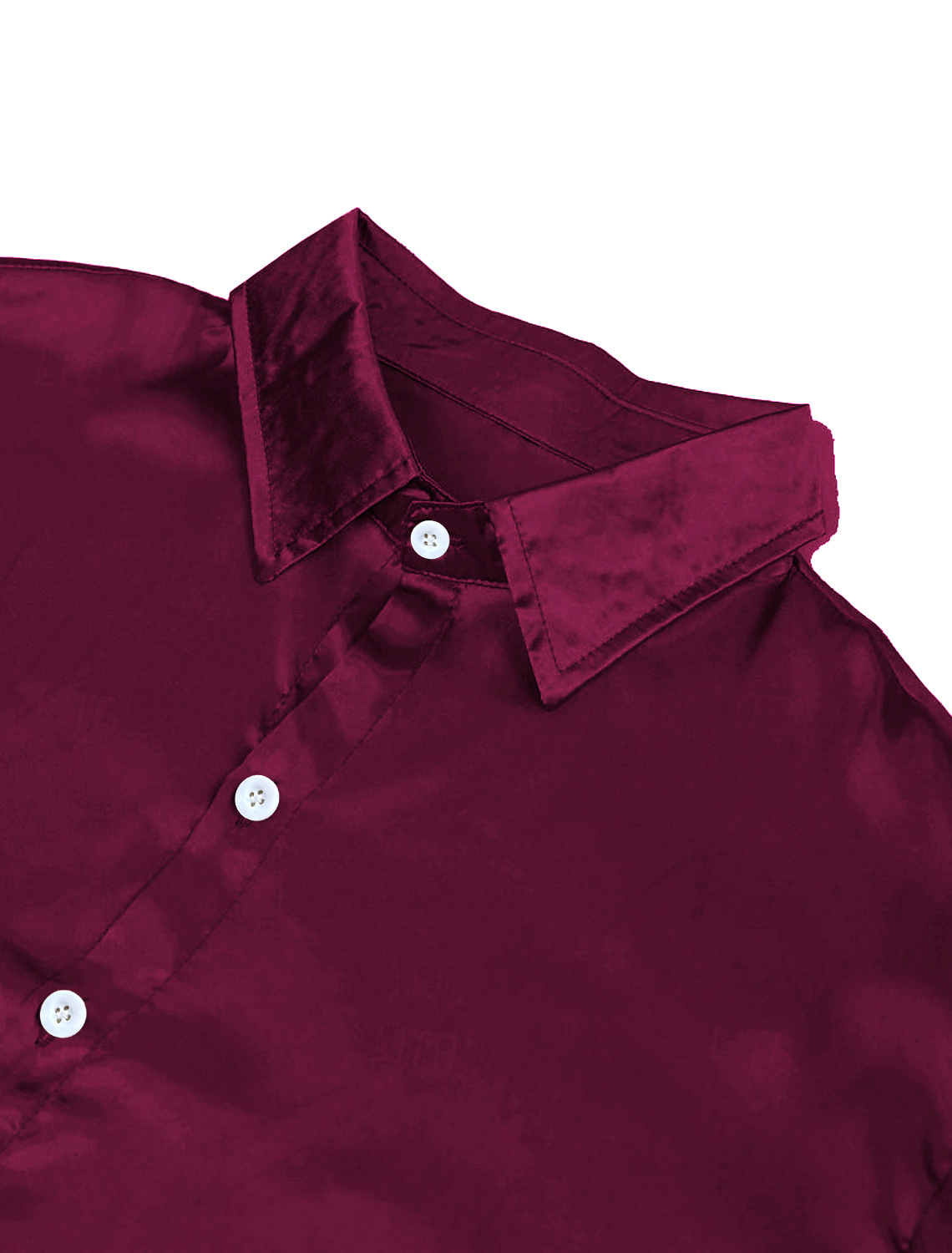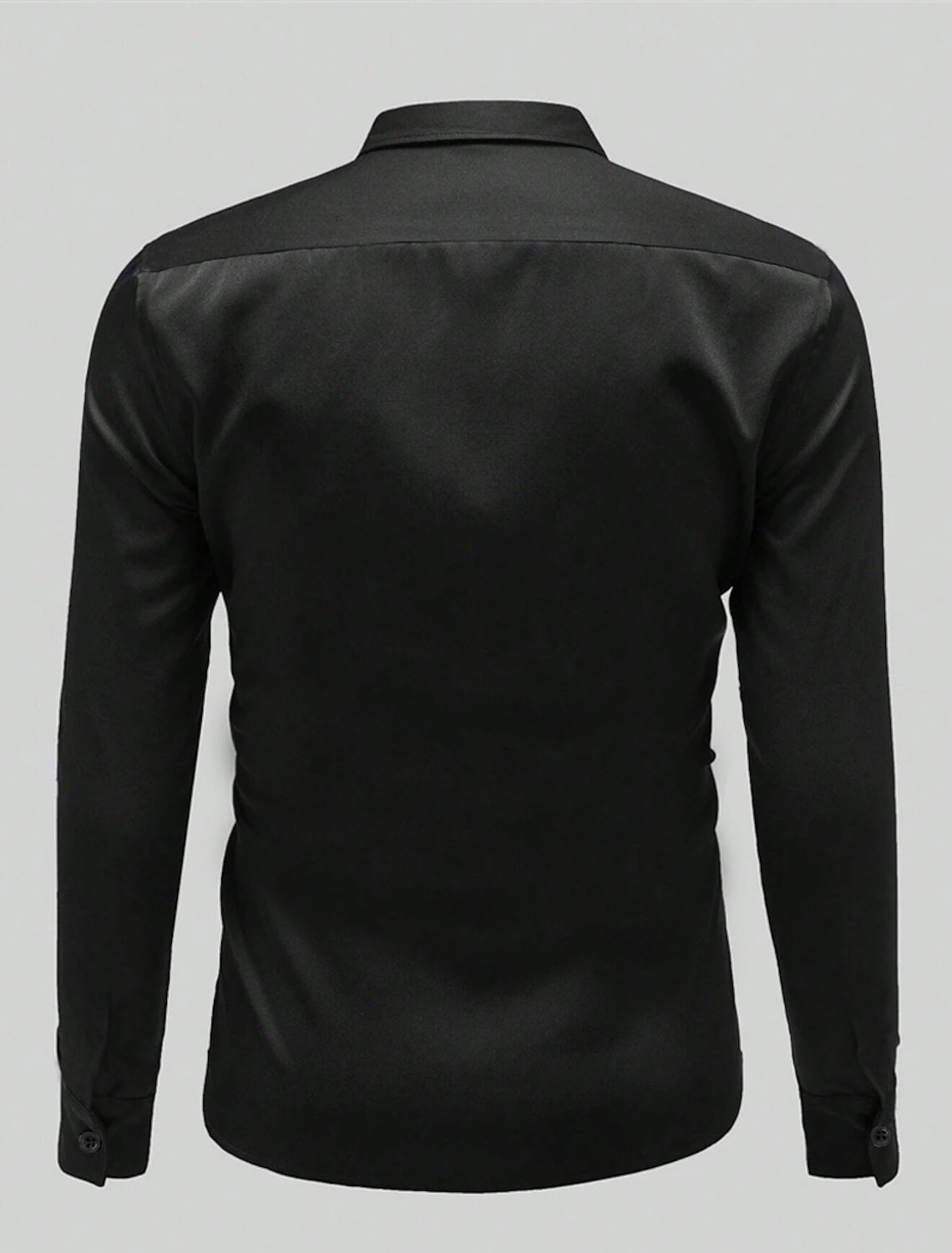 아마존 AliExpress 국경 2024 새로운 남성 단색 새틴 밝은 긴 소매 셔츠