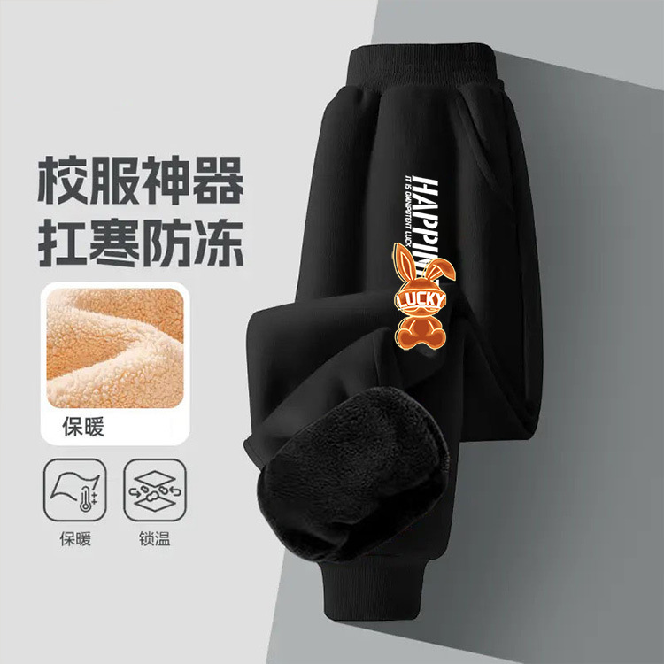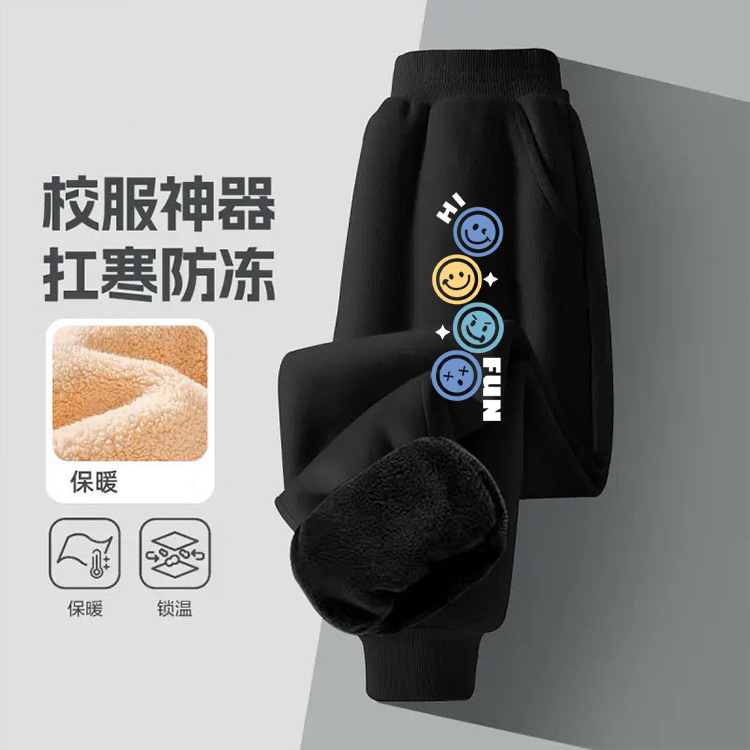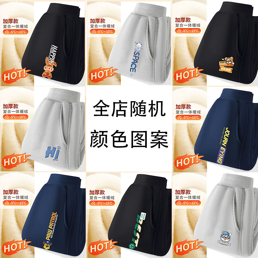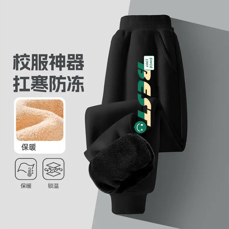 남자들의 겨울 잘 생긴 올 매치 스웨트 팬츠 어린이 기모 바지 대형 어린이 2024 새로운 원피스 양털 따뜻한 바지스토어 가기