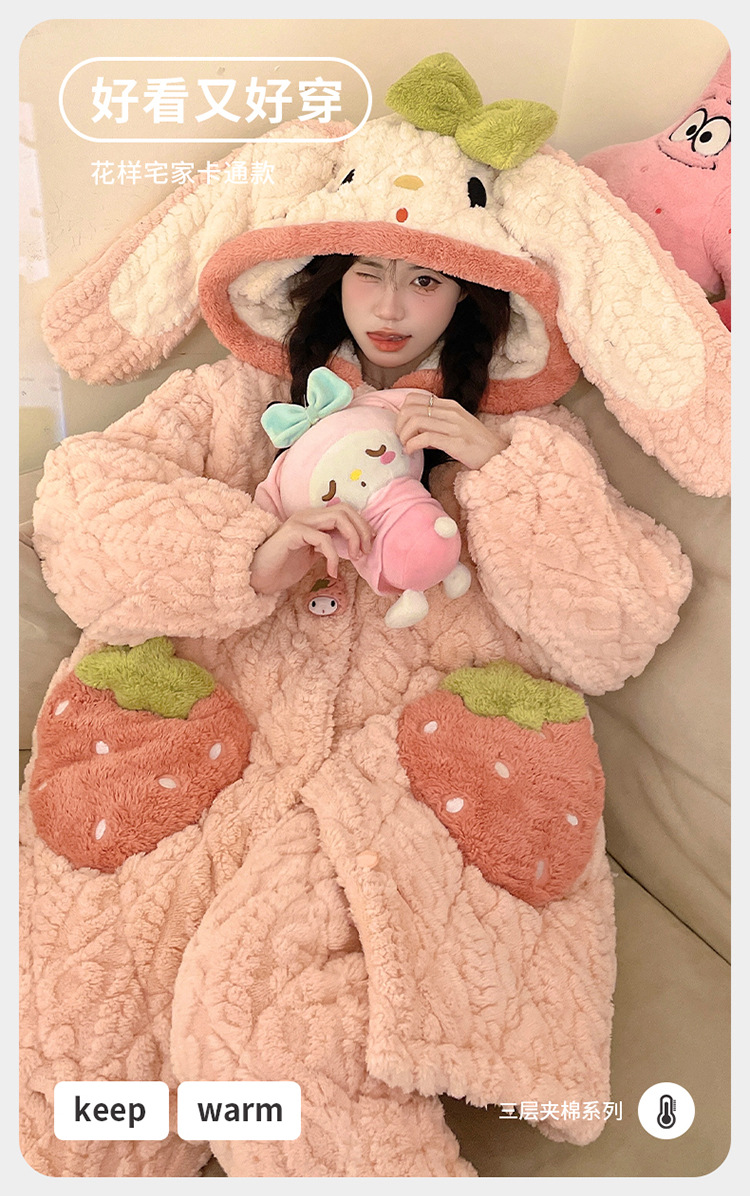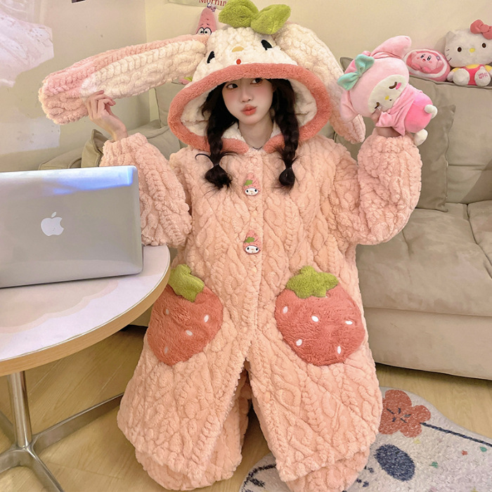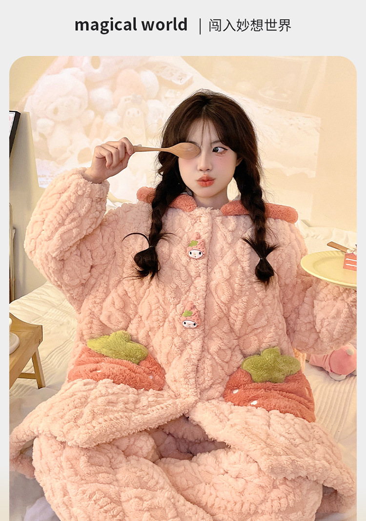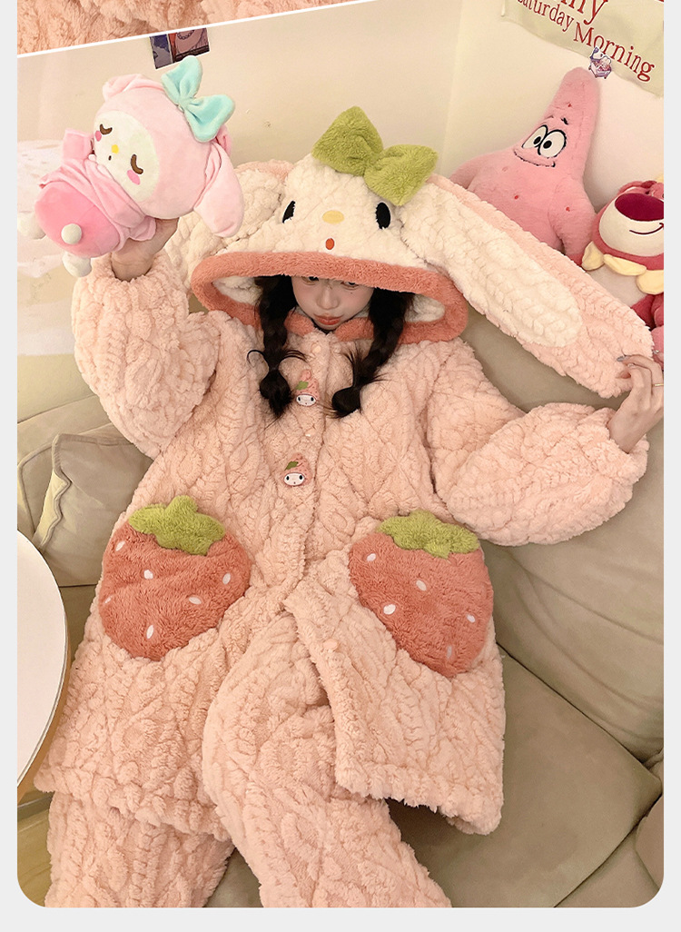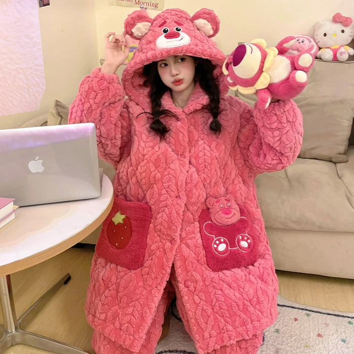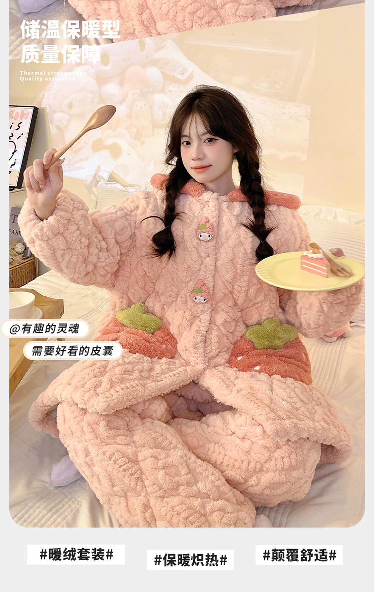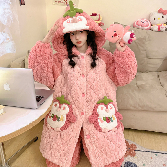 잠옷 여자의 겨울 두꺼운 여자 잠옷 딸기 홈 옷 여성 퀼트 파자마 귀여운 따뜻한 벨벳 홈 옷