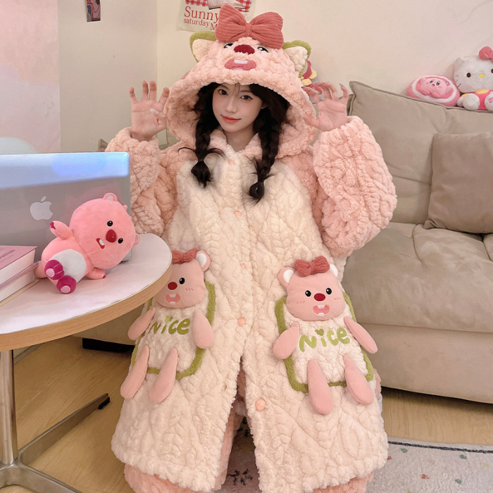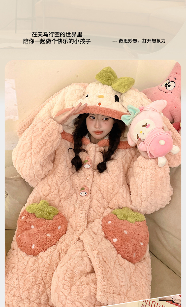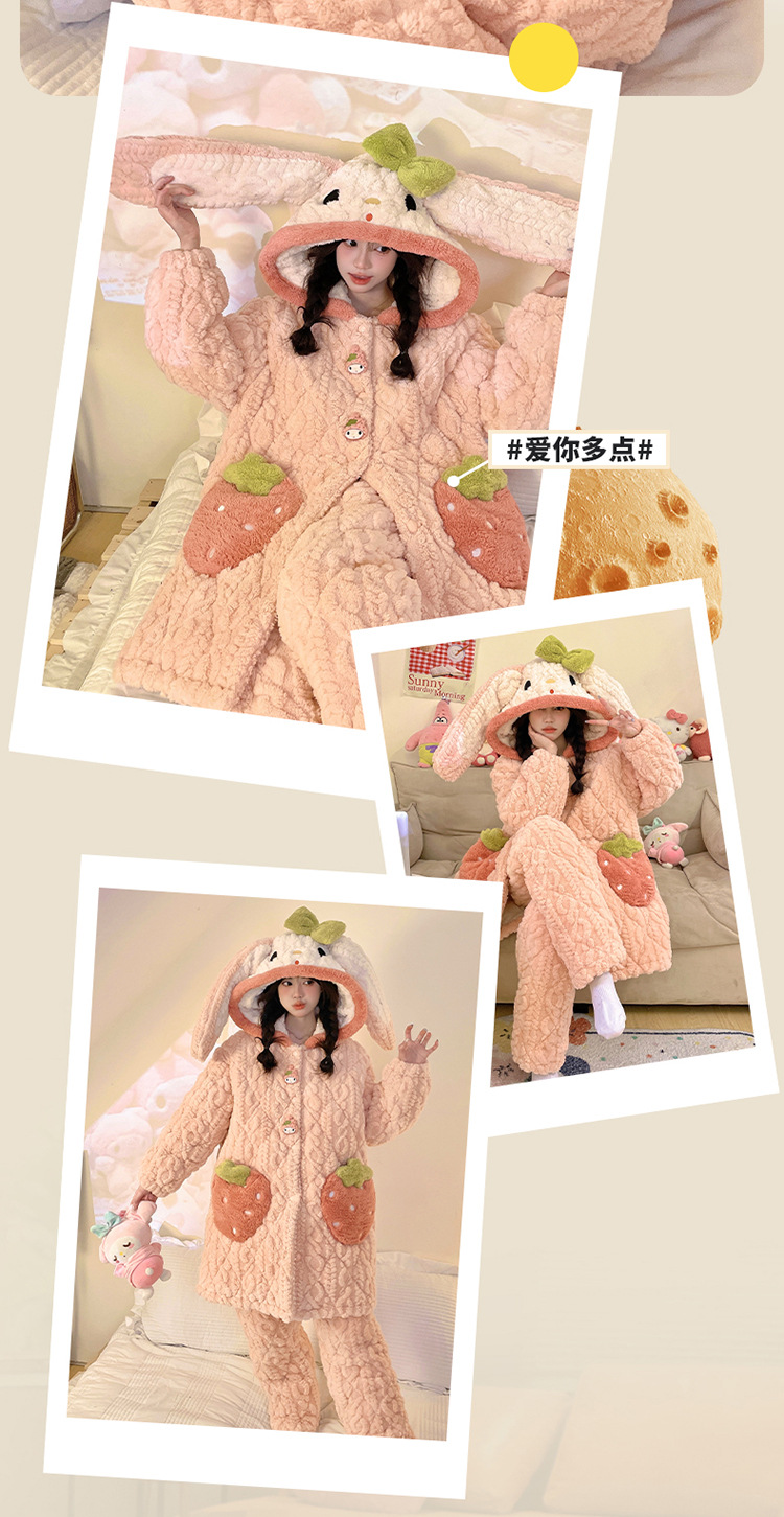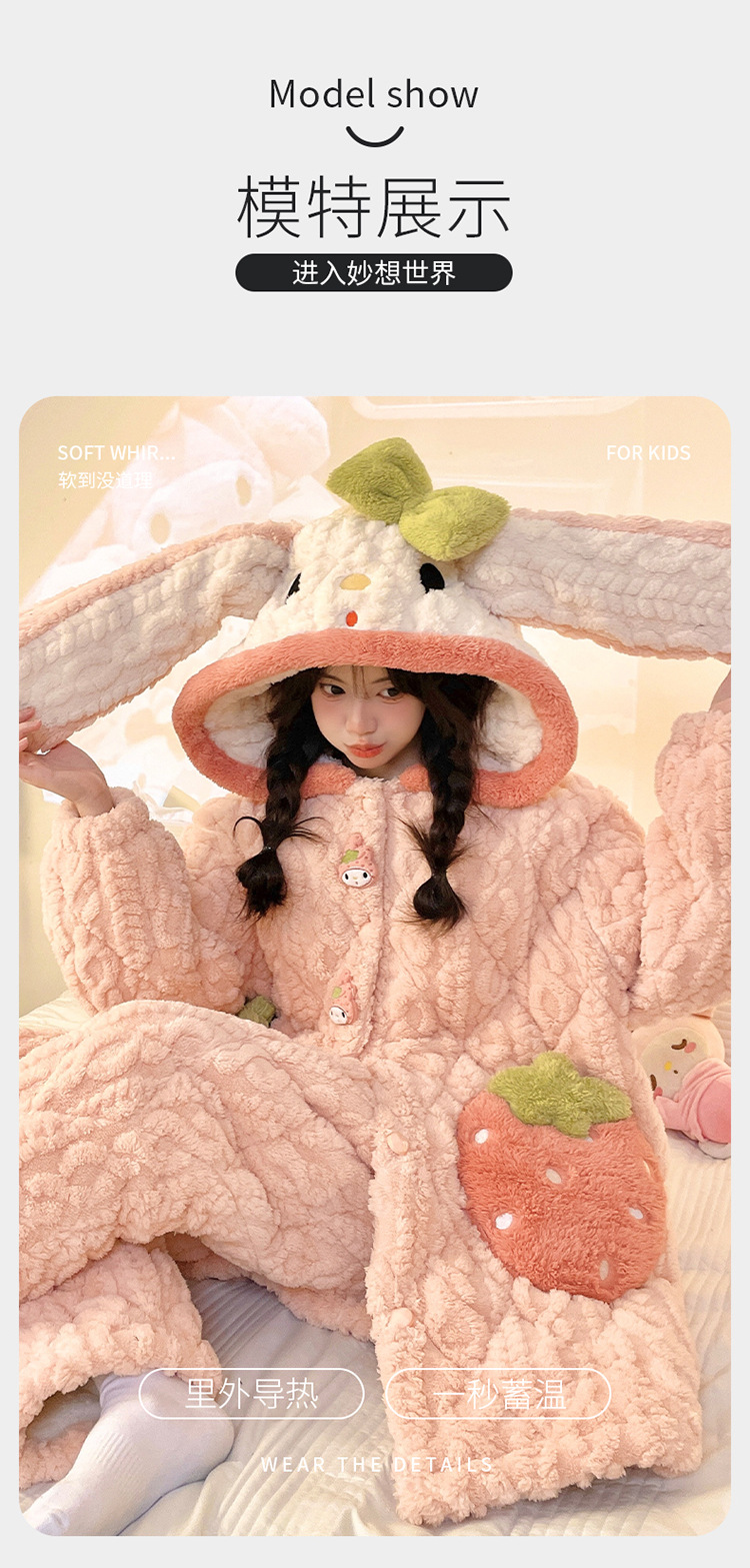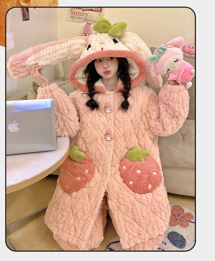 잠옷 여자의 겨울 두꺼운 여자 잠옷 딸기 홈 옷 여성 퀼트 파자마 귀여운 따뜻한 벨벳 홈 옷
