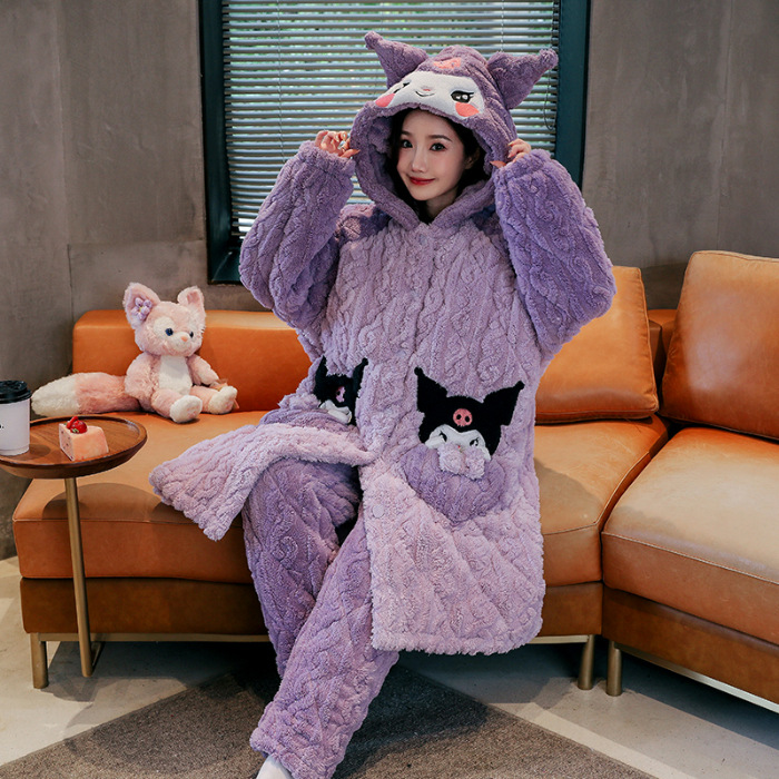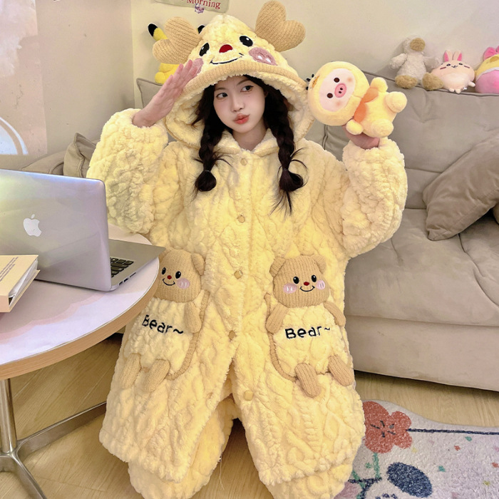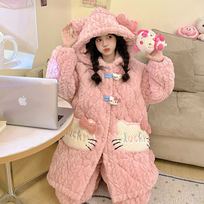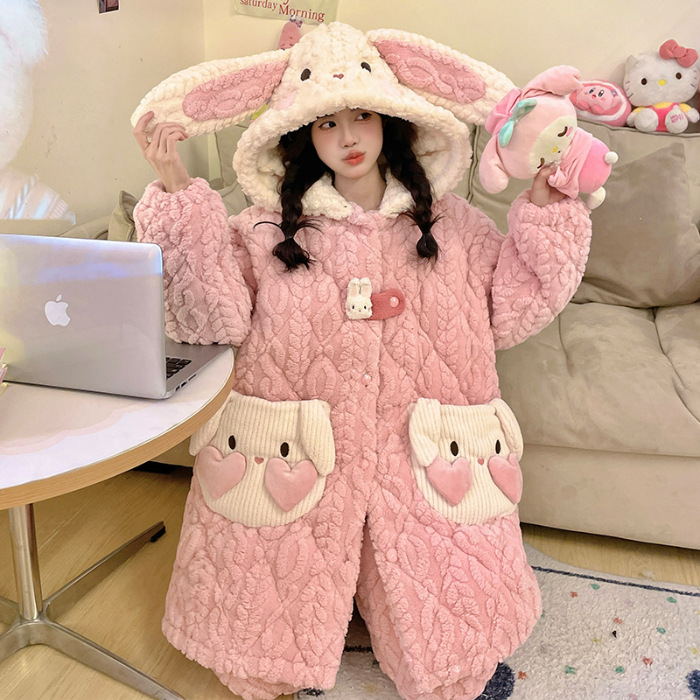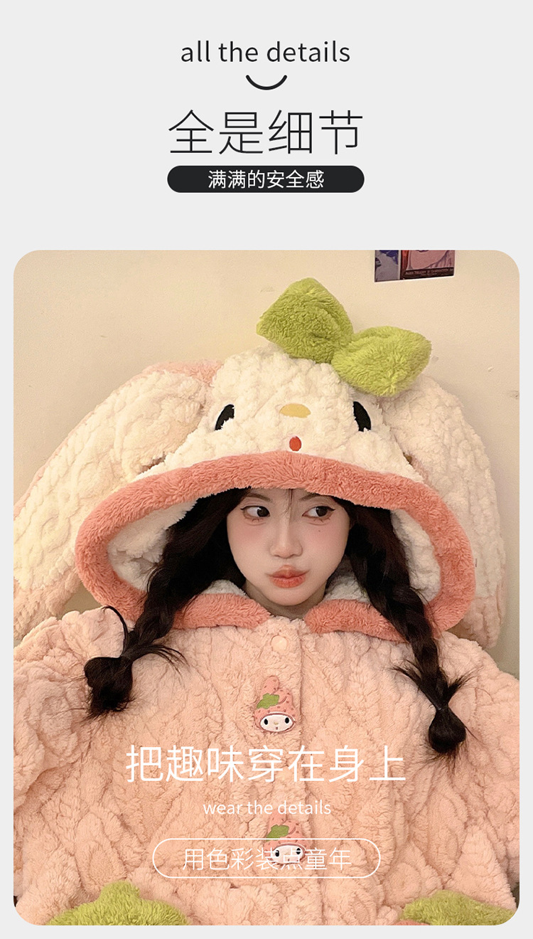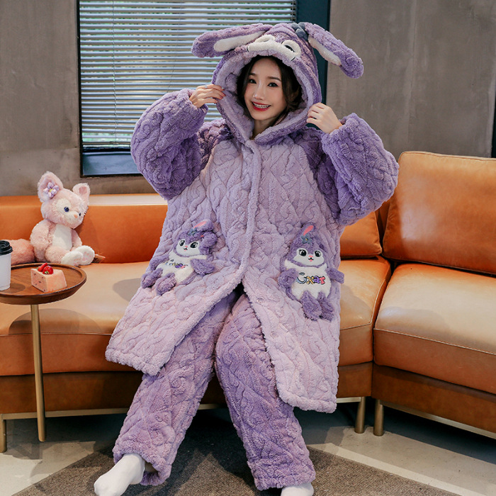 睡衣女冬款加厚女士睡衣粉色家居服女夹棉睡衣可爱保暖绒家居服女