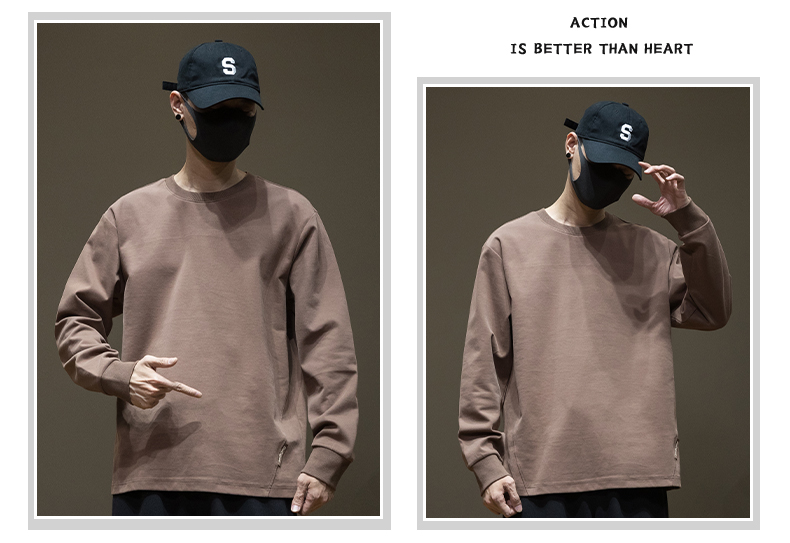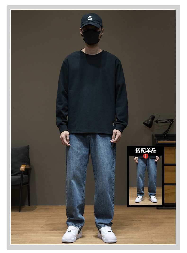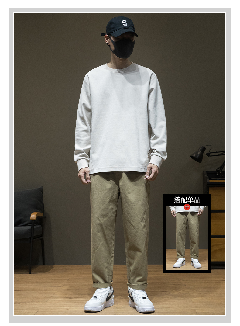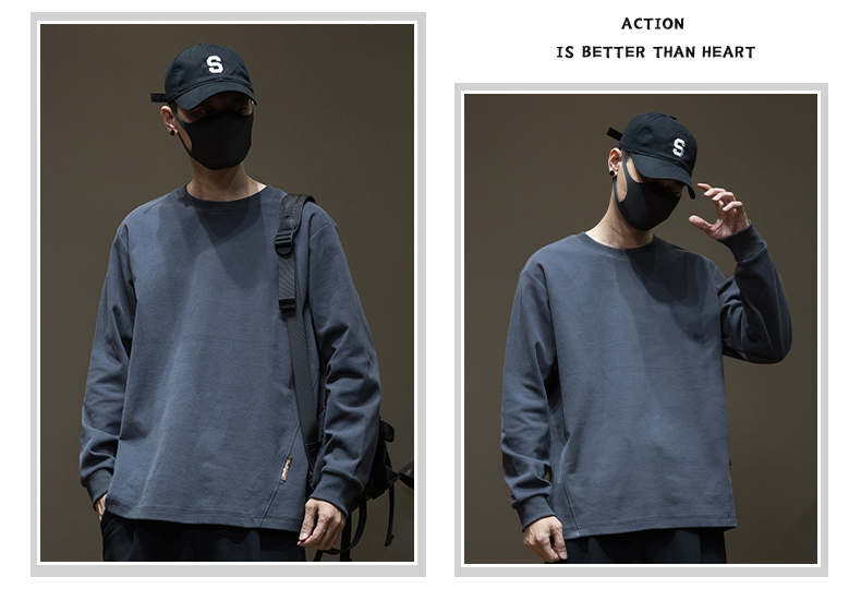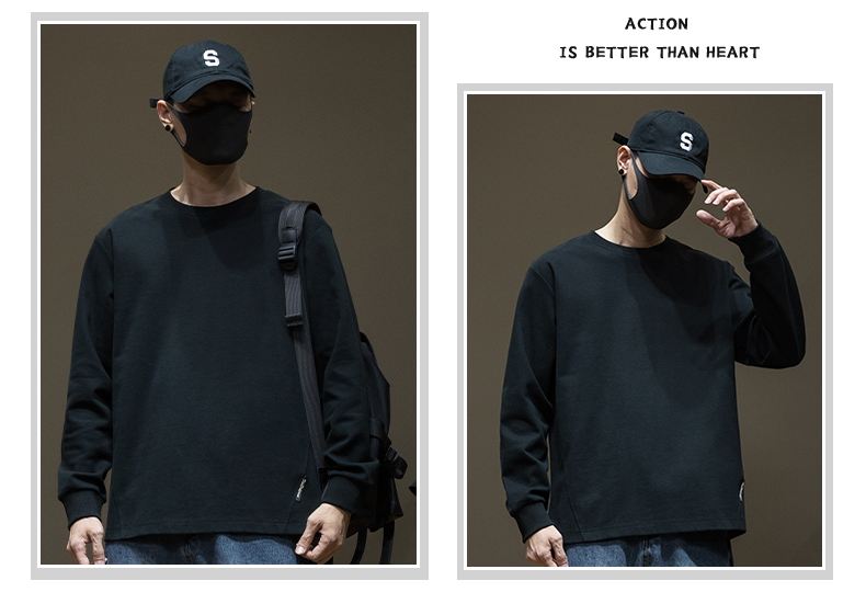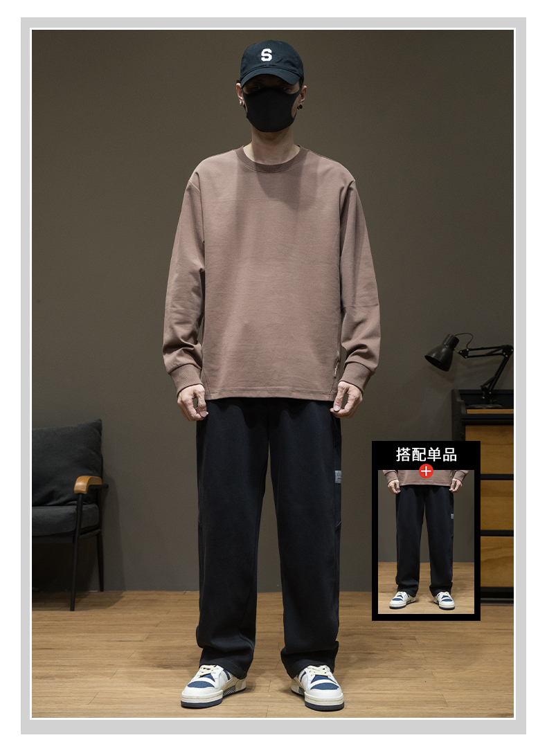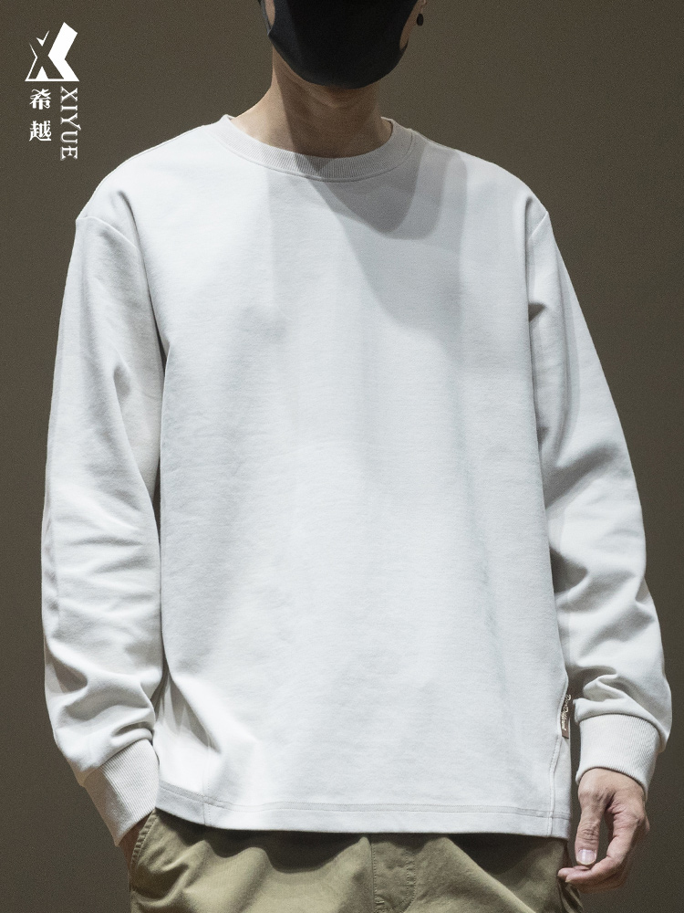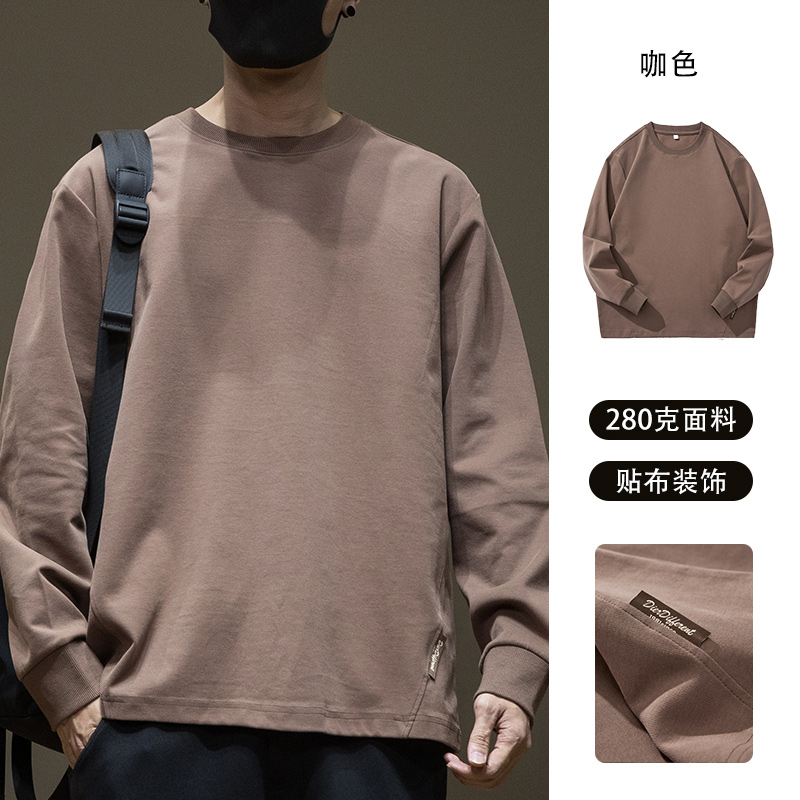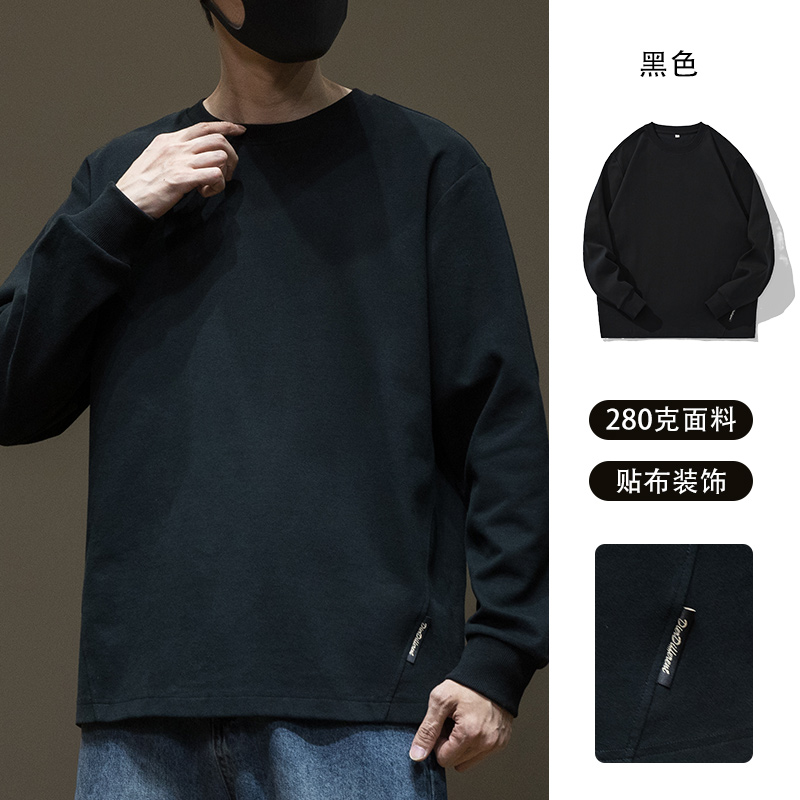 280g 무거운 빗 코튼 솔리드 컬러 탑 남자 조커 긴 소매 티셔츠 2024 가을/겨울 느슨한 플러스 사이즈 베이스 셔츠스토어 가기