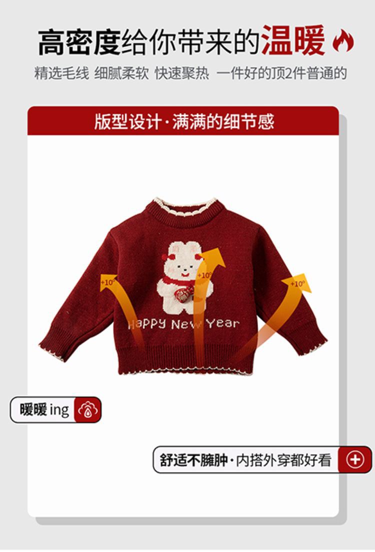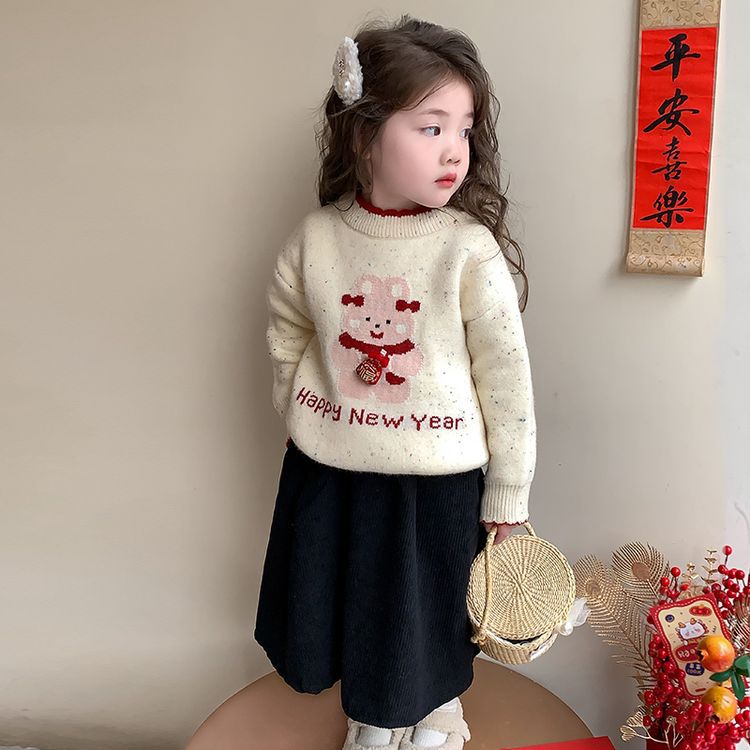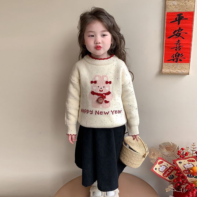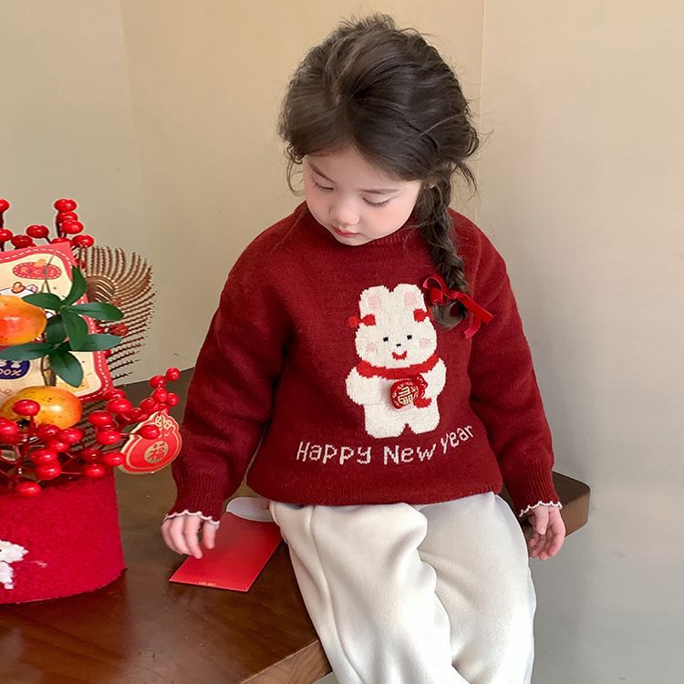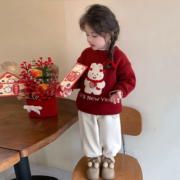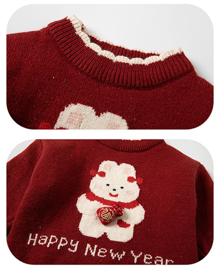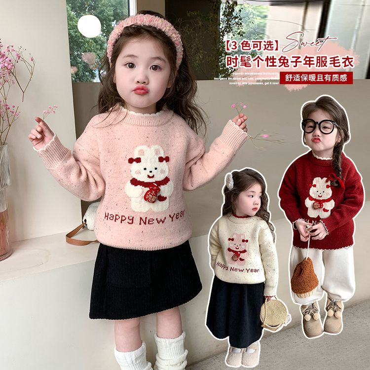 여자 스웨터 겨울 2024 새로운 어린이 크리스마스 겨울 착용 아기 소녀 붉은 새해 두꺼운 니트베이스 셔츠