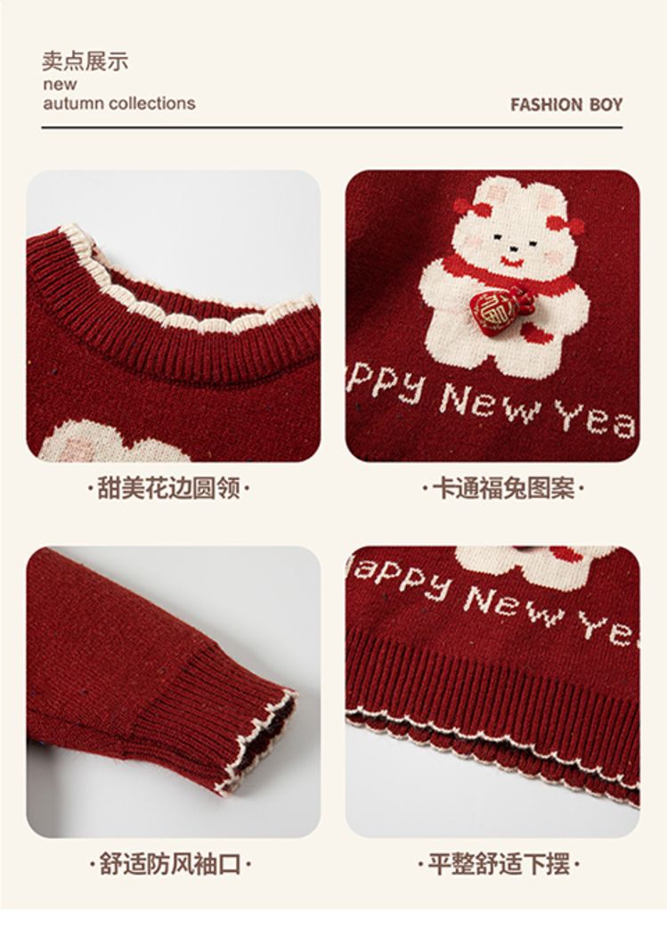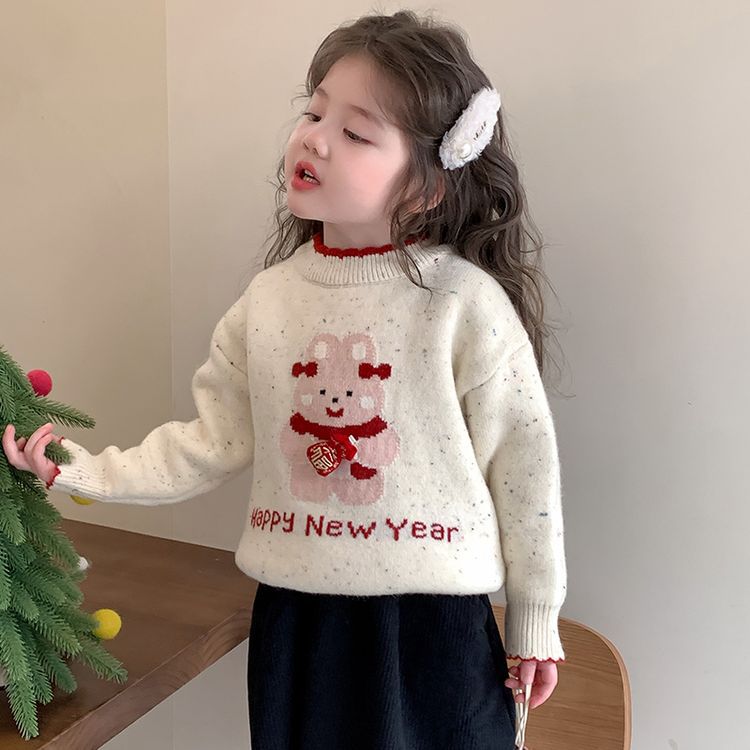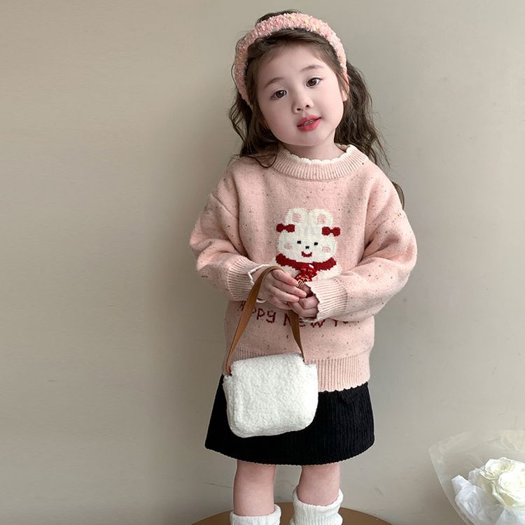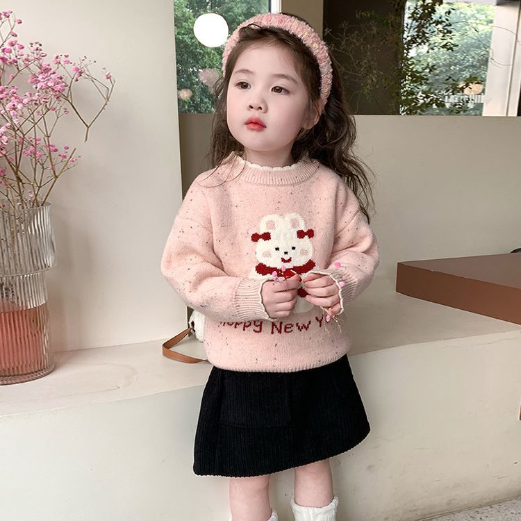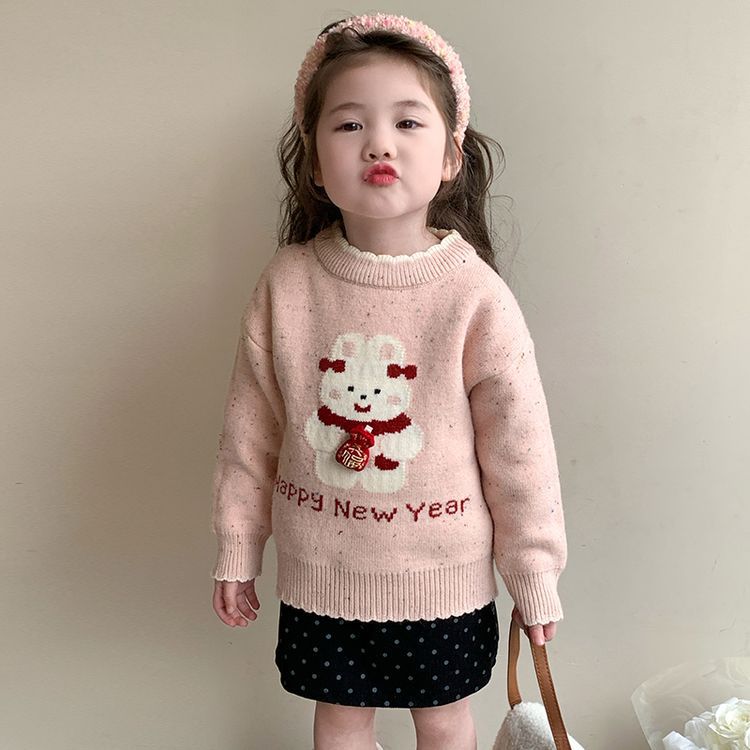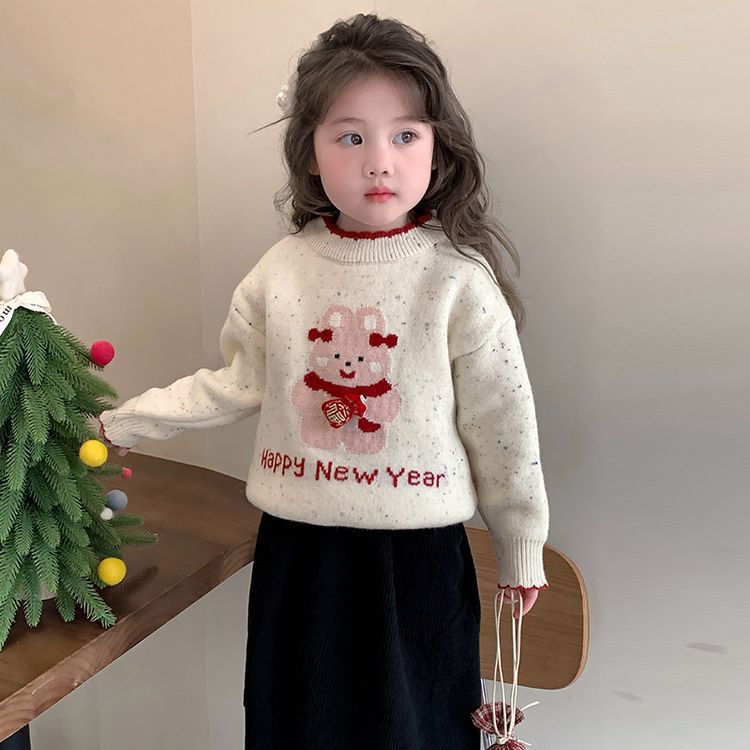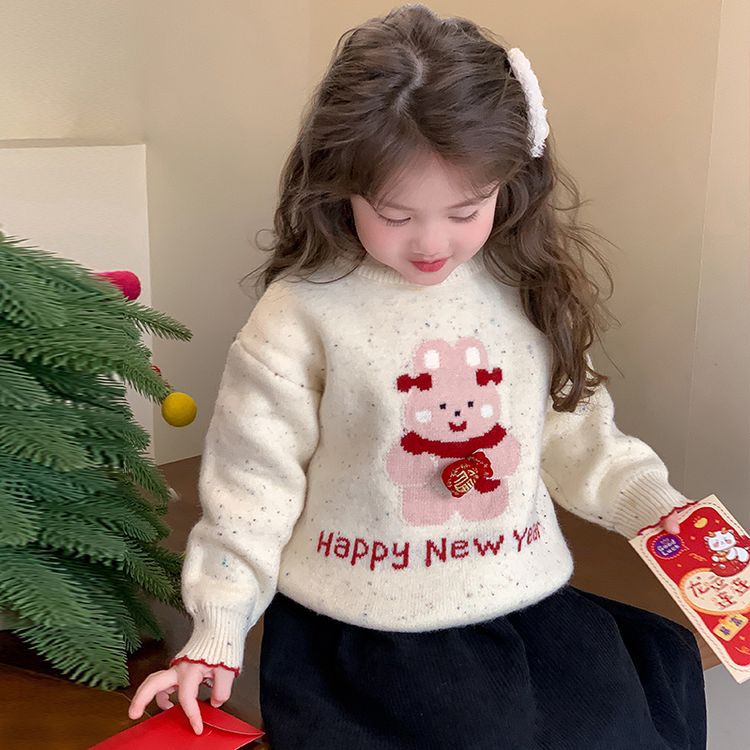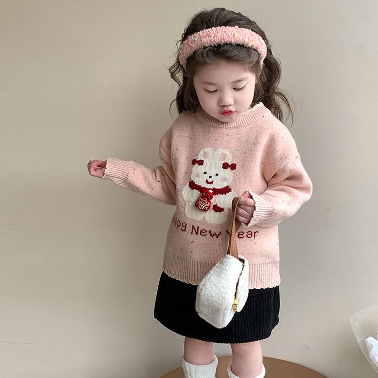 여자 스웨터 겨울 2024 새로운 어린이 크리스마스 겨울 착용 아기 소녀 붉은 새해 두꺼운 니트베이스 셔츠스토어 가기