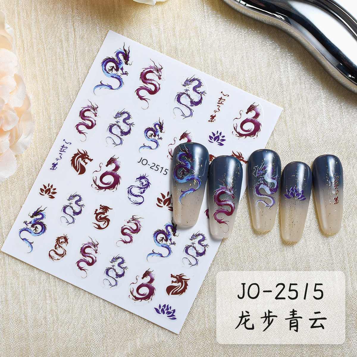 드래곤 년 네일 아트 2024 새해 국가 스타일 국가 조수 서예 스티커 Longbu Qingyun Xiangyun 매직 컬러 길조 네일 스티커