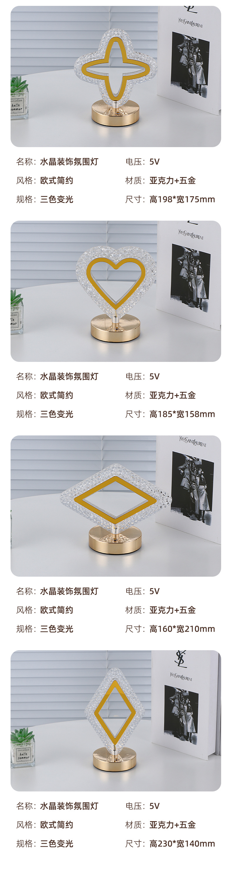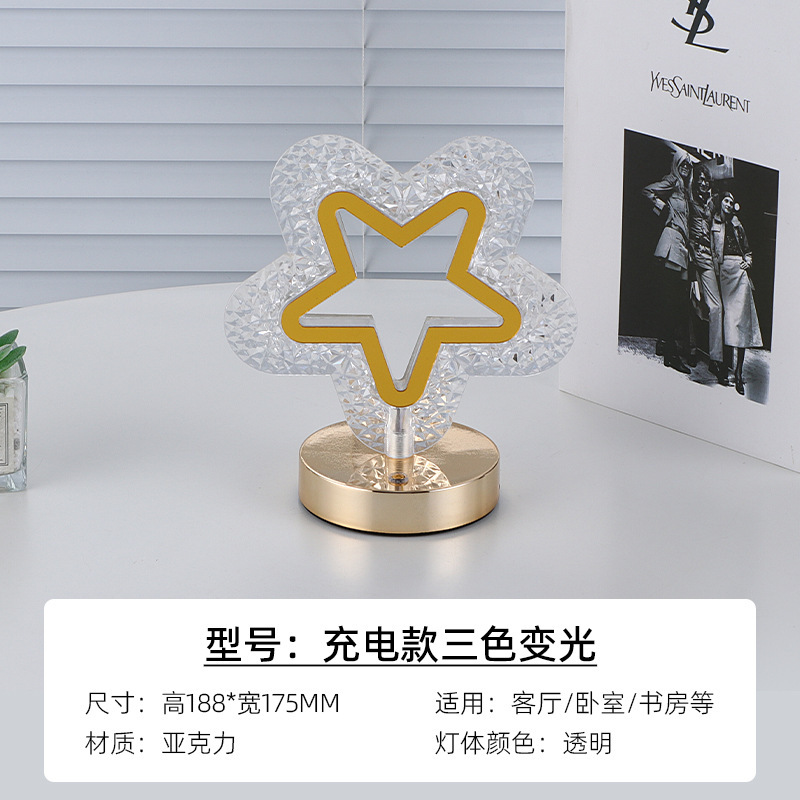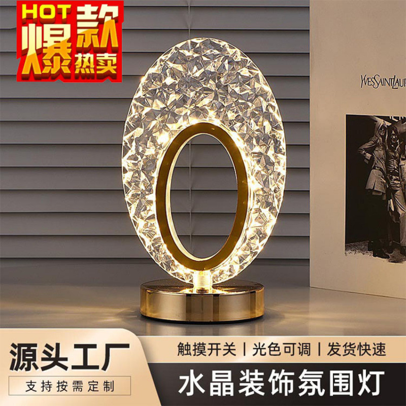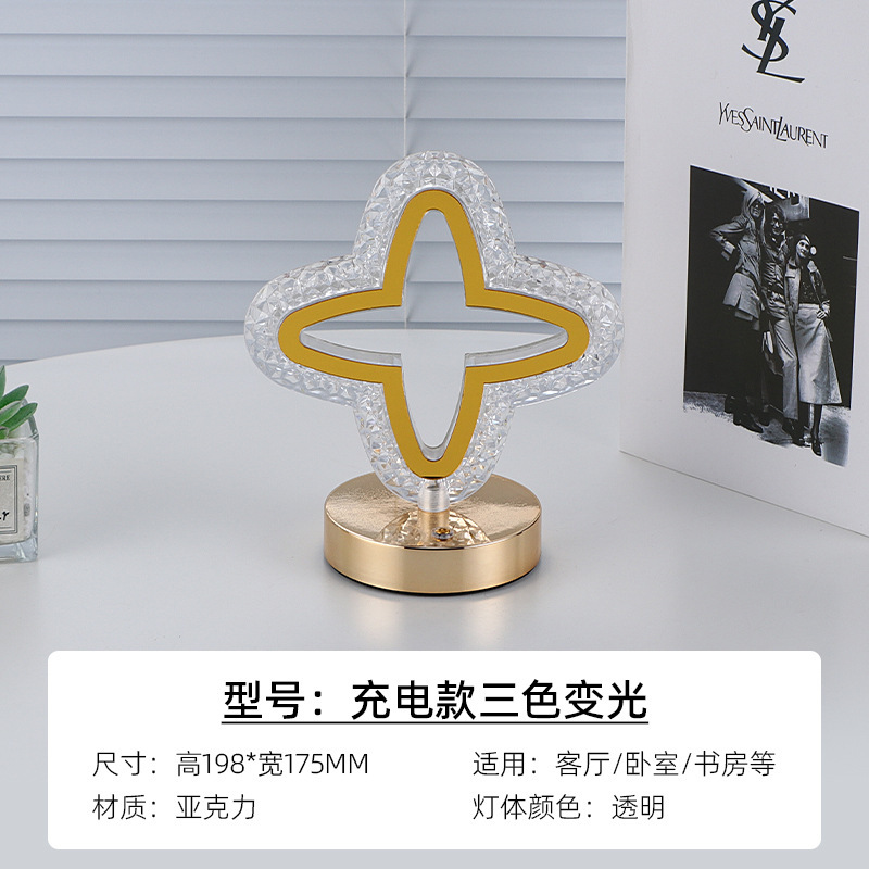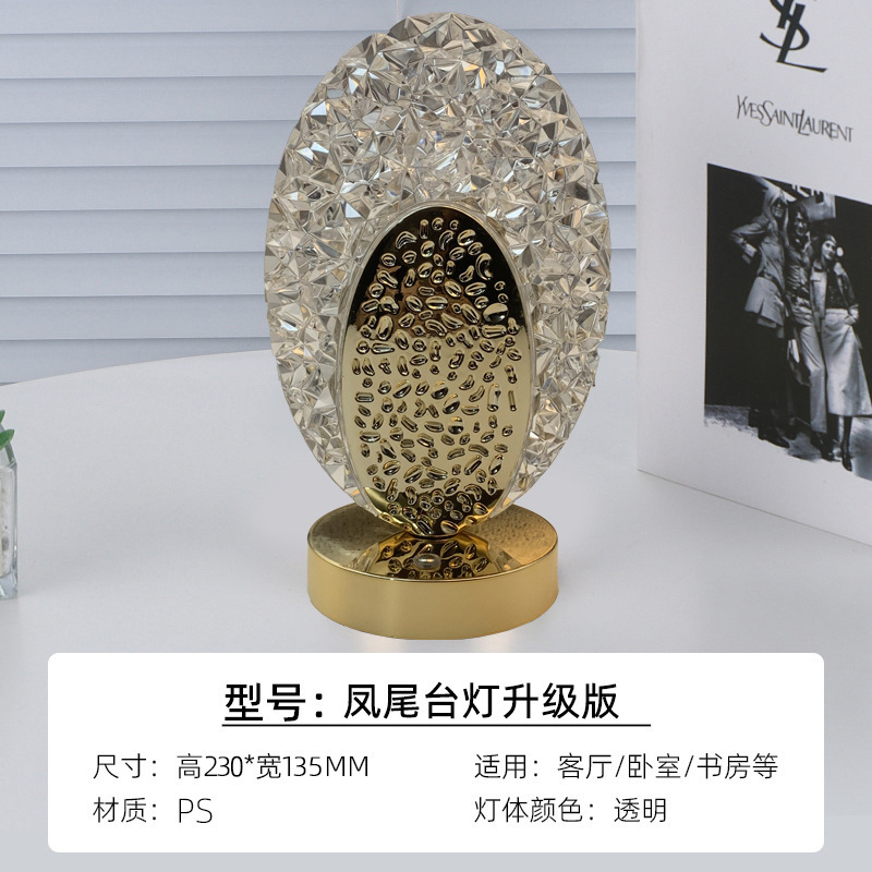 국경 크리스탈 테이블 램프 침대 옆 램프 3 색 충전식 dimmable 눈 보호 야간 피닉스 꼬리 낭만적 인 선물 분위기 램프