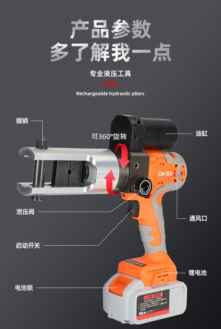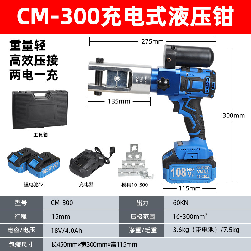 전기 유압 리튬 충전 압착 펜치 CM300 작은 휴대용 구리 알루미늄 단자 압착 전기 펜치스토어 가기