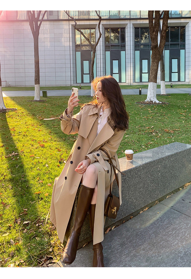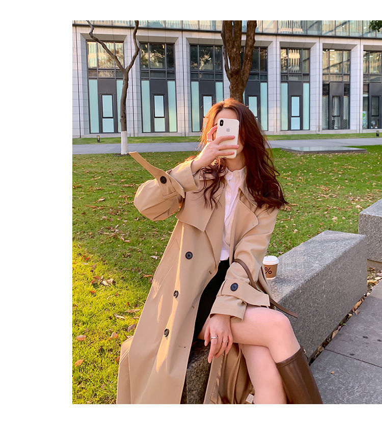 A6C 윈드 브레이커 코트 여성의 2024 년 봄과 가을 새로운 한국 세트 칼라 긴 재킷 느슨한 기질 인기