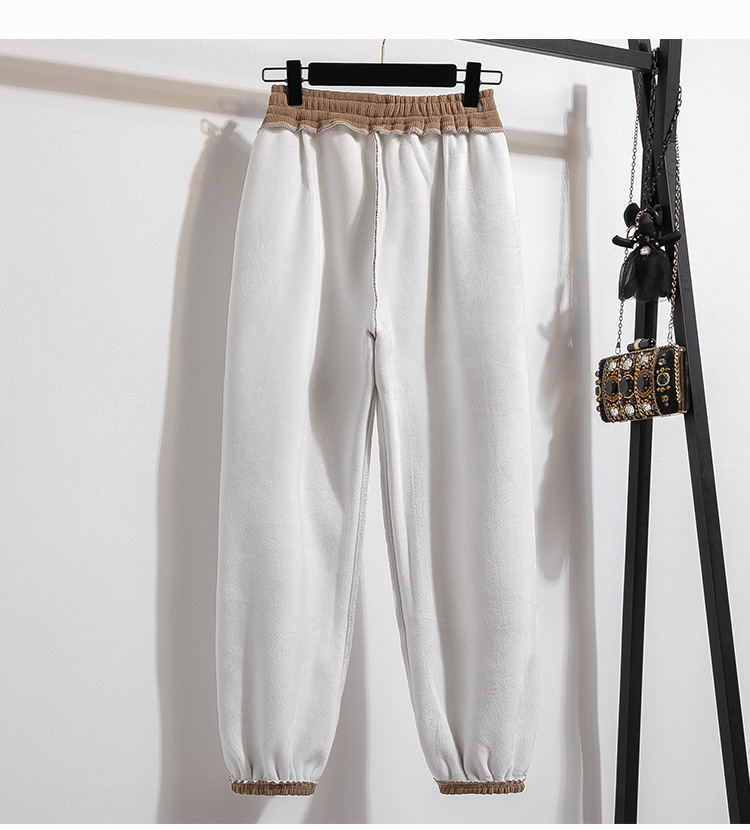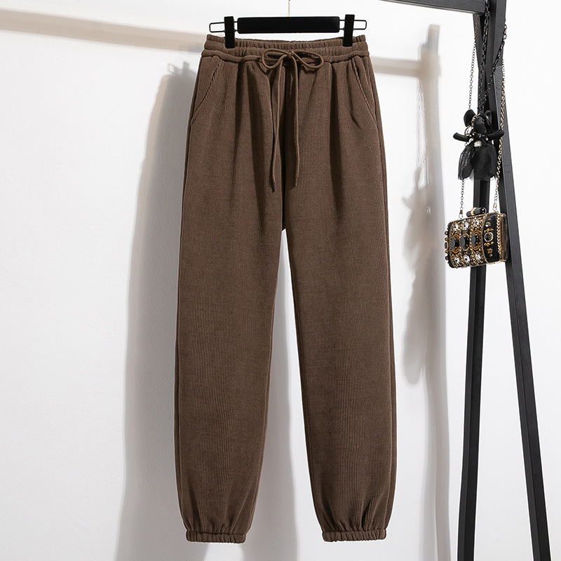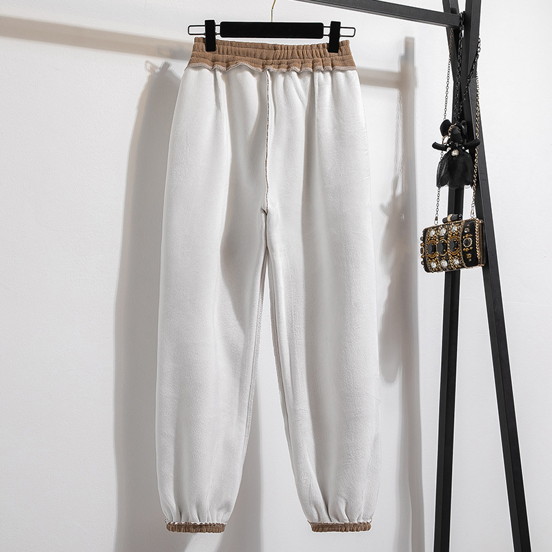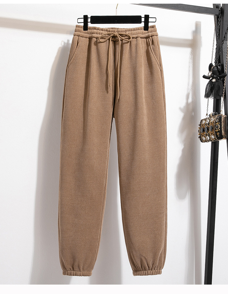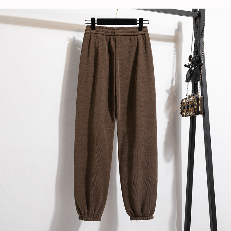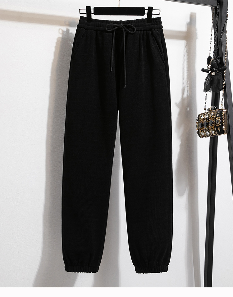 스포츠 바지 여자 플러스 사이즈 겨울 2024 새로운 느슨한 발 캐주얼 도구 기모 따뜻한 웨이 바지