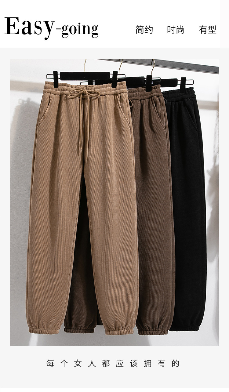 스포츠 바지 여자 플러스 사이즈 겨울 2024 새로운 느슨한 발 캐주얼 도구 기모 따뜻한 웨이 바지스토어 가기