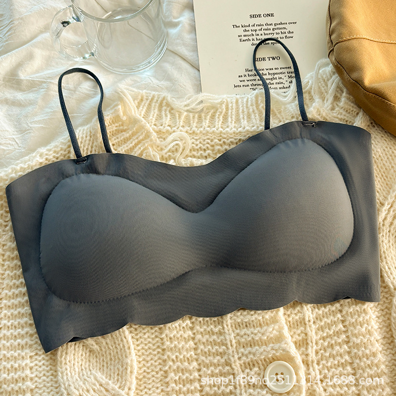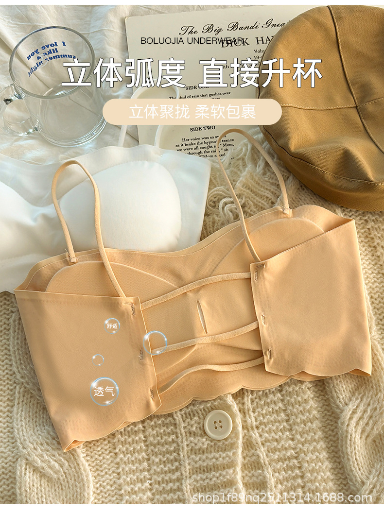 여름 아이스 실크 아름다운 백 튜브 탑 내부 옷 소녀 가죽 브래지어 스틸 반지 없음 얇은 중공 작은 조끼 없음 마크 랩 가슴스토어 가기