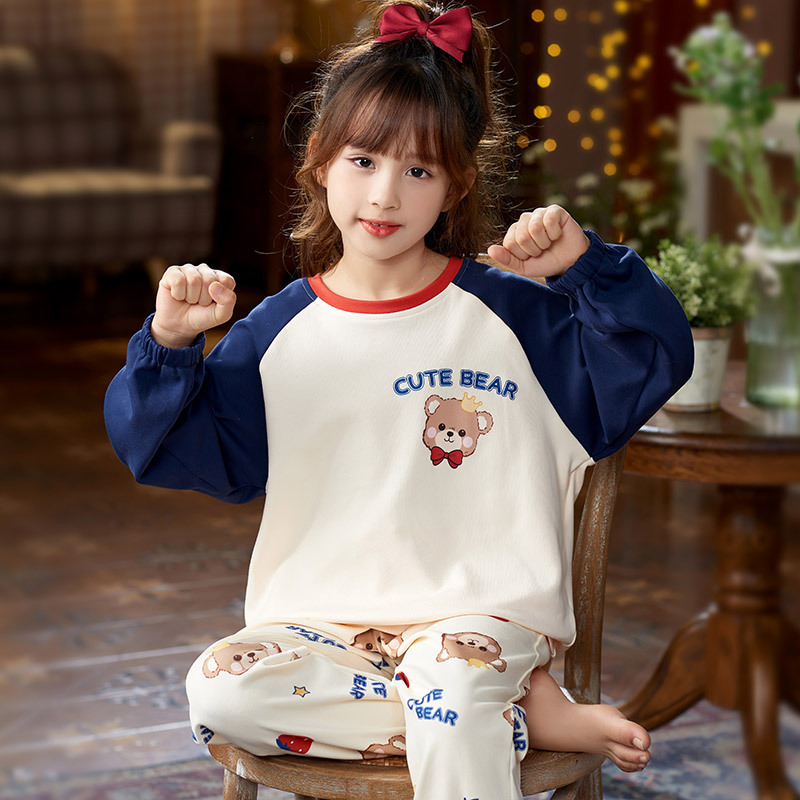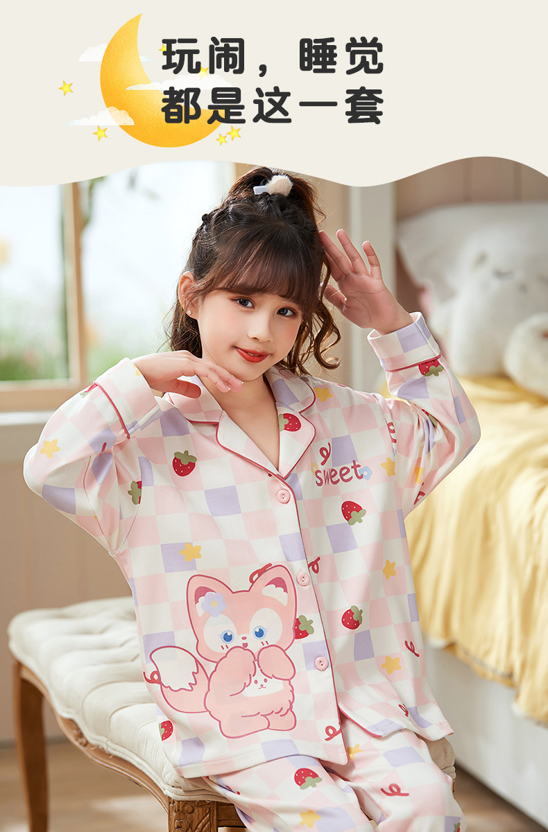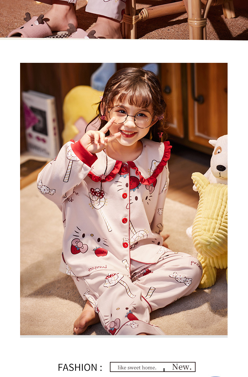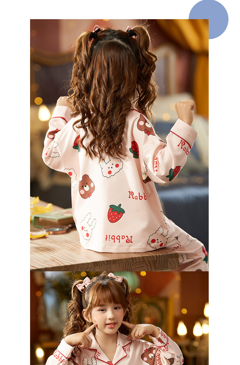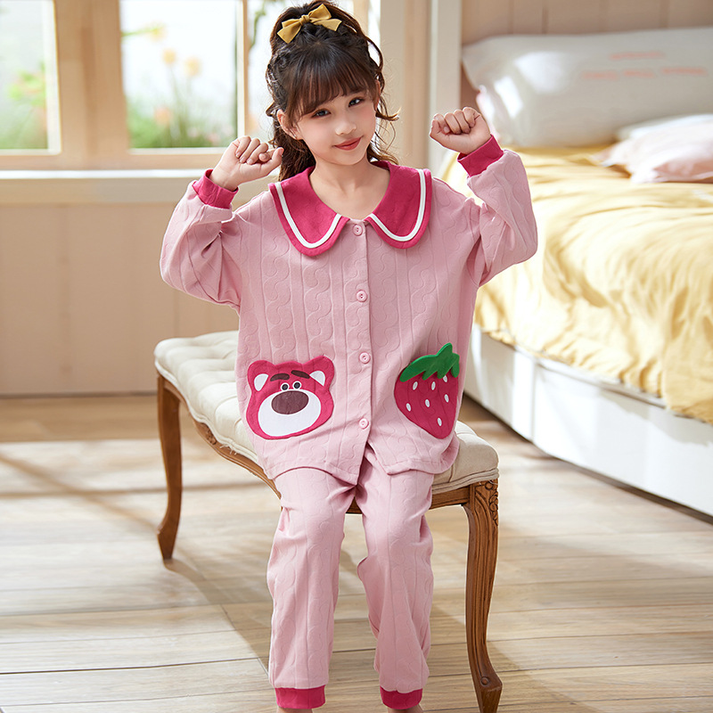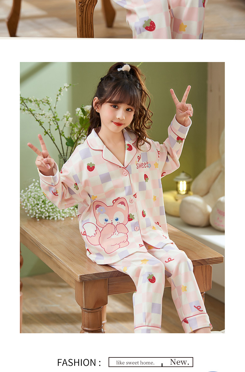 어린이 잠옷 봄과 가을 2024 새로운 순수한 면 긴 소매 얇은 소녀 소녀의 서양식 중대형 어린이 가정 옷