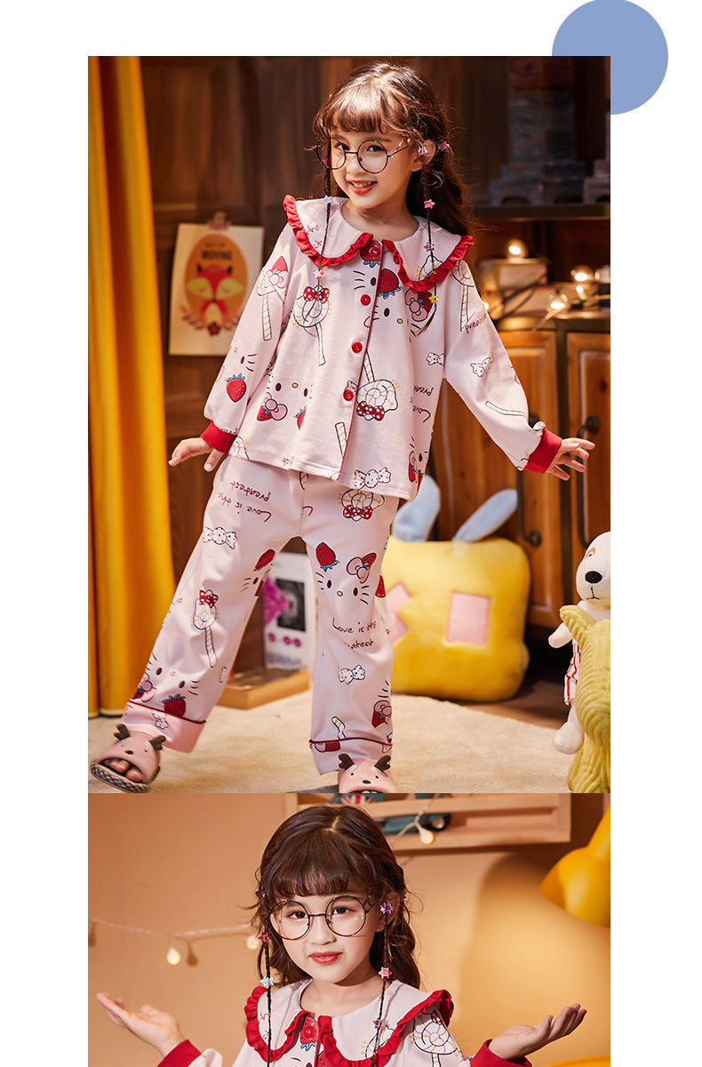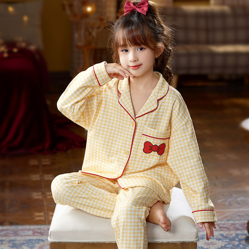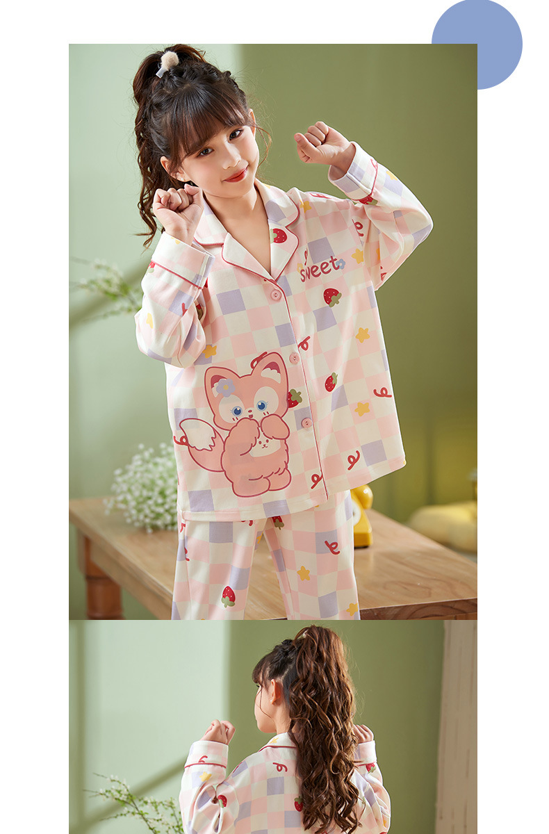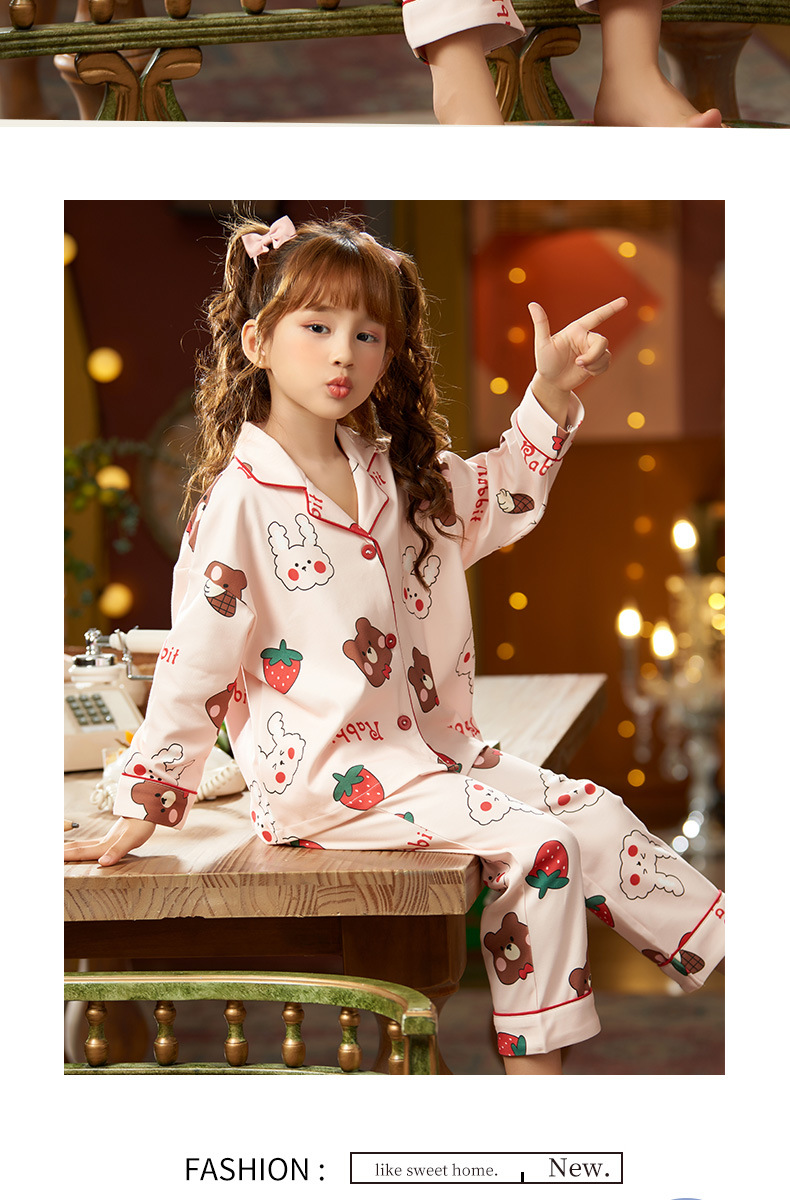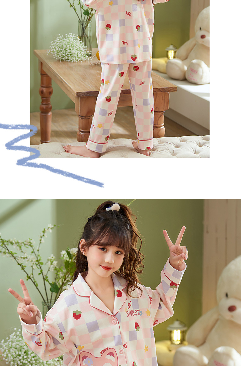 어린이 잠옷 봄과 가을 2024 새로운 순수한 면 긴 소매 얇은 소녀 소녀의 서양식 중대형 어린이 가정 옷