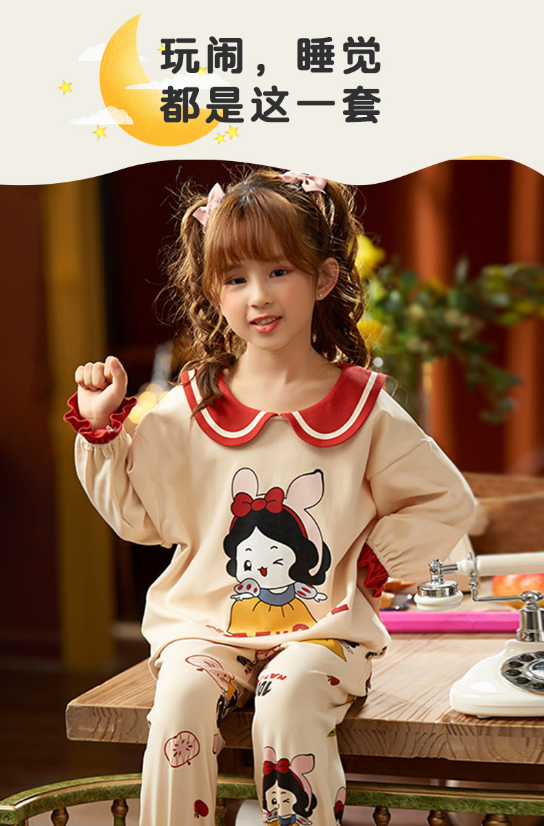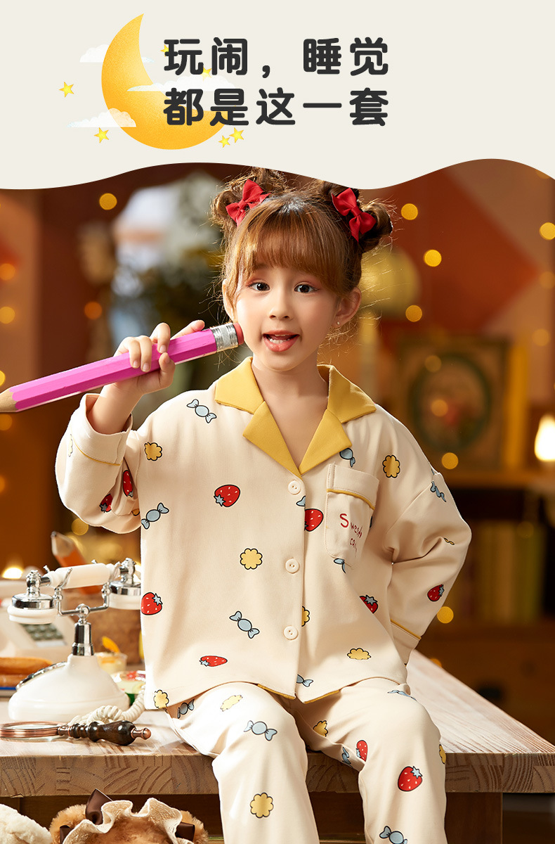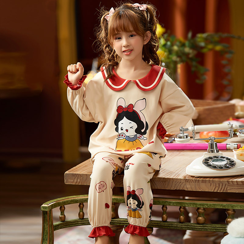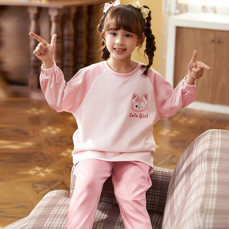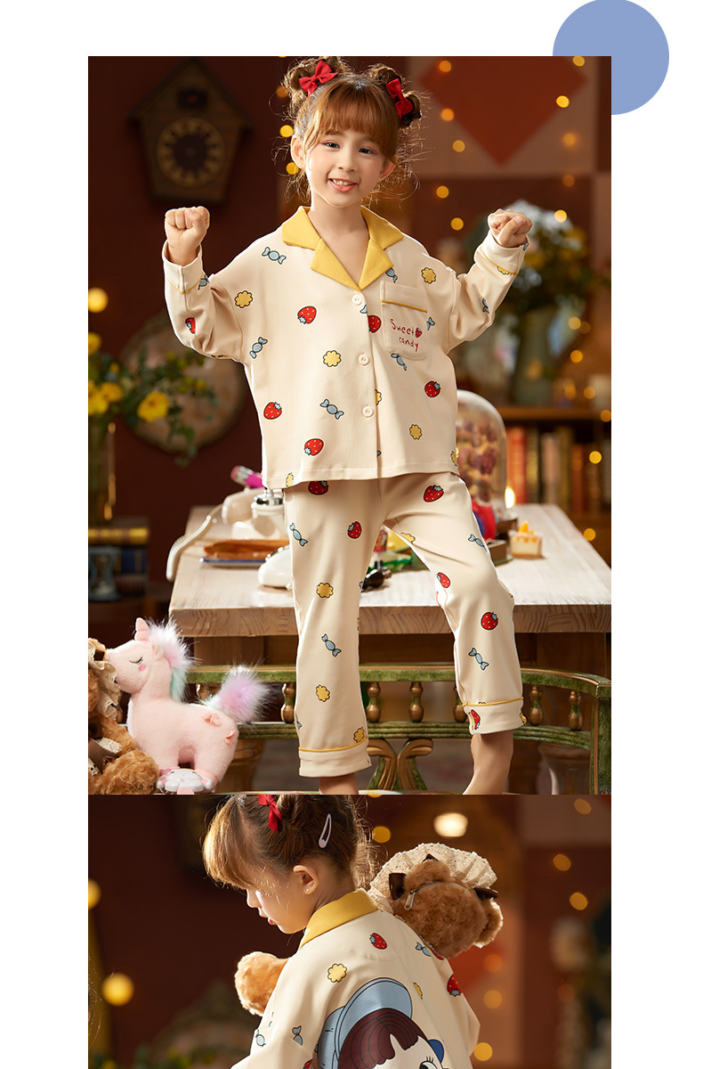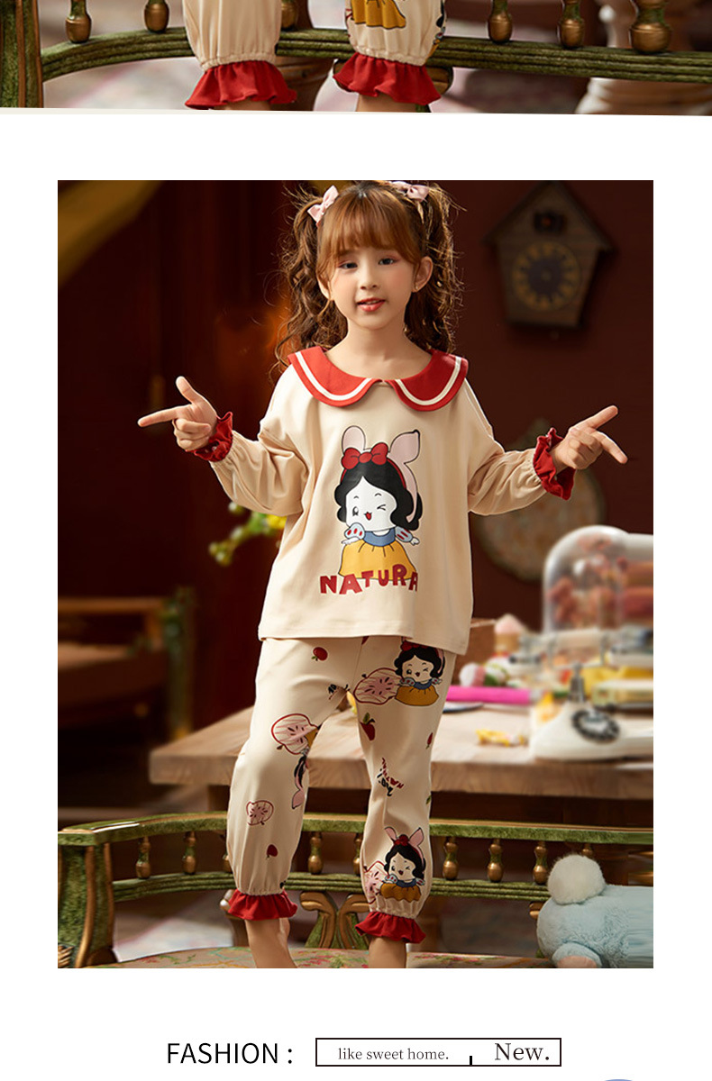 어린이 잠옷 봄과 가을 2024 새로운 순수한 면 긴 소매 얇은 소녀 소녀의 서양식 중대형 어린이 가정 옷