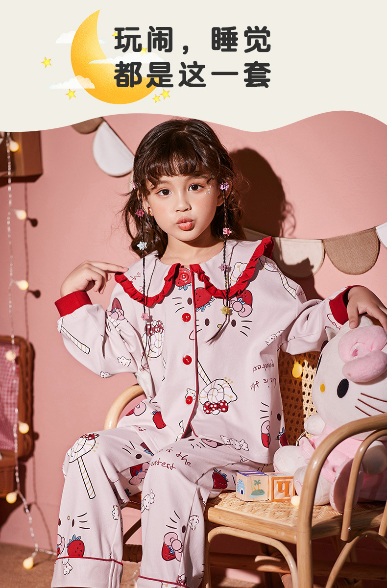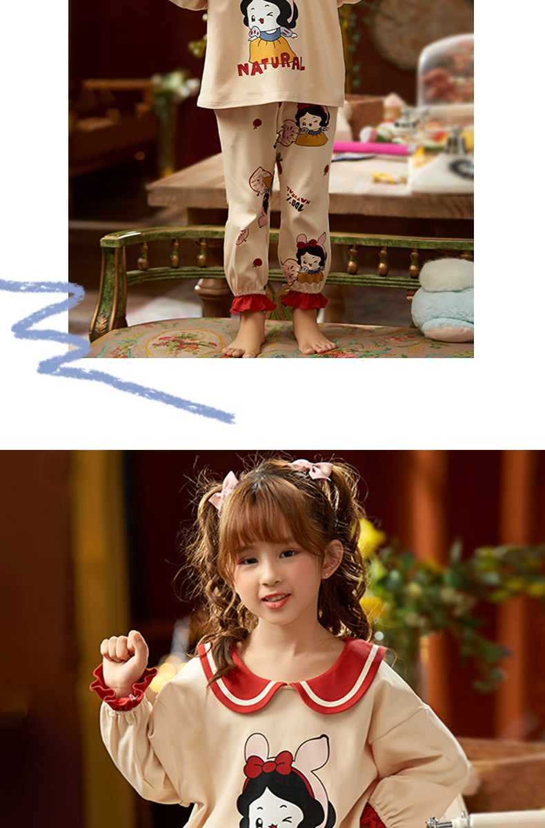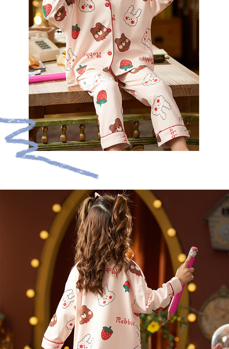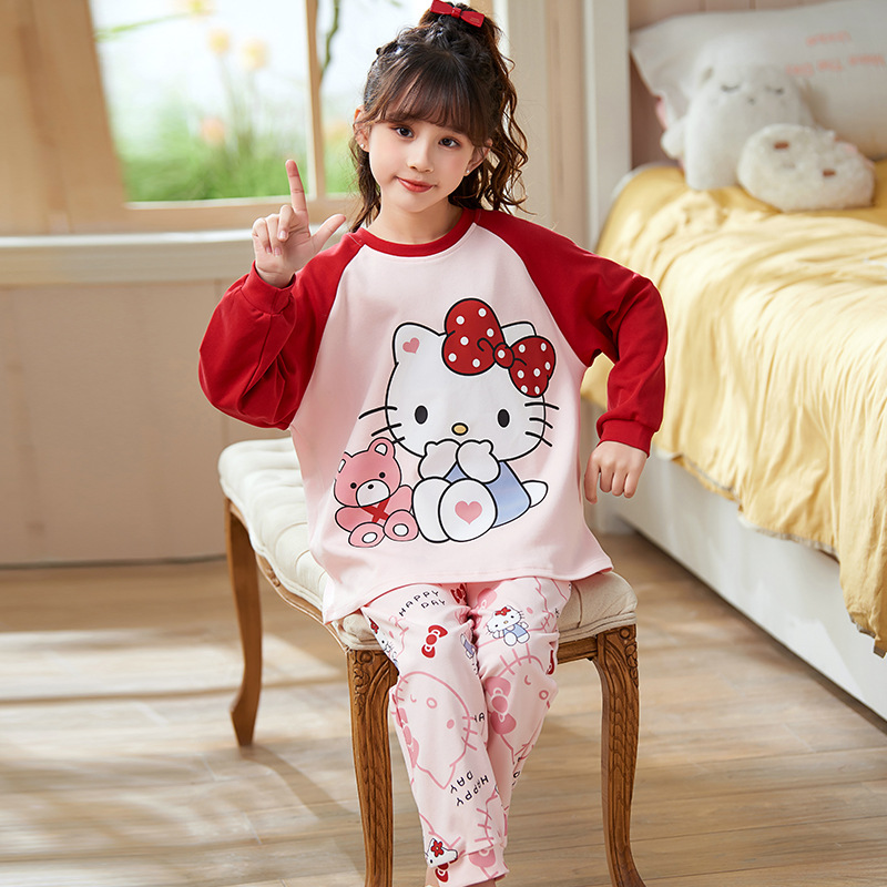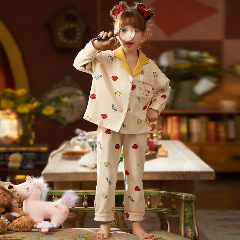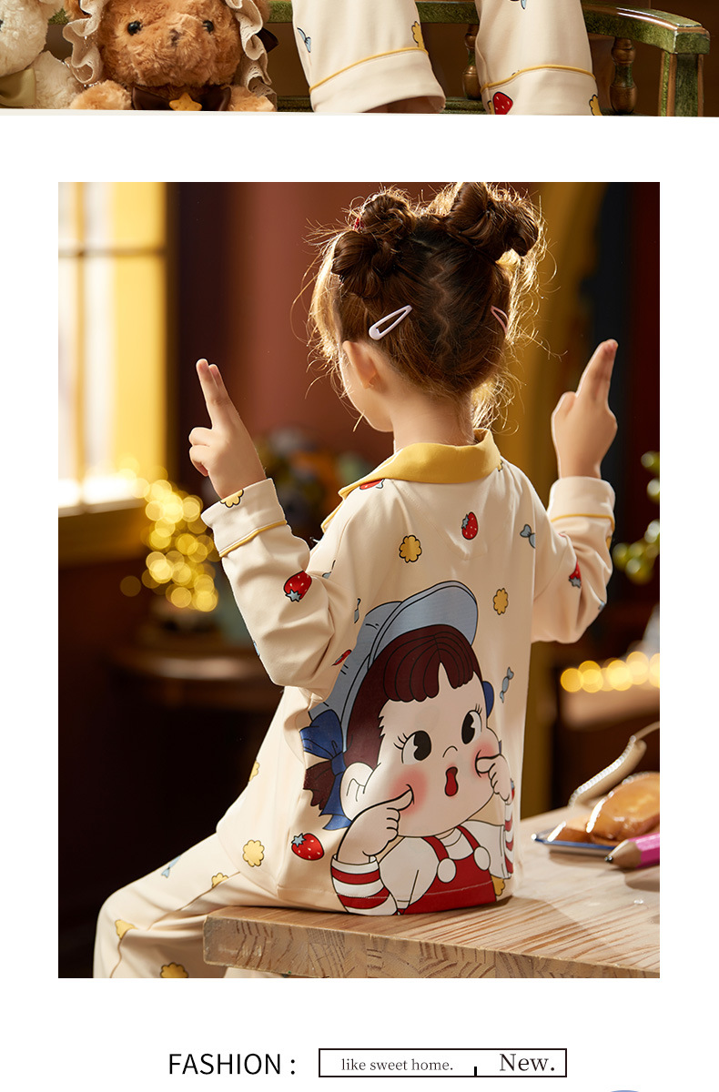어린이 잠옷 봄과 가을 2024 새로운 순수한 면 긴 소매 얇은 소녀 소녀의 서양식 중대형 어린이 가정 옷