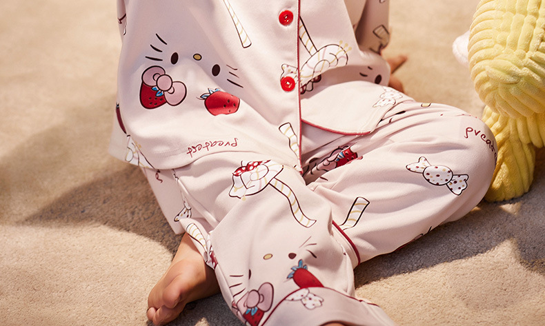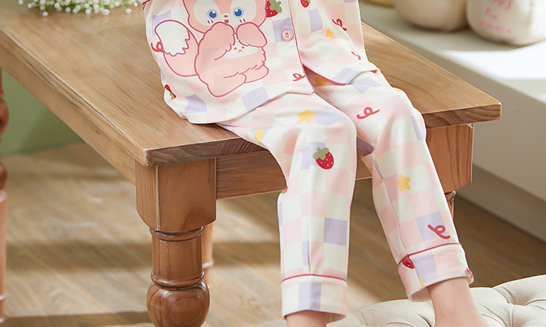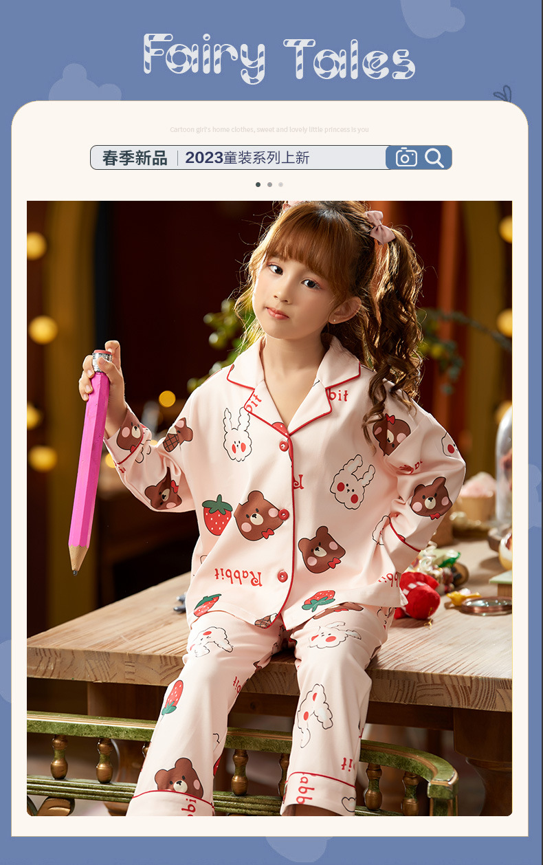 어린이 잠옷 봄과 가을 2024 새로운 순수한 면 긴 소매 얇은 소녀 소녀의 서양식 중대형 어린이 가정 옷스토어 가기