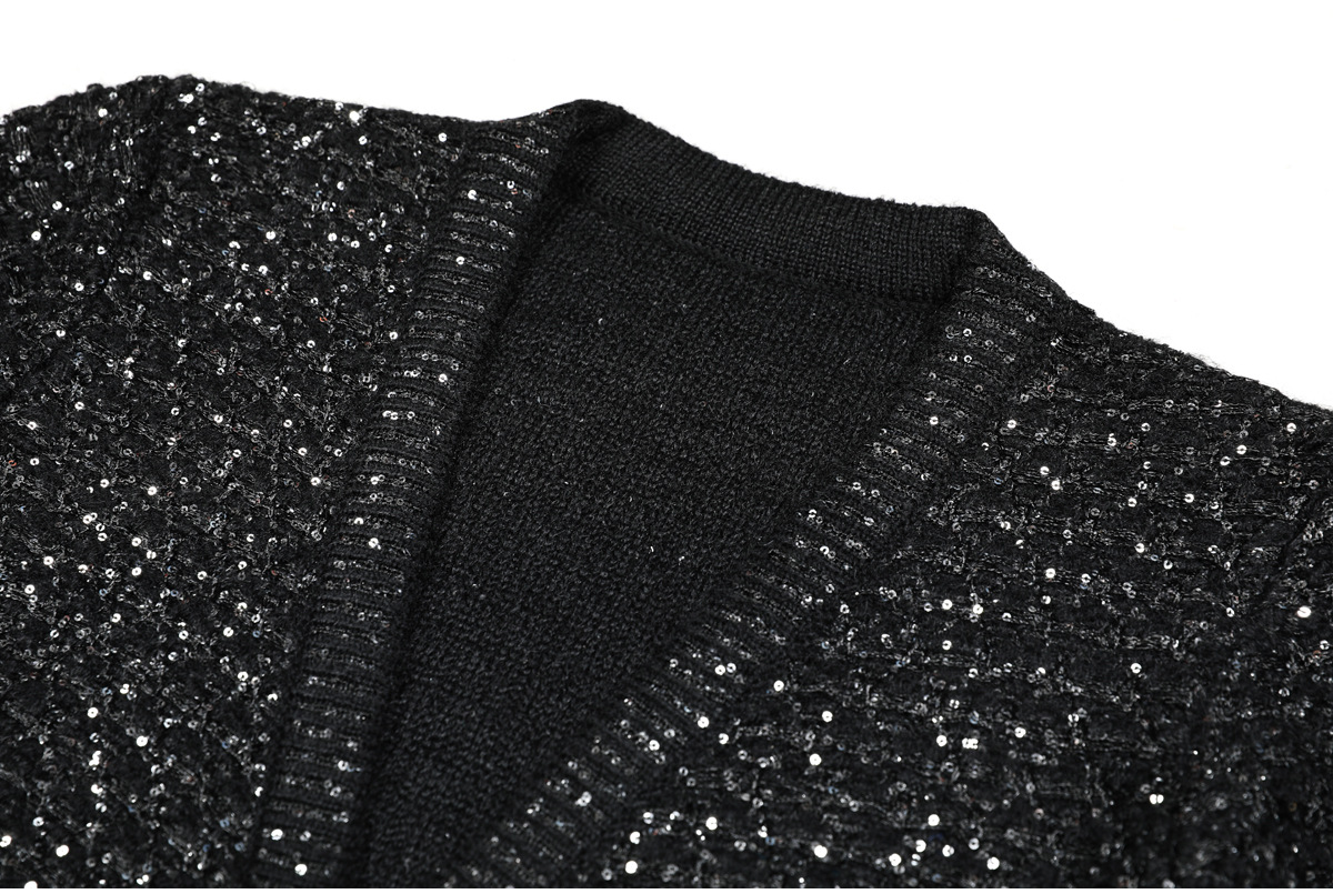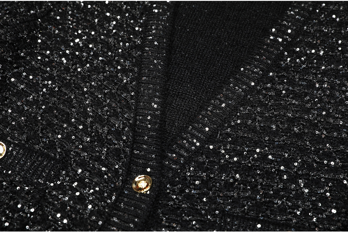 하이 엔드 재고 2025 봄과 가을 새로운 유럽과 미국의 하이 퀄리티 스퀸 니트 긴 소매 V 넥 카디건 재킷