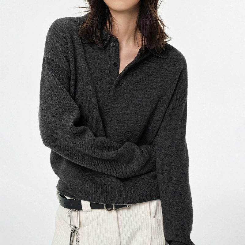 히비스커스 고품질의 양모 혼합 M * iu 시리즈 스택 착용 복고풍 조커 폴로 라펠 니트 스웨터 가을과 겨울 여성스토어 가기