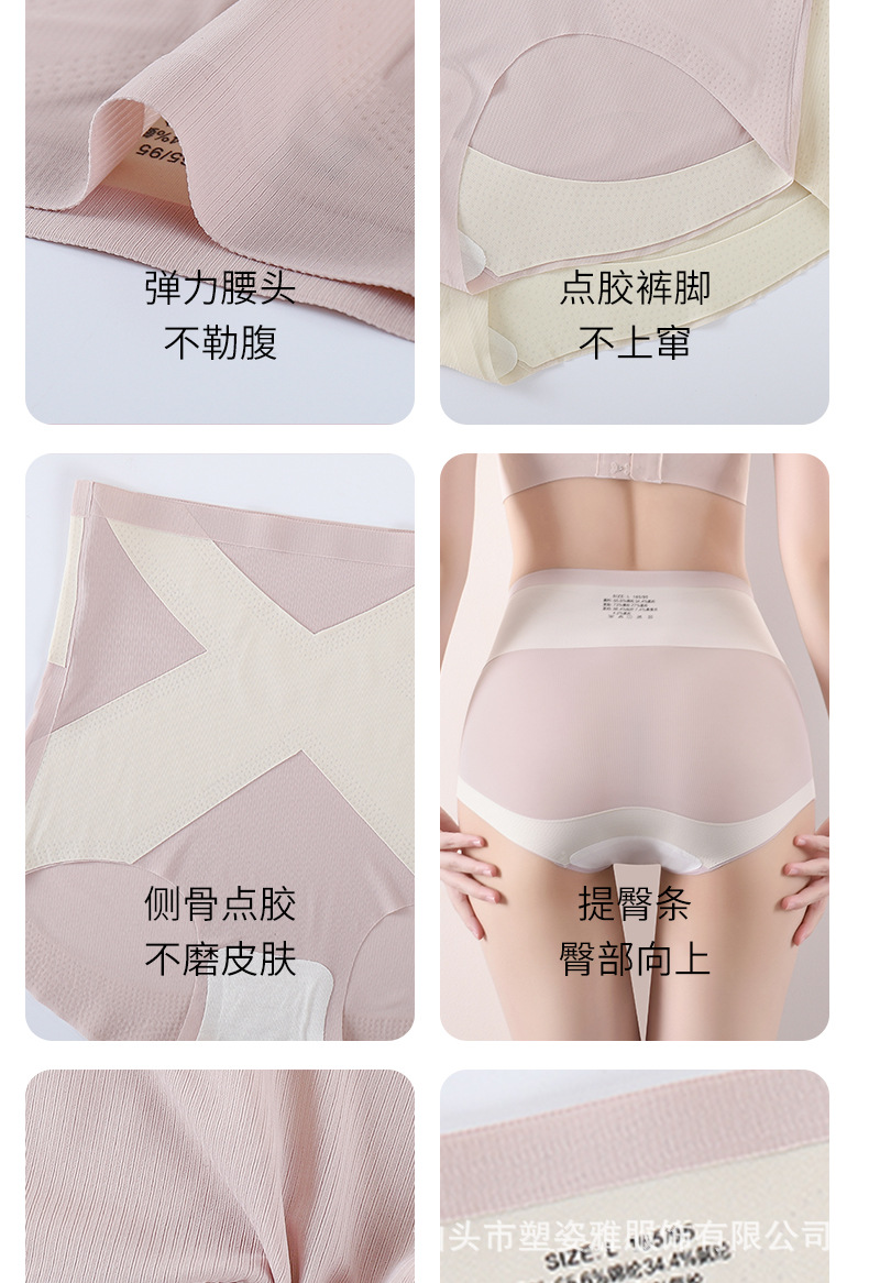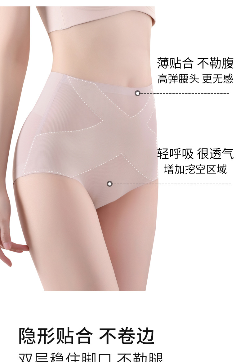 TikTok 여름 얇은 아이스 실크 속옷 여성의 추적없는 높은 허리 엉덩이 리프팅 실크 항균 Crotch 바디 쉐이핑 및 복부 바지