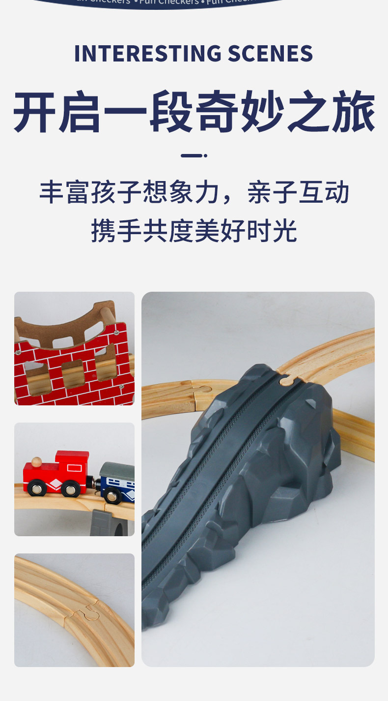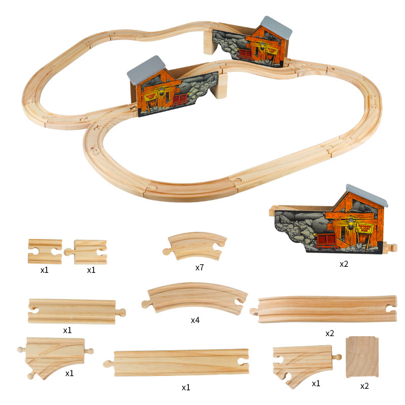 어린이 나무 기차 트랙 23P 덮힌 다리 35P 동물원 세트 교육 완구 호환 목조 건물 블록 장면