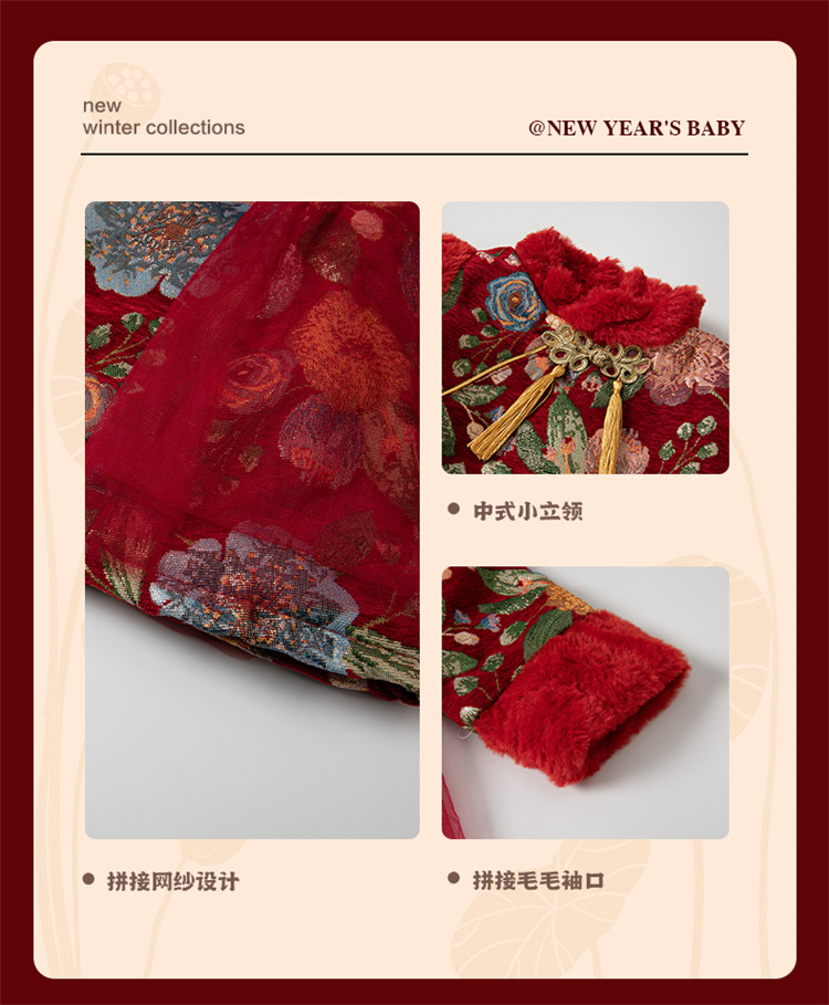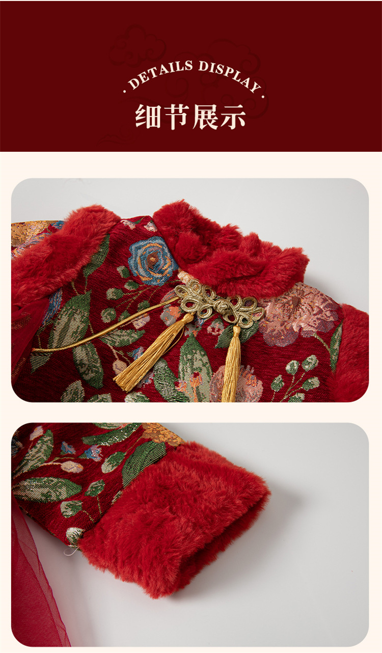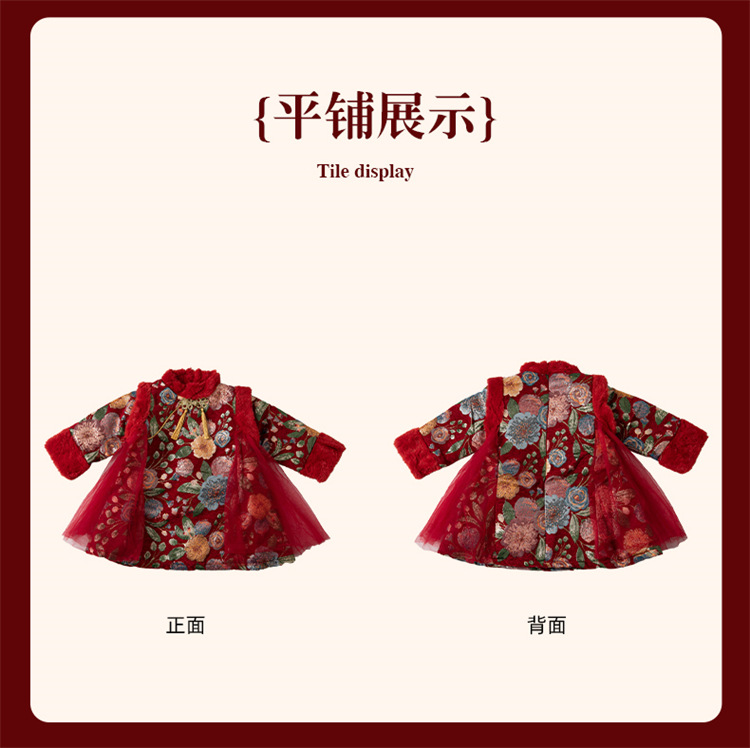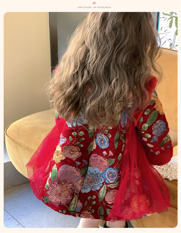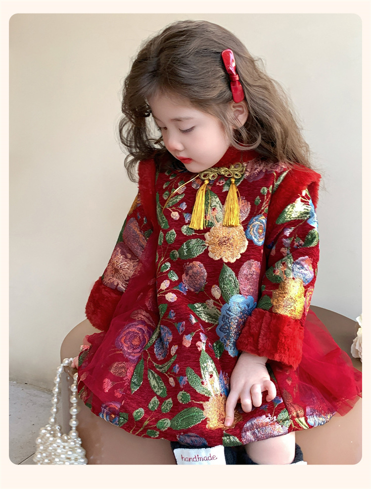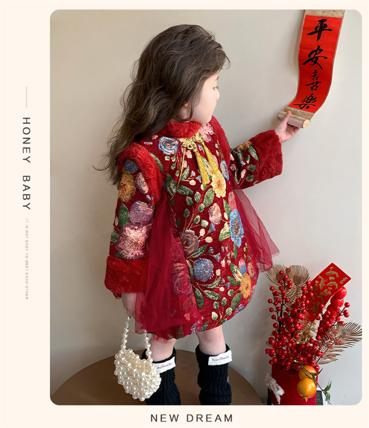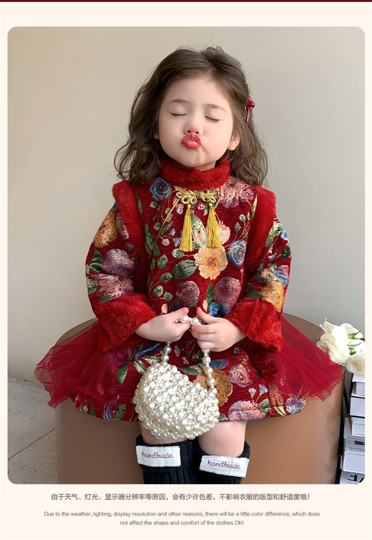 소녀들의 겨울 2024 신식 거즈 버클 청삼 신년 의류 서양식 신년 원피스 아동복 가을과 겨울