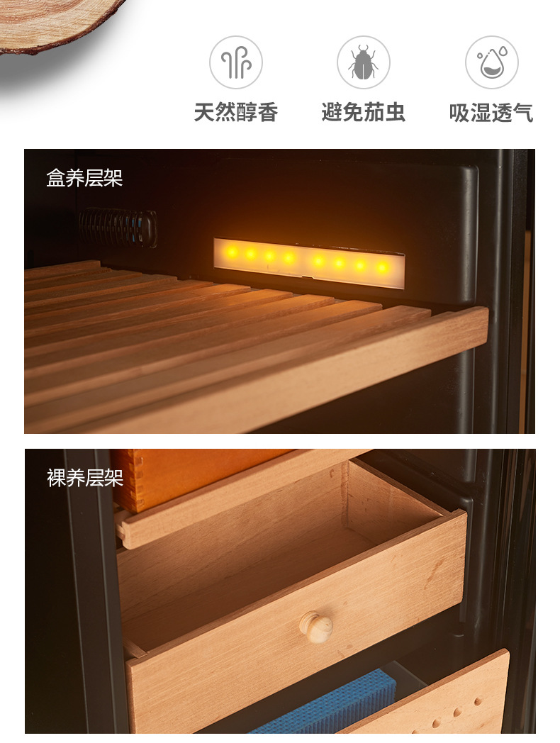 Justown/Jiasi 수프 시가 내각 일정한 온도 및 습도 암모니아 제거 가정용 삼나무 보습 차 적포도주 냉장고