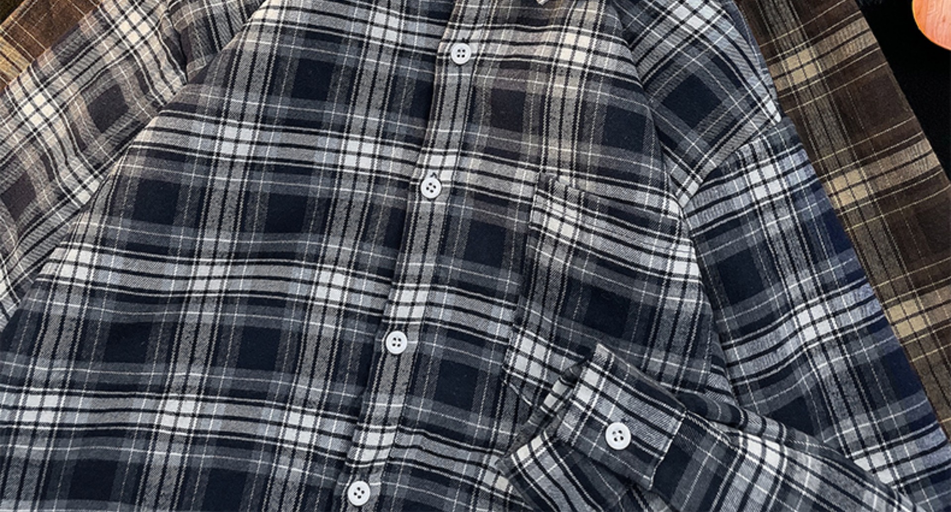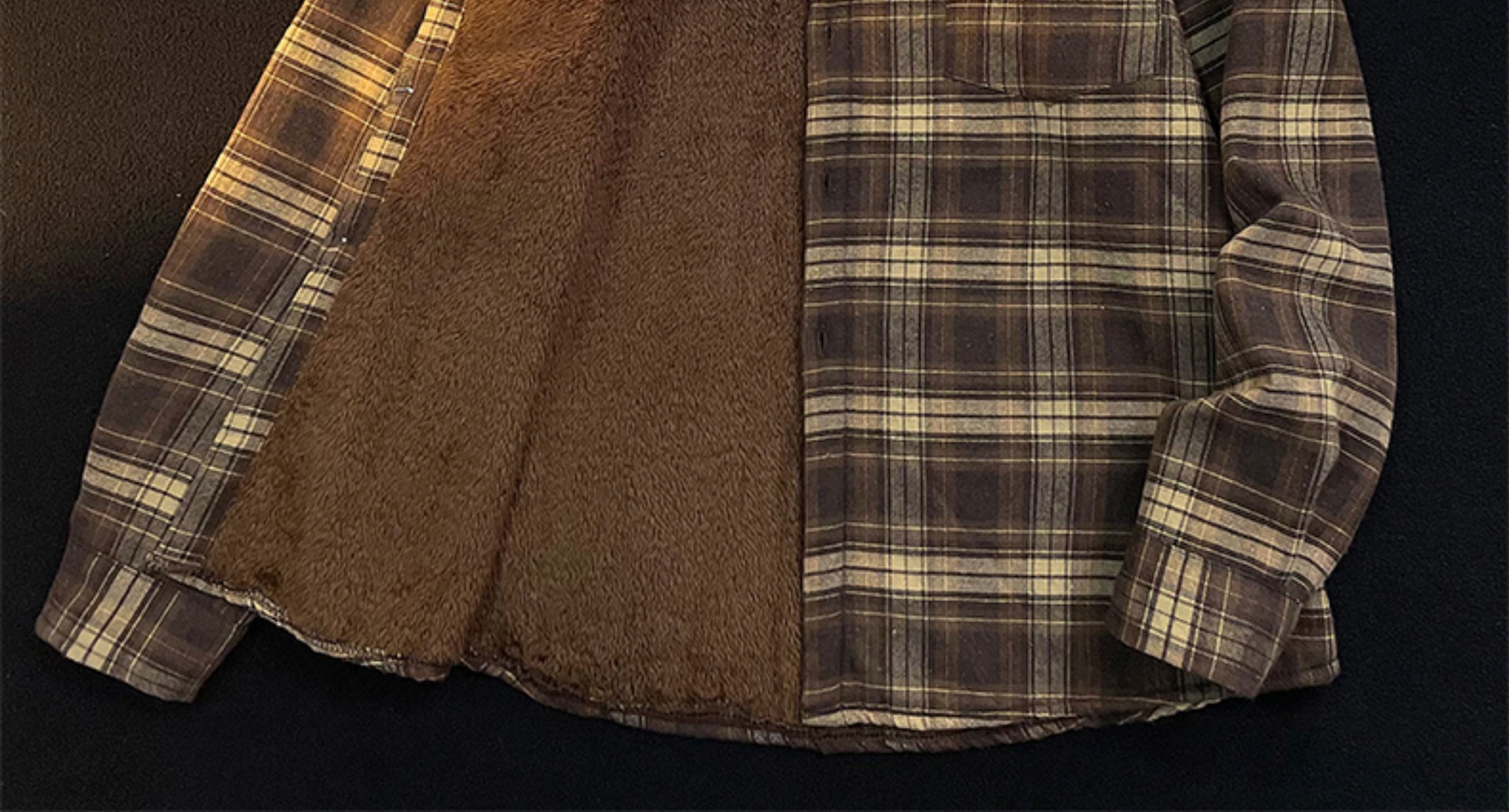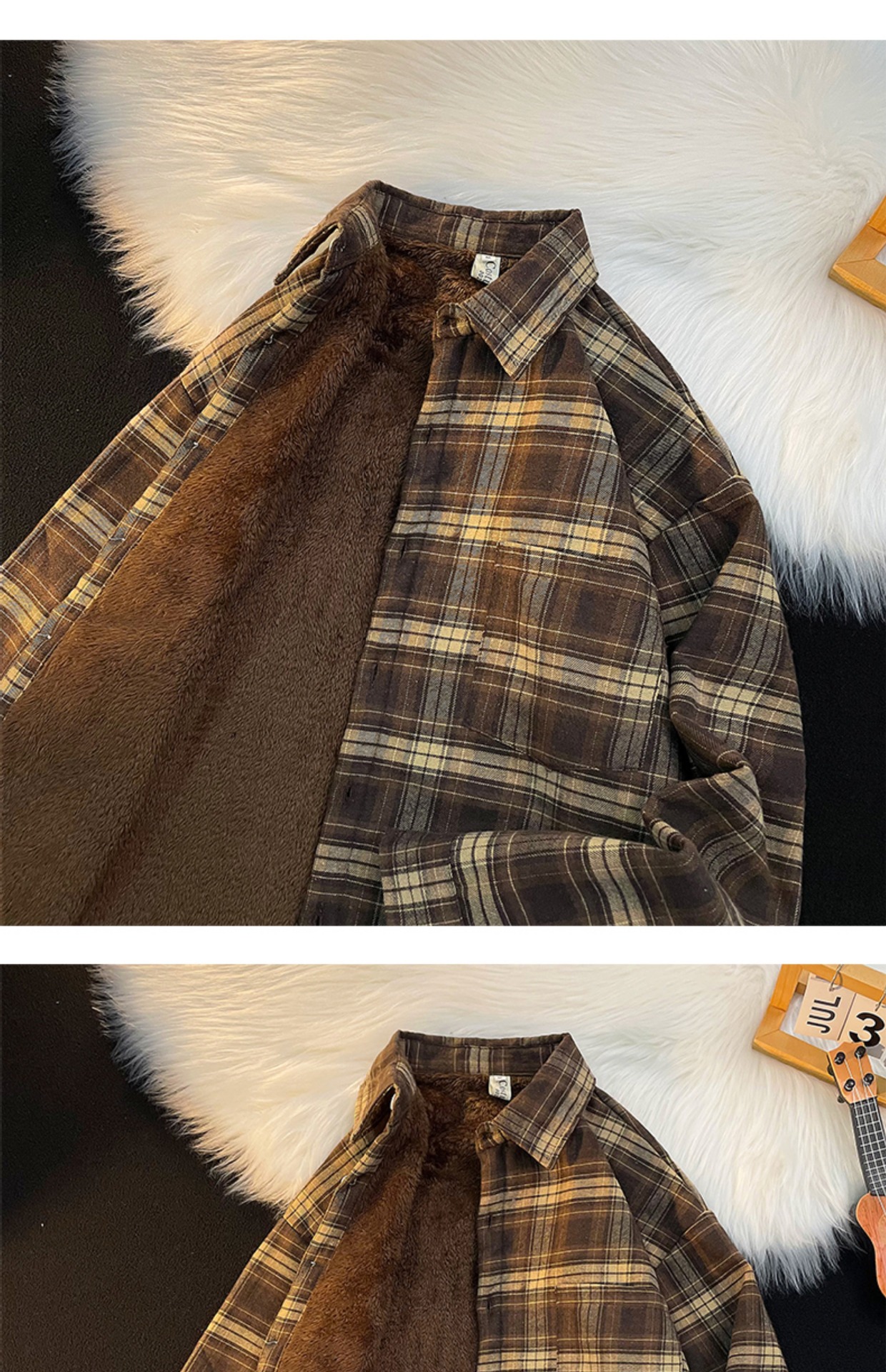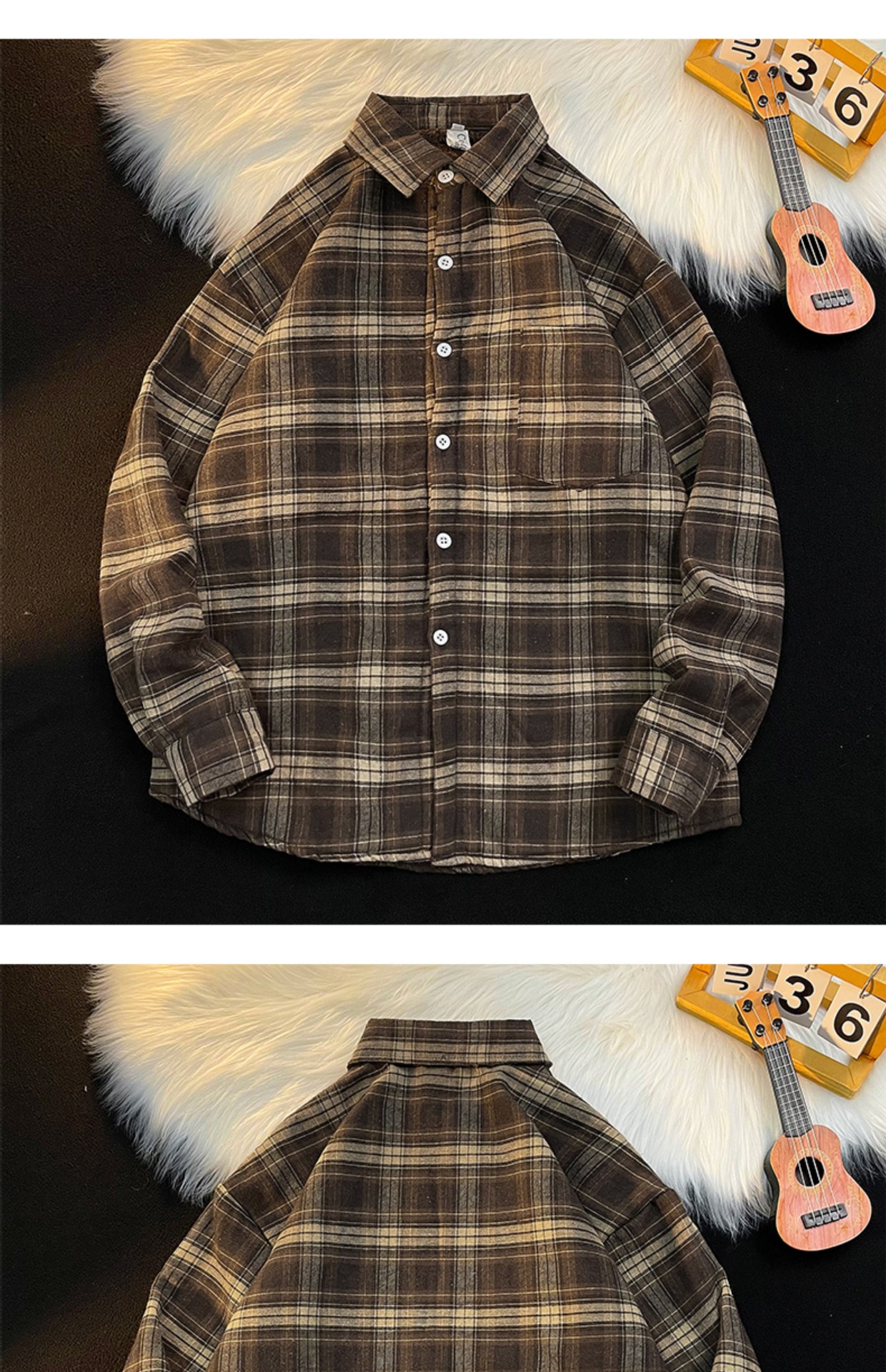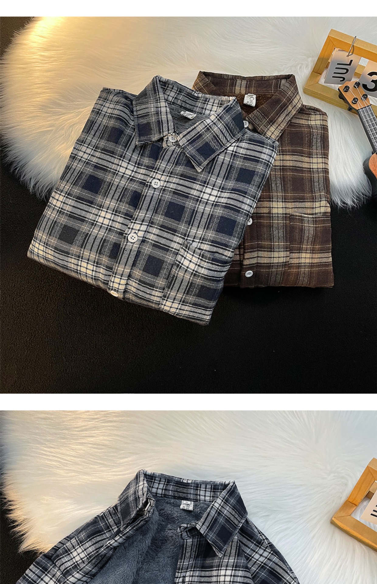 홍콩 스타일 기모 두꺼운 격자 무늬 셔츠 남자의 가을과 겨울 긴팔 레트로 패션 브랜드 빈티지 루즈 캐주얼 재킷스토어 가기