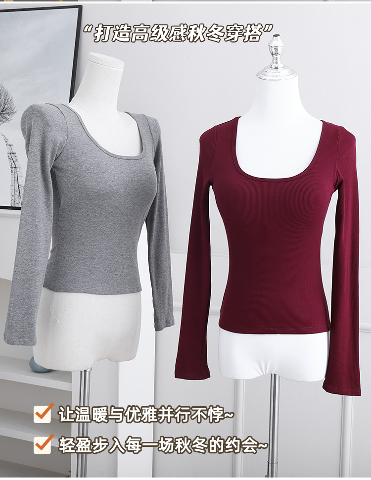2024 인기 컬러 안코라 레드 벨트 가슴 패드 티셔츠 여성용 가을과 겨울 섹시 솔리드 컬러 슬림베이스 셔츠 긴팔 탑스토어 가기