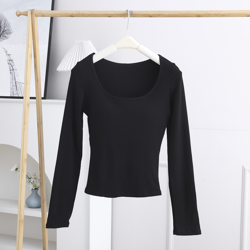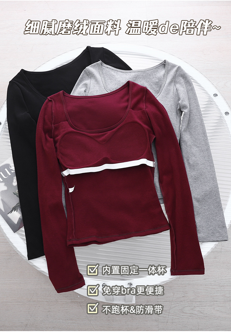 2024 인기 컬러 안코라 레드 벨트 가슴 패드 티셔츠 여성용 가을과 겨울 섹시 솔리드 컬러 슬림베이스 셔츠 긴팔 탑