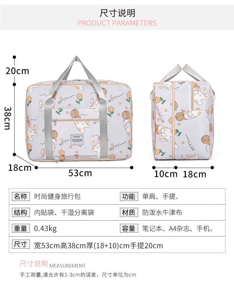 옥스포드 천 의류 보관 가방, 대용량 단거리 수하물 가방, 건식 및 습식 분리, 트롤리 가방, 여행용 보관 가방스토어 가기