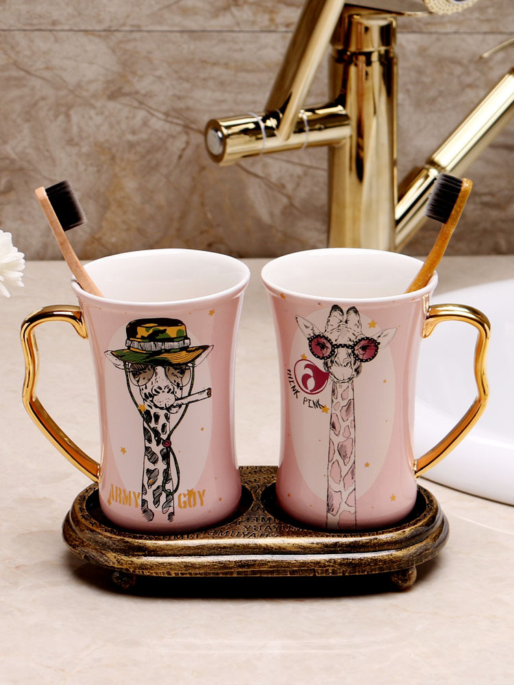 4JSH 간단한 데칼 세라믹 마우스 워시 컵 브러싱 머그잔 가정용 커플 진쑤안의 학생 칫솔 저장 컵 쌍