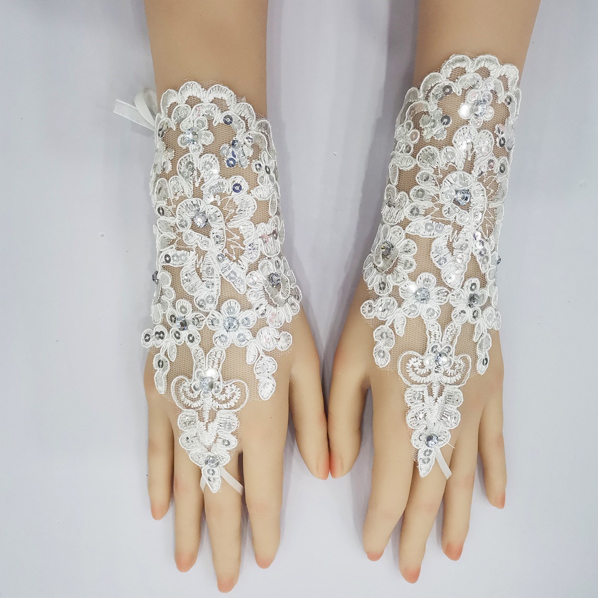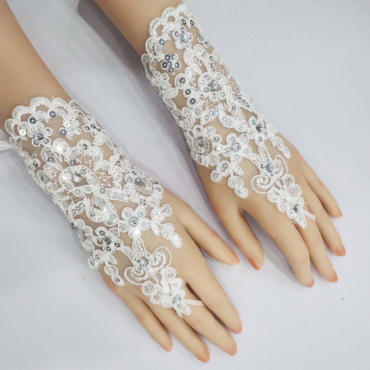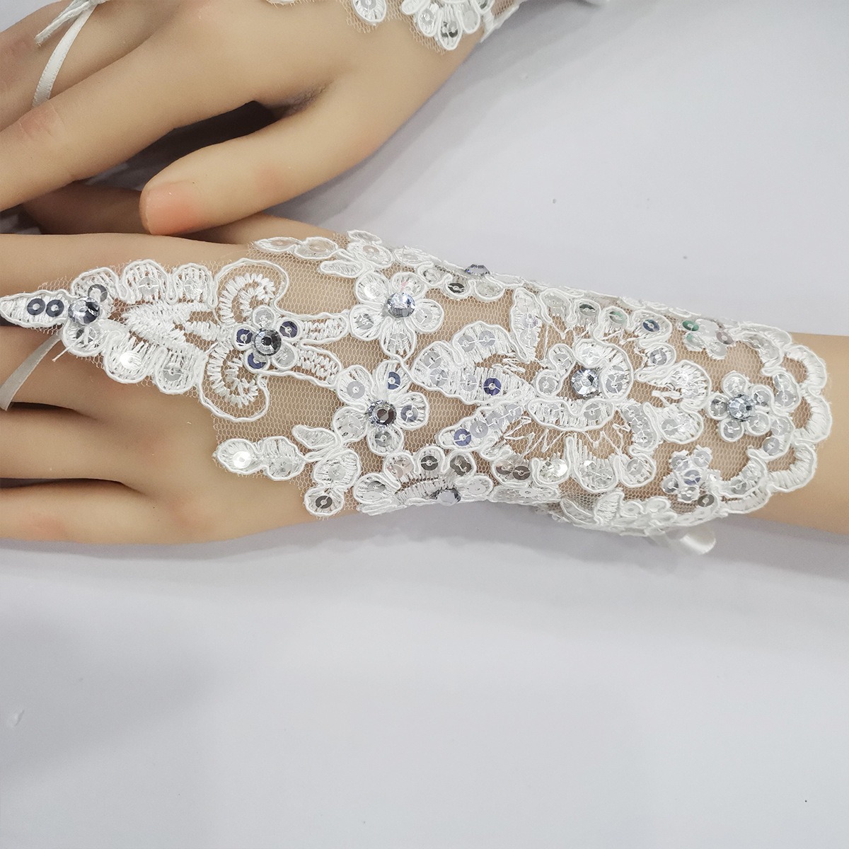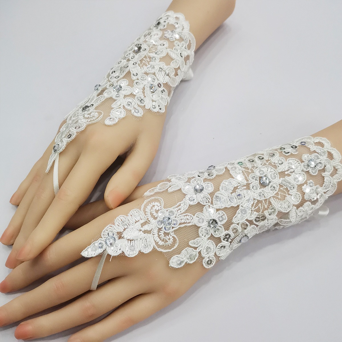 새로운 어린이 장갑 흰색 레이스 원피스 웨딩 소녀 공연 짧은 후크 손가락 오픈 핑거 댄스 장식 도매