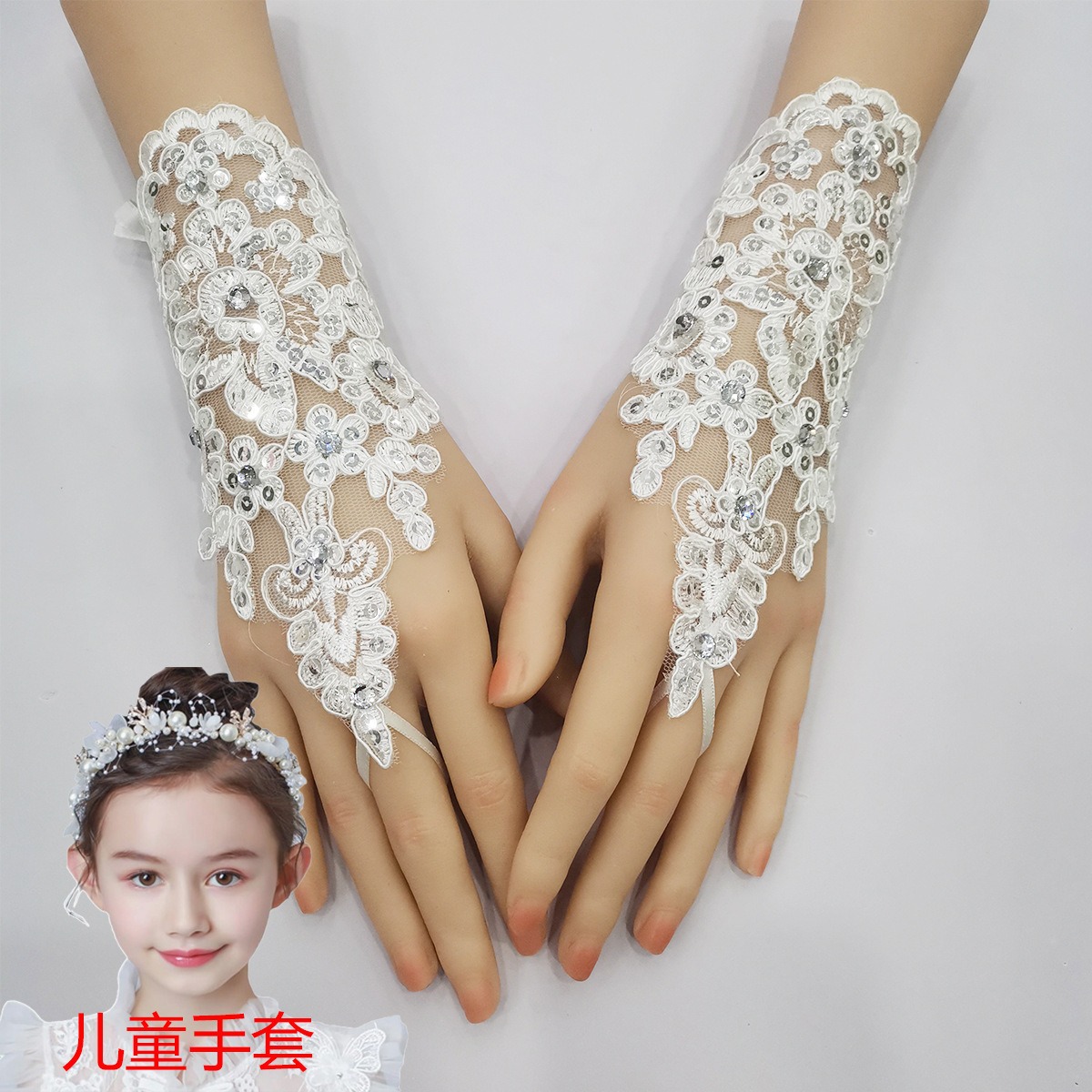 새로운 어린이 장갑 흰색 레이스 원피스 웨딩 소녀 공연 짧은 후크 손가락 오픈 핑거 댄스 장식 도매스토어 가기