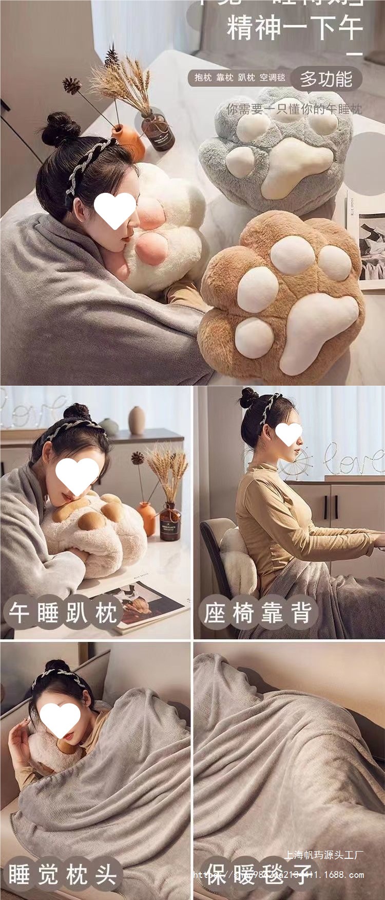 고양이 발톱 담요 손으로 따뜻한 베개 퀼트 이중 사용 사무실 낮잠 담요 투인원 점심 식사 베개 자동차 진지스토어 가기