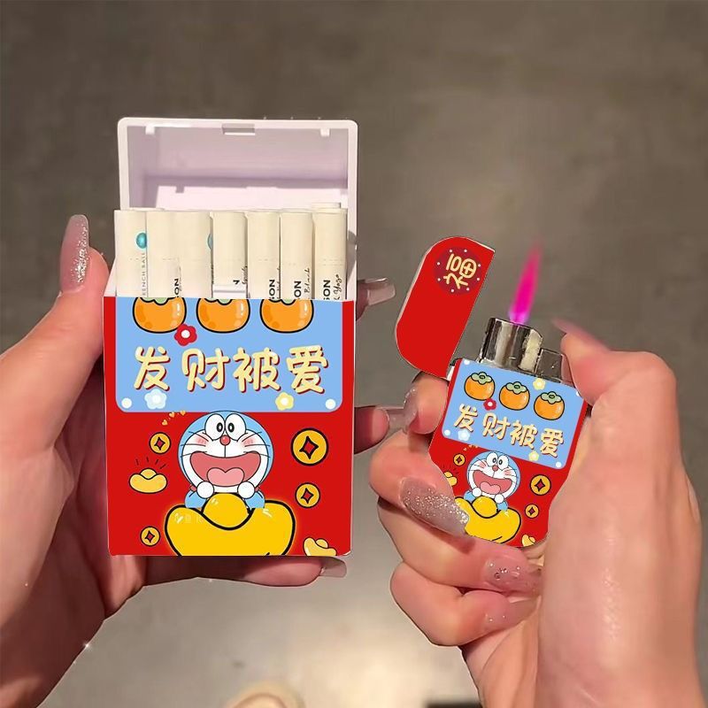 신형 딩당 고양이 도라에몽 방풍 라이터 담배 케이스 핑크 남성 진쑤안 보내기에 화염 시원한 성격
