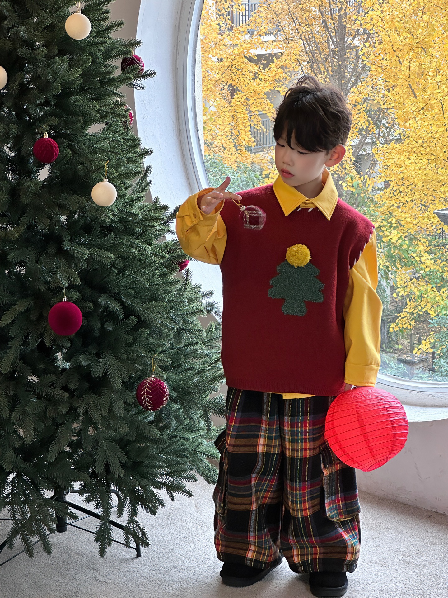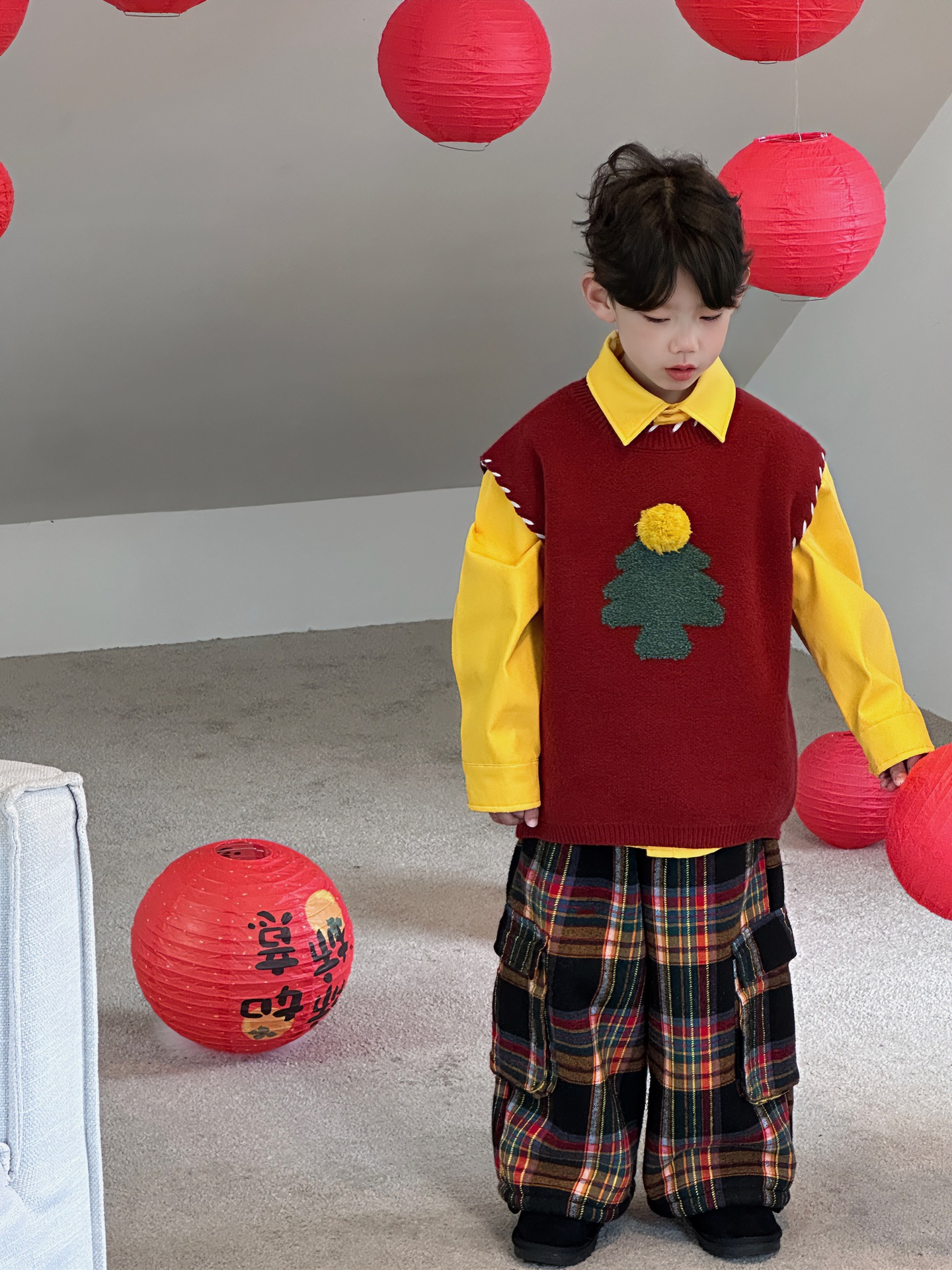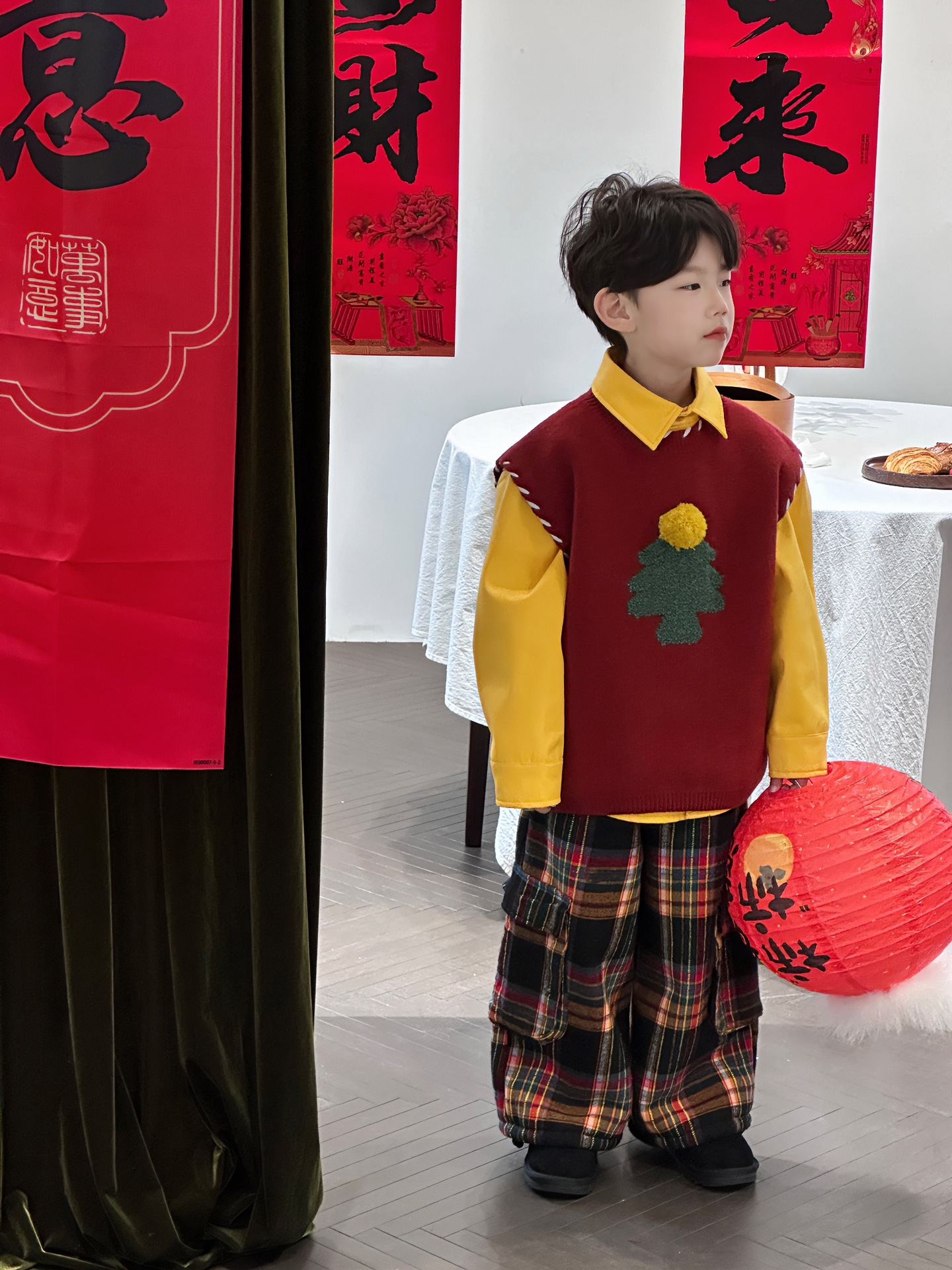 Tairu 2024 가을 새로운 한국 스타일 어린이 서양식 두꺼운 니트 조끼 소년 새해 따뜻한 조끼