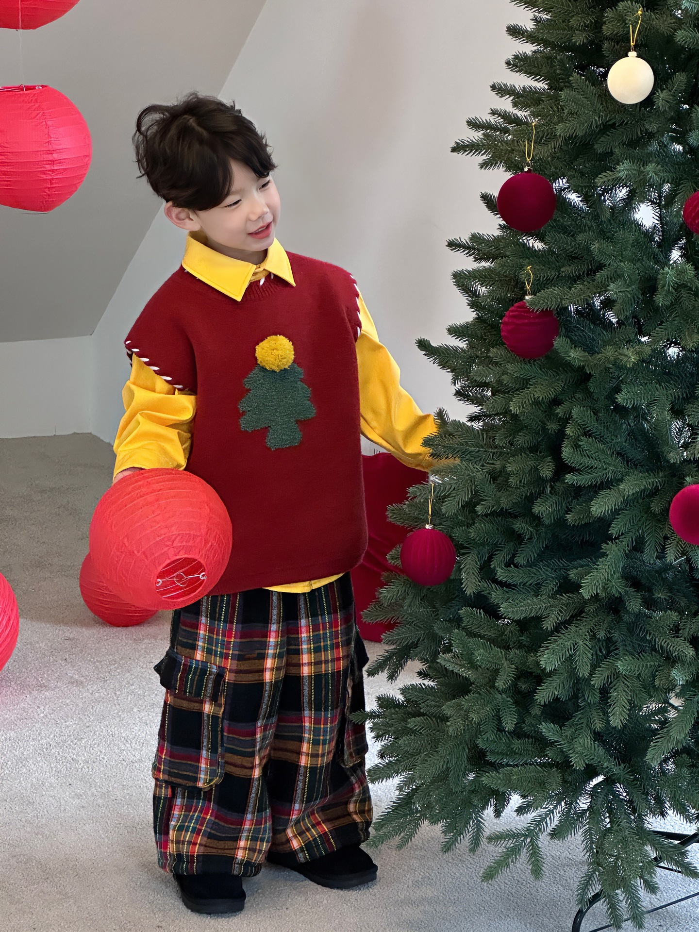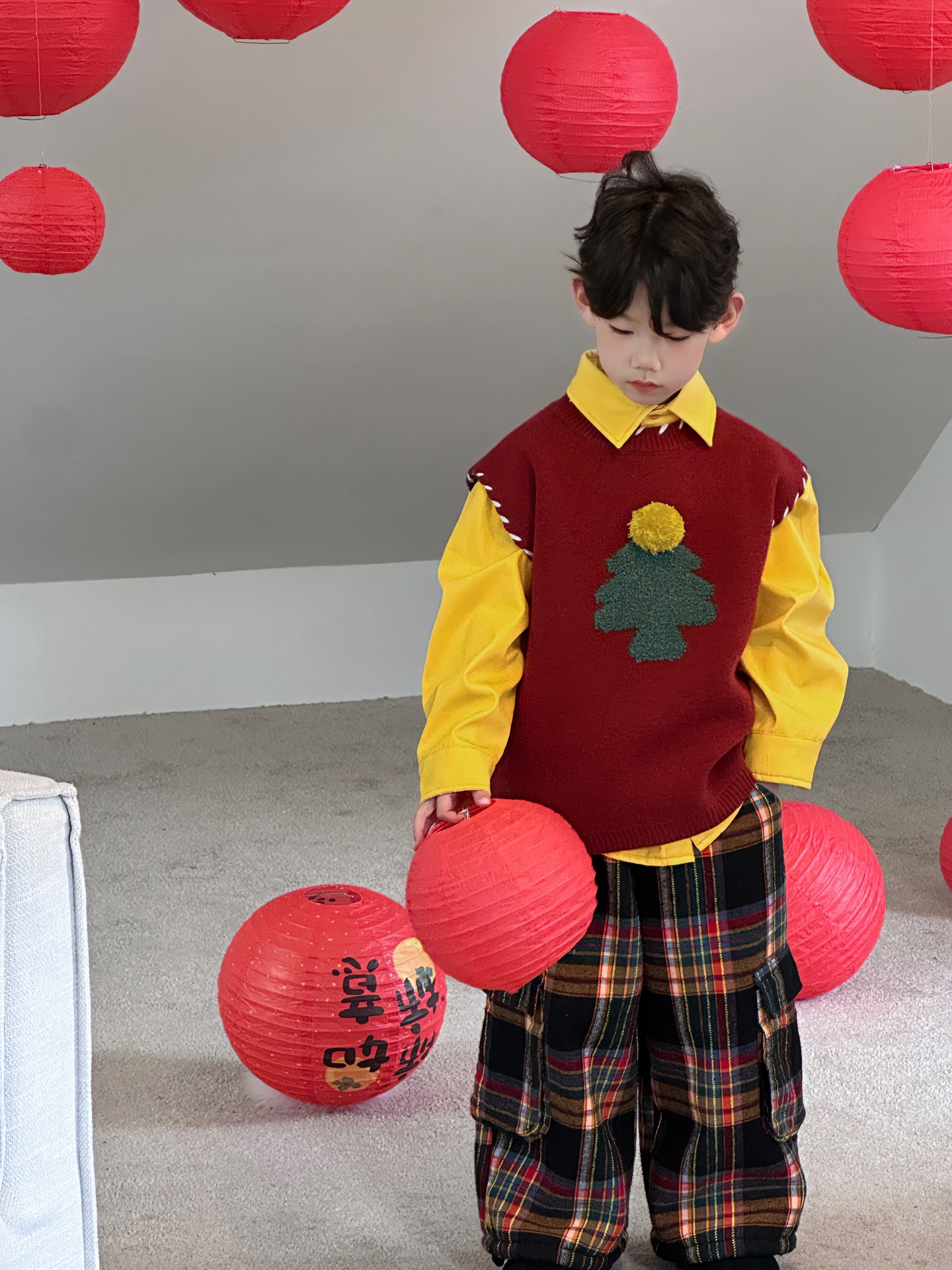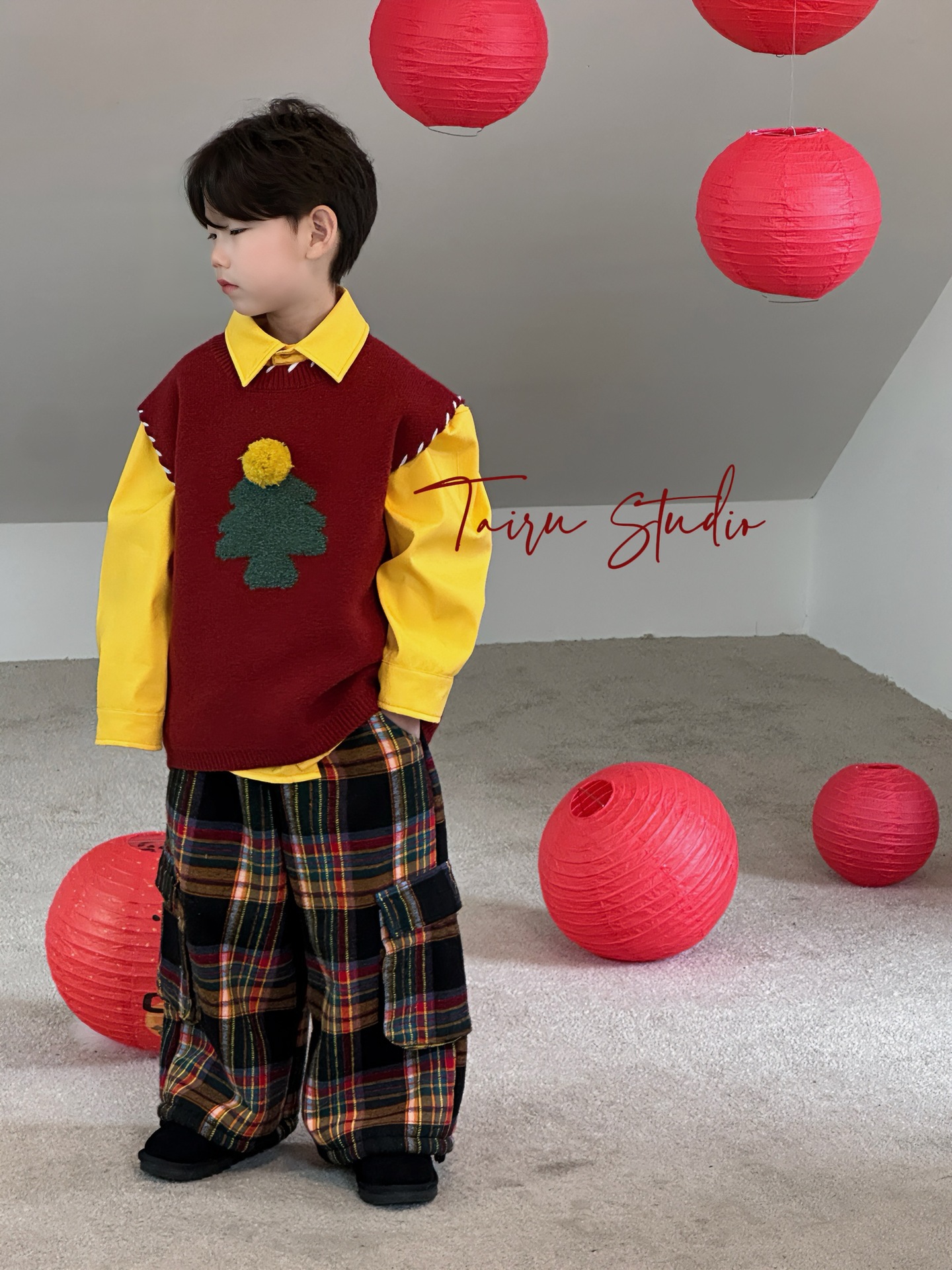 Tairu 2024 가을 새로운 한국 스타일 어린이 서양식 두꺼운 니트 조끼 소년 새해 따뜻한 조끼