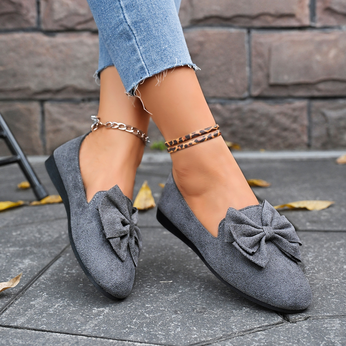 대외 무역 플러스 사이즈 스웨이드 플랫 캐주얼 신발 여성의 새로운 둥근 발가락 편안한 슬립 온 로퍼스토어 가기