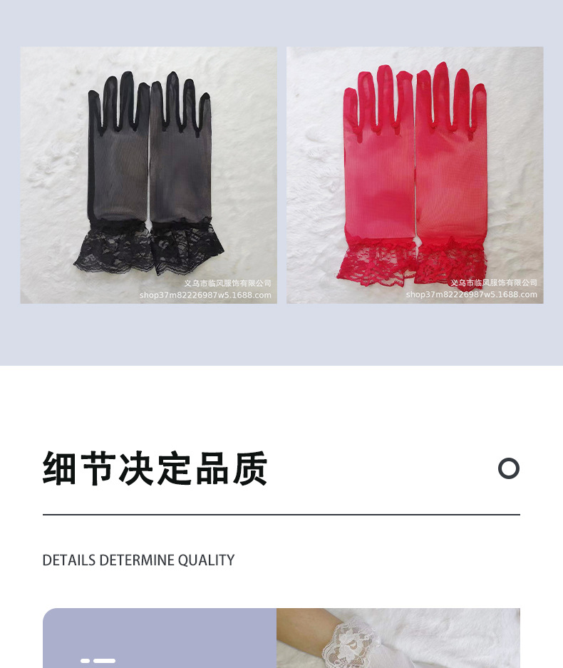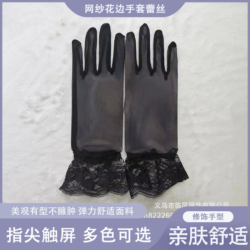 인기있는 메쉬 통기성 레이스 장갑 패션 웨딩 여름 태양 보호 성인 블랙 스트레치 숙녀 파티