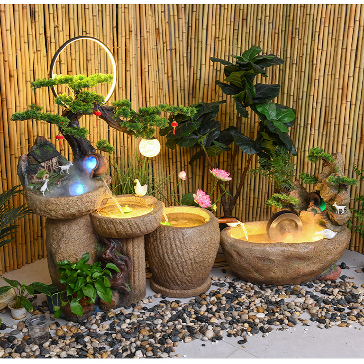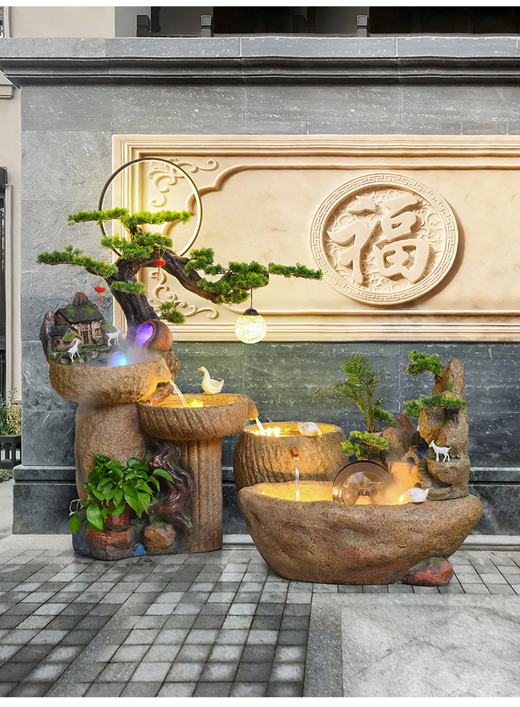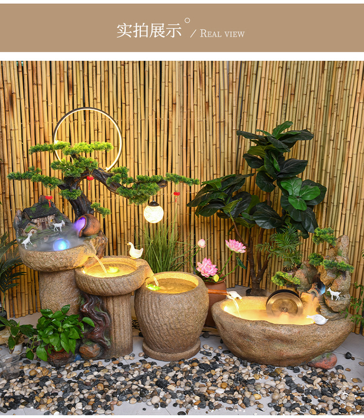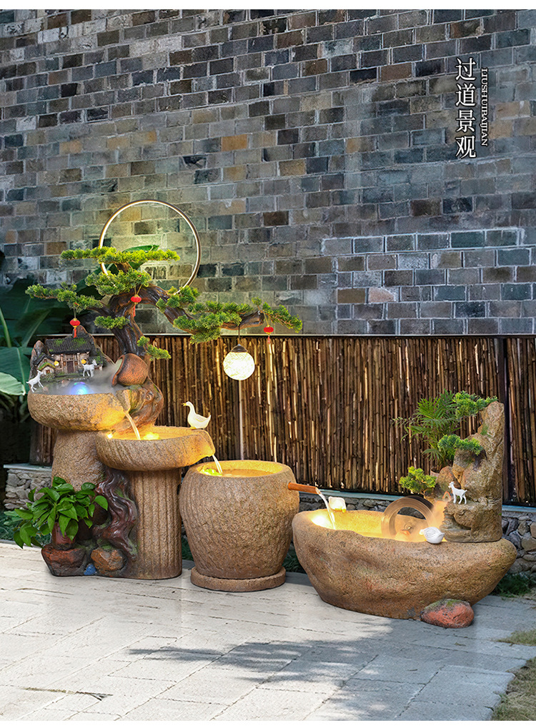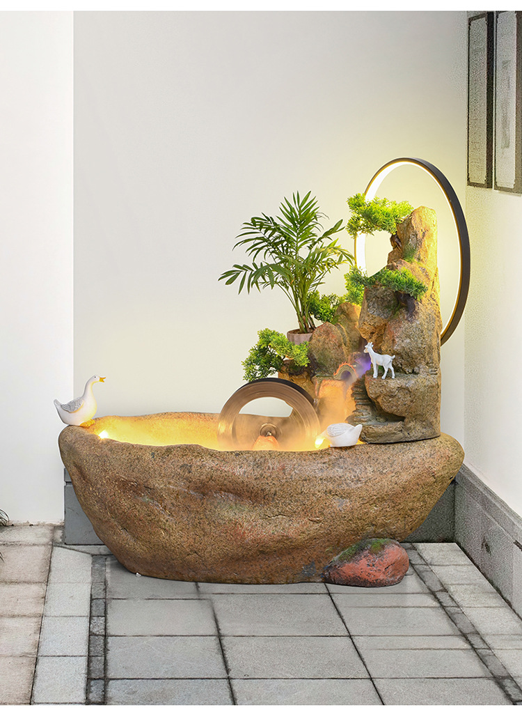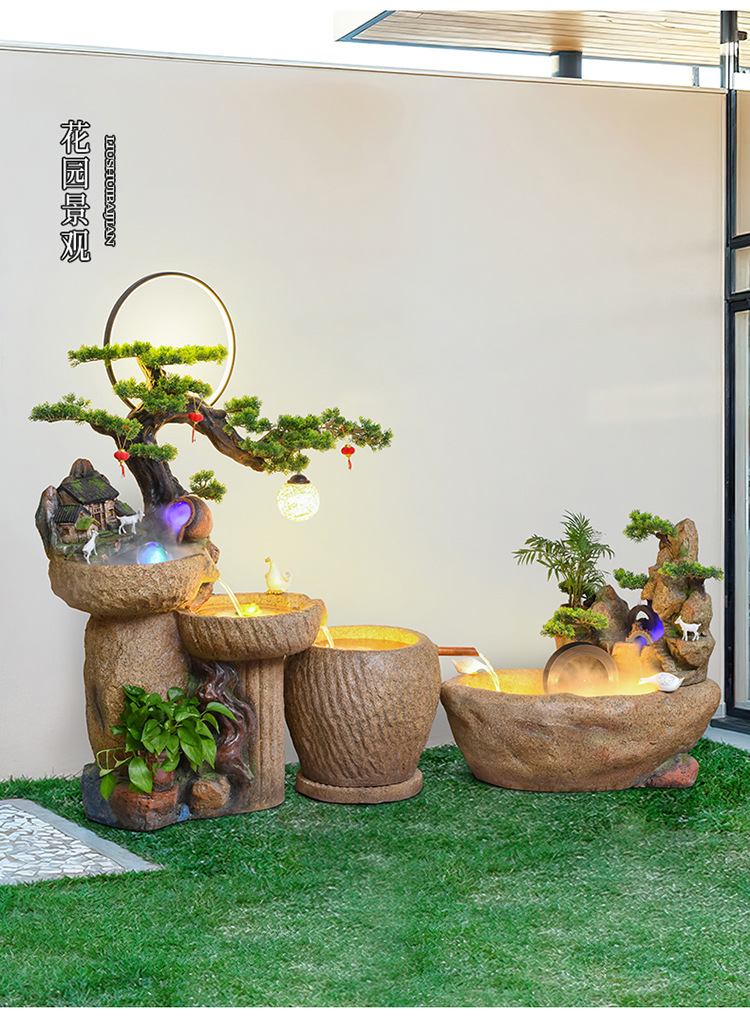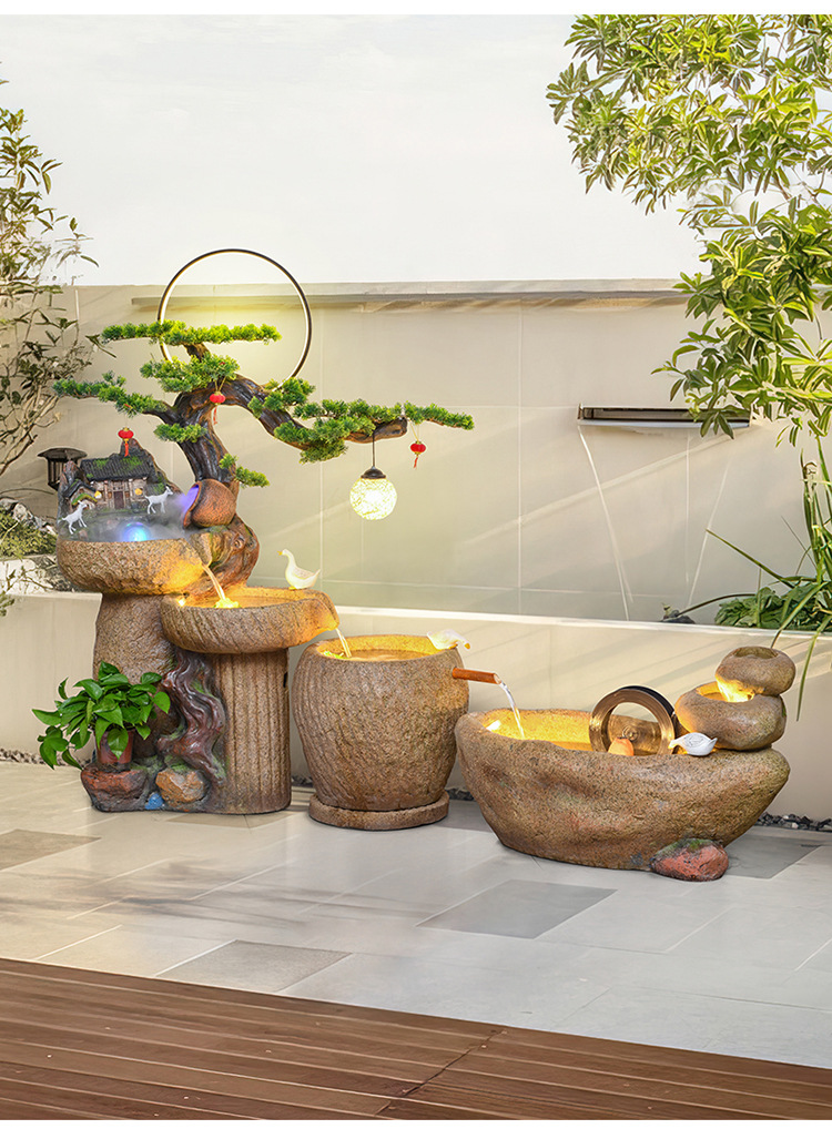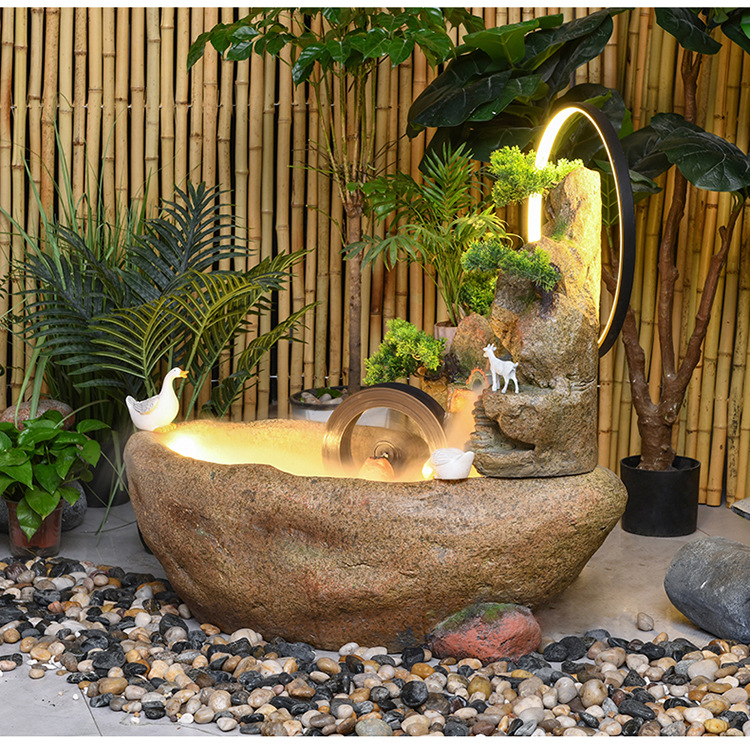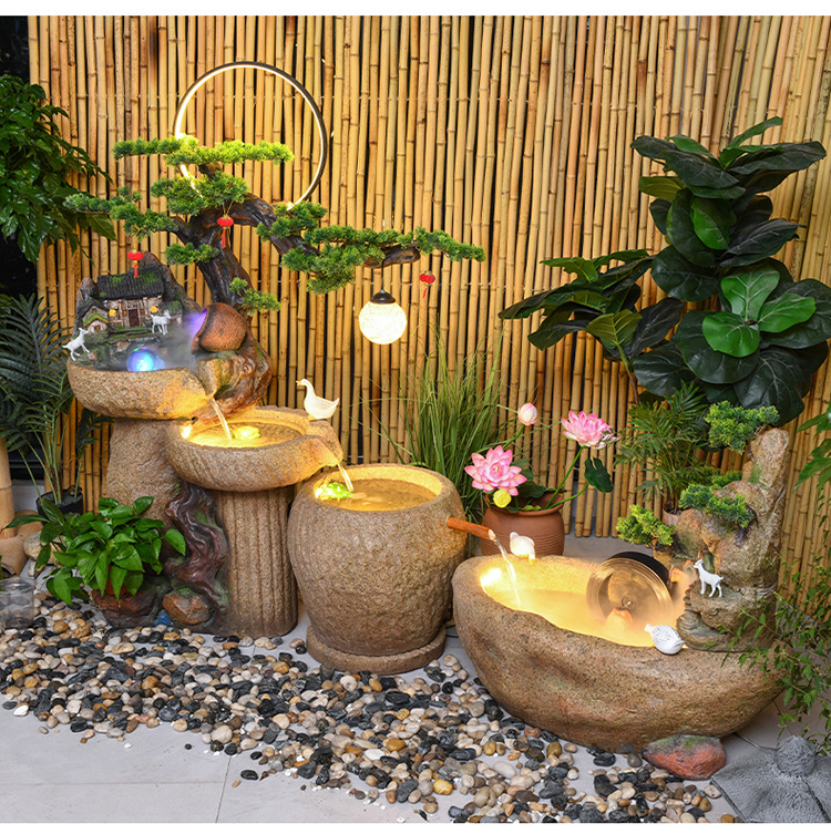 중국 스타일의 암석 흐르는 물 물고기 연못 분수 야외 풍수 휠 빌라 정원 발코니 실내 순환 물 돌 공장 장식품스토어 가기