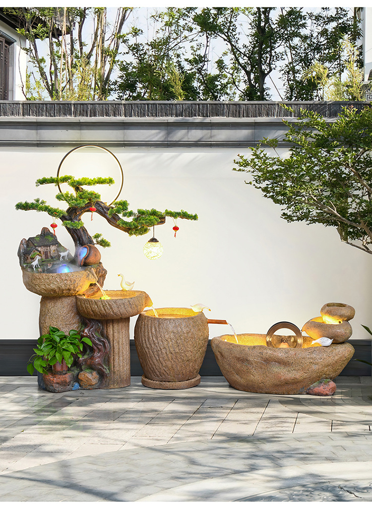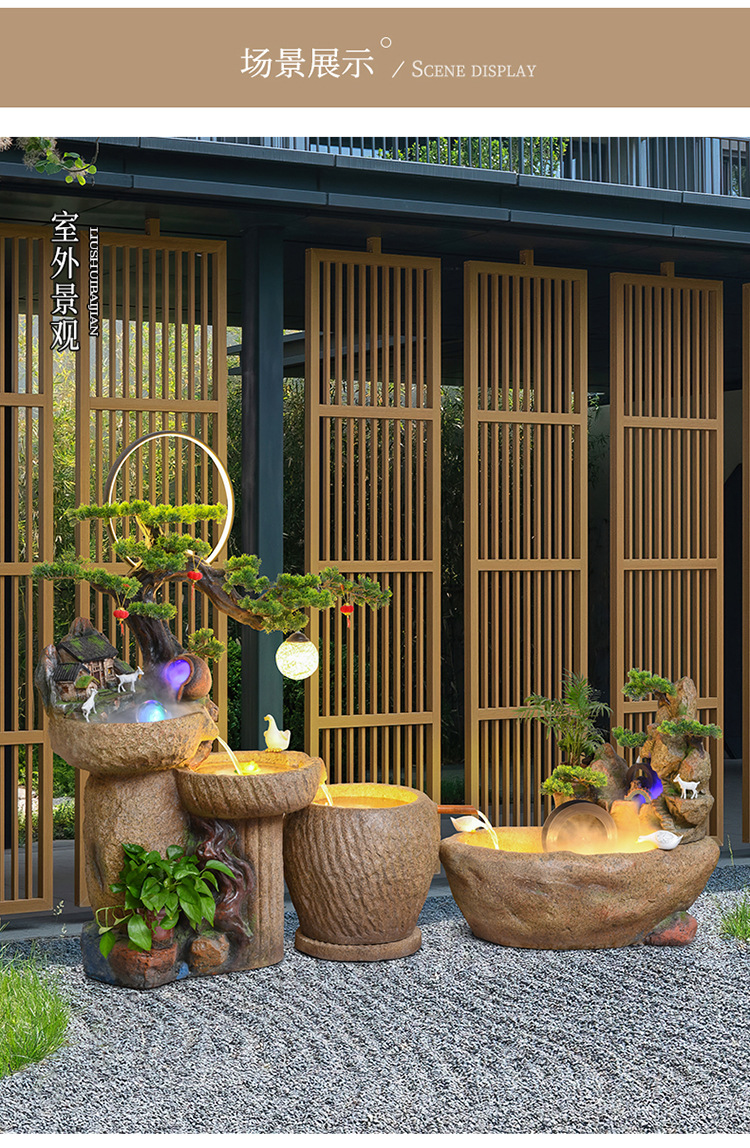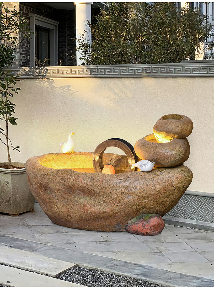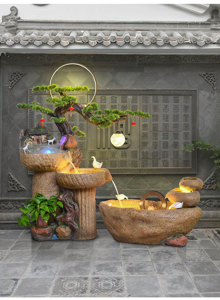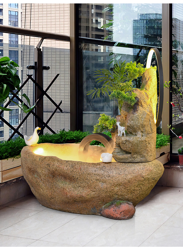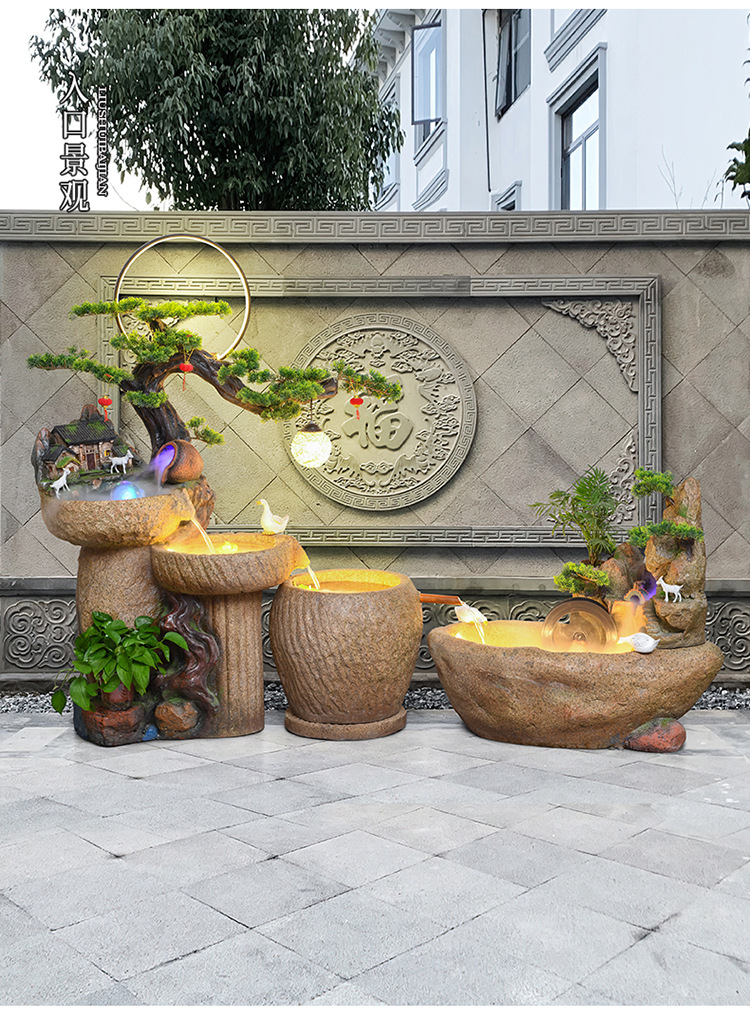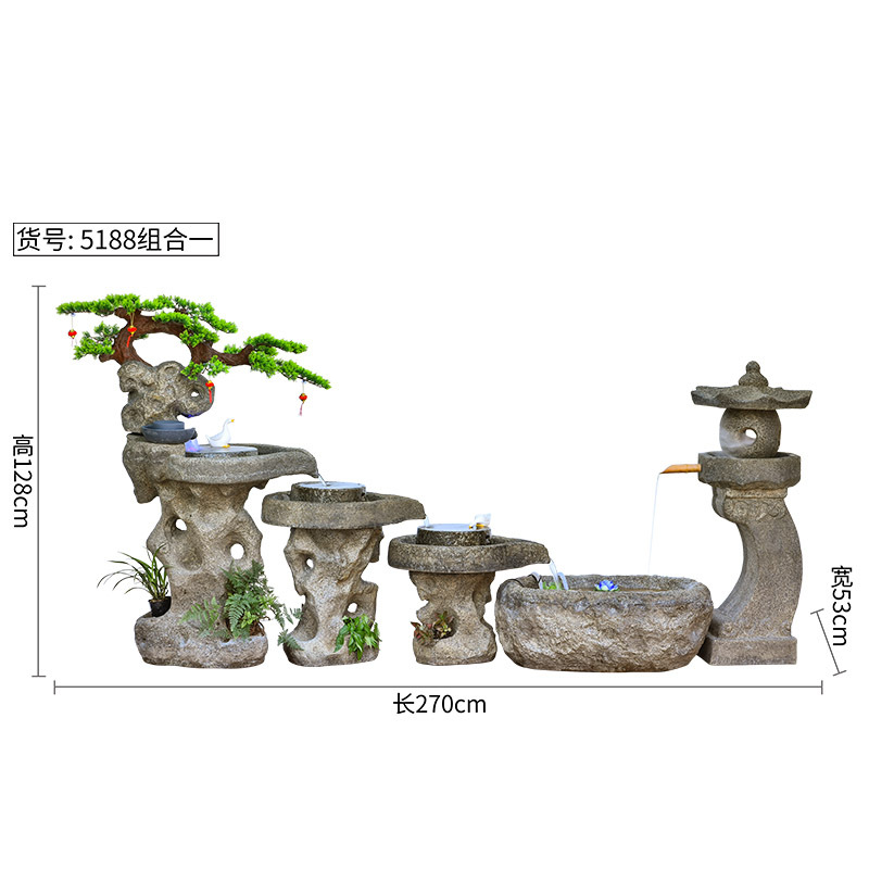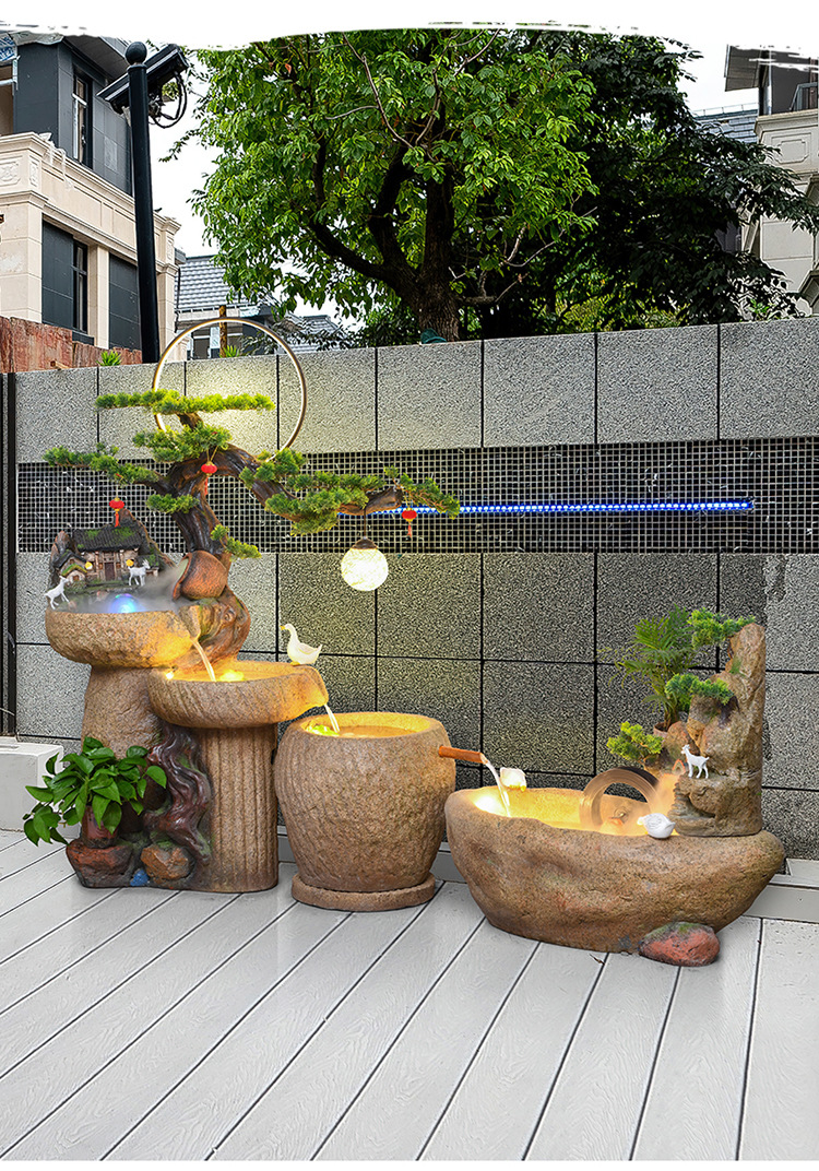 중국 스타일의 암석 흐르는 물 물고기 연못 분수 야외 풍수 휠 빌라 정원 발코니 실내 순환 물 돌 공장 장식품스토어 가기